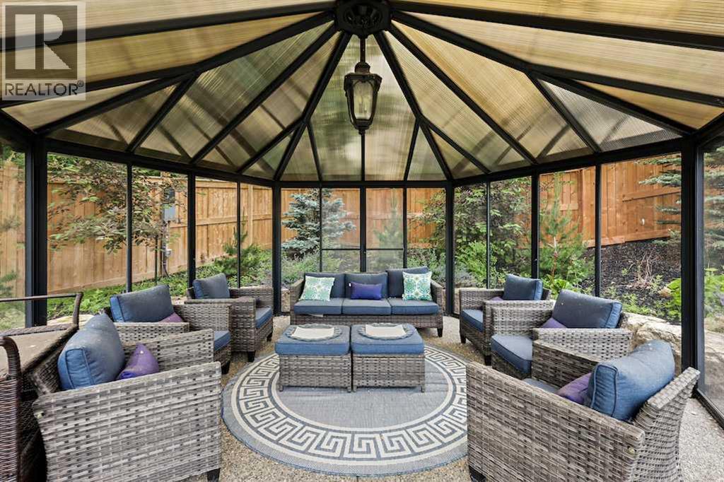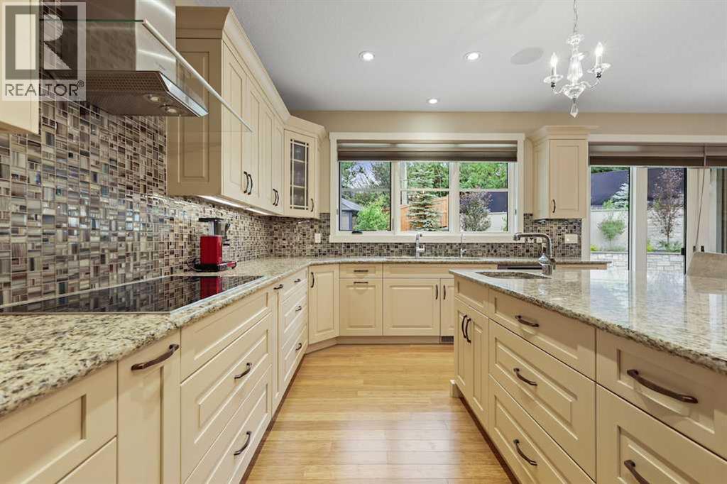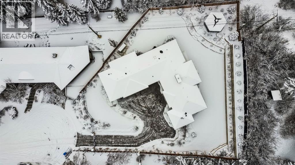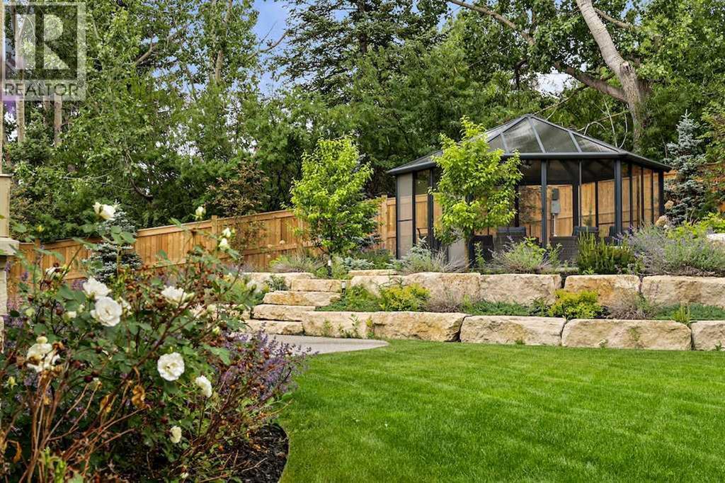 Tucked away at the end of a quiet cul-de-sac in one of Calgary’s most exclusive neighbourhoods, this extraordinary estate offers nearly 5,000 square feet of refined living space on one of the largest and most private inner-city lots available. Rarely do properties of this scale and seclusion come to market—where lush landscaping, mature trees, and architectural tiers of limestone create a truly private sanctuary, all just minutes from top-rated schools, shopping, and city amenities.A set of elegant wrought iron gates opens onto the meticulously manicured grounds, offering complete privacy and security. Designed for multigenerational families, large households, or those with live-in support, the home features 6 bedrooms, 6 bathrooms, 2 spacious dens, and a Cambridge elevator that connects all levels.At the heart of the home, the grand living room impresses with soaring 11-foot ceilings, a dramatic limestone fireplace, and oversized windows that flood the space with natural light while framing serene views of the expansive backyard. The chef’s kitchen is both elegant and functional, anchored by a statement island and open to a generous dining space that easily accommodates 12 guests—perfect for entertaining on any scale.One wing of the main level is devoted to children or guests, offering a large family lounge, 4 well-sized bedrooms, and 3 full bathrooms. The layout is ideal for growing families or live-in care. On the opposite wing, the private primary suite offers a serene retreat with full-height windows overlooking the grounds, a spa-inspired ensuite, and a large walk-in closet. Nearby is a den that can function as an office, library, or additional bedroom.Downstairs, a formal foyer with custom double wood doors sets a warm tone on the lower level. This level includes a spacious home office, a sixth bedroom with full bath, and an expansive recreation area complete with a games room and a media room. A large mudroom leads directly to the heated four-car gar age, which features three EV charging stations for added convenience.Additional highlights include an advanced security system, full property generator, fire suppression system, and thoughtful accessibility features throughout.The backyard is a private oasis backing onto green space—professionally landscaped with mature gardens, a stone patio for outdoor entertaining, and a charming summer house perfect for relaxing or hosting. This once-in-a-generation offering combines timeless elegance, modern comfort, and unparalleled privacy in one of Calgary’s most desirable neighbourhoods. (id:6769