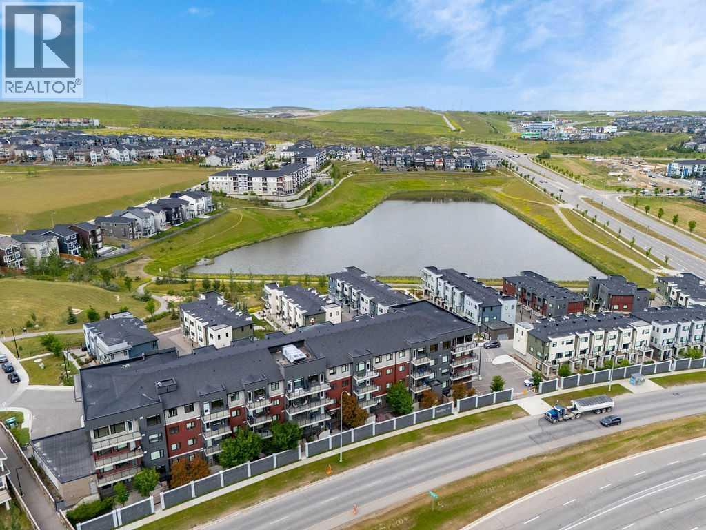 Welcome to this stunning townhome in the desirable Diseno Development of Sherwood, NW Calgary. Offering 1,565 sq.ft. of stylish and functional living space, this sun-filled home sits just steps from the community park and pond and is within walking distance to the amenities of Sage Hill Crossing. Natural light fills the open-concept layout, which includes a sleek rear kitchen with quartz countertops and upgraded stainless steel appliances, a spacious dining area, and a central living room with beautiful park views. The upper level features three large bedrooms and two full bathrooms, including a bright and airy primary suite with a walk-in closet and a luxurious ensuite with a walk-in shower. The entry-level offers a versatile flex/bonus room ideal for a home office or gym, and the side-by-side double attached garage adds everyday convenience. Built with a full builder upgrade package, this home also includes window coverings, laminate flooring on the main level, and elevated exterior finishes with Hardie Board siding, stucco accents, and brick detailing. Enjoy two private balconies on the front and rear of the unit, both perfect for relaxing or entertaining. Ideally located near public transportation, major roadways, parks, and shopping at Beacon Hill and Sage Hill Plaza, this beautifully maintained townhome is the perfect blend of comfort, style, and location. (id:6769