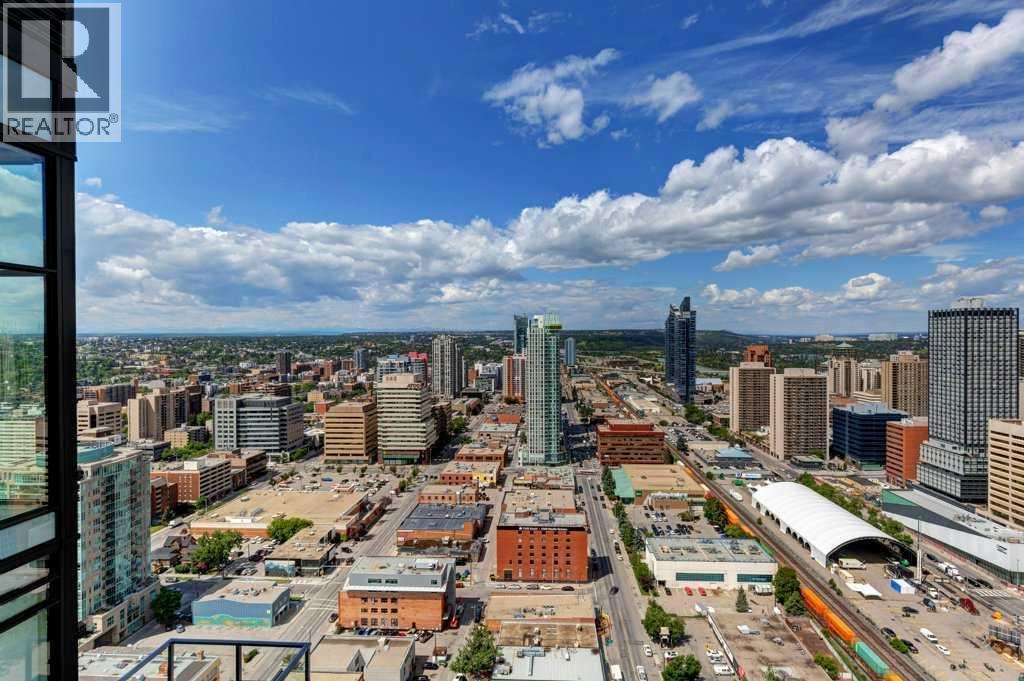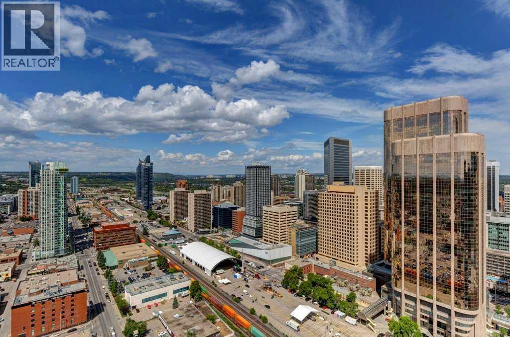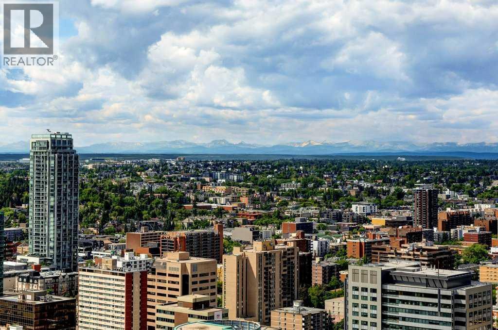 Fantastic views from this beautiful Penthouse! Location location, enjoy all the great new amenities in the heart of downtown Calgary’s Beltline, this modern penthouse suite is situated on the 31st floor of 6th and 10th. With over 1700 sqft. of living space on the inside and an additional 970 sq.ft. of outdoor living space, this stunning two-bedroom home is the largest and most impressive suite in the tower. The massive outdoor terrace area is one of the largest of any penthouses within the city and boasts stunning panoramic, mountain and city views, ideal for entertaining friends and family. The floorplan has been thoughtfully designed and features an open concept floor plan creating a bright and spacious living space. The chef inspired kitchen is well equipped with sleek, high gloss and modern cabinetry, stone countertops, stylish backsplash, and stainless-steel appliances with a gas stove. This incredibly open concept design is highlighted by 12 ft ceilings and floor to ceiling windows. You’re going to love working in the den, which offers incredible light and breathtaking views towards the Rocky Mountains, making it a perfect place to work or relax. The gorgeous master bedroom features a luxurious spa inspired ensuite with marble flooring, oversized shower (with mountain views!), double sink and a deep soaker tub, a brilliantly designed walk-in closet and a spacious private balcony offering some of the best views in the city. The second bedroom is inviting, also offering incredible views with a private balcony and large closet. Conveniently located close to the second bedroom is the 4-piece bath that features stunning marble flooring, a soaker tub, and a stone countertop. Additional special features include in-suite laundry, a large foyer and full-sized closet. Amenities in the building include the outdoor plunge pool and lounging area in the summer,24 Hour executive concierge and security, gym, and owner’s lounge. This incredible penthouse suite also includes 2 titled parking stalls conveniently located close to the elevator along with a titled storage unit and bicycle storage. Don’t miss out on this great opportunity to invest in this unique, one-of-a-kind home which is located so close to so many amazing amenities! (id:6769