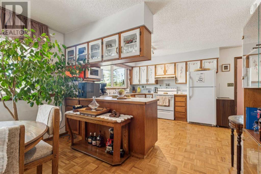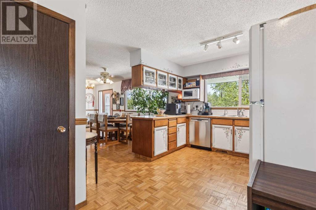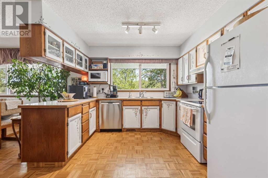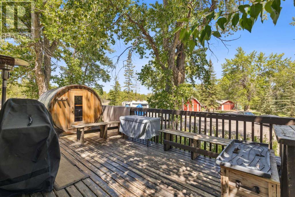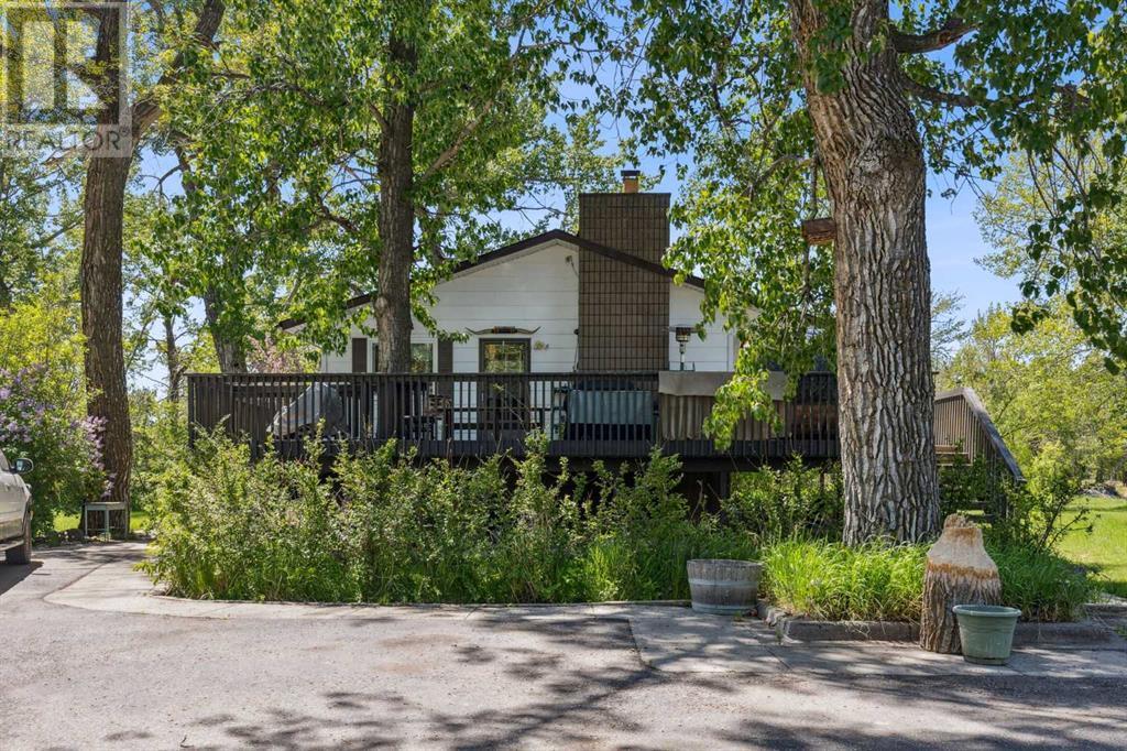 Discover the perfect blend of tranquility and recreation just outside of town with this exceptional property, set on 10 beautifully staked acres with 1,200 feet of private riverbank. This unique retreat offers year-round serenity and a wealth of outdoor activities, including swimming, snorkeling, tubing, and canoeing in the summer, as well as snowshoeing in the winter.The property sits 18 feet above the flood barrier berm in SW High River, ensuring safety and peace of mind. The basement experienced about 3 feet of water and river mud in 2013, but it was fully remediated, making it ready for your personal touch. The main house is a charming raised bungalow featuring 1,385 sq ft of comfortable living space, including 3 bedrooms and 1.5 bathrooms. It boasts an original kitchen with updated appliances, new windows, and a spacious living area. Step through the dining room access door onto a massive 1,300 sq ft deck, designed for relaxation while you listen to the soothing sounds of the river and the gentle rustle of trees. Unwind in the inviting cedar sauna, perfect for enjoying after a long day. Recent updates include new soffits and eavestroughs, replaced in 2022. Embrace the bounty of nature with chokecherry trees, saskatoon berries, raspberry bushes, a pear tree, an apple tree, ornamental cherries, and rhubarb flourishing on the property. The greenhouse, complete with blueberries, strawberries and edible cherries, and the garden is currently thriving with potatoes, chives, and asparagus. Additional features include a detached double garage next to the house, a small workshop behind the garage, and a larger 22.11'x22.11' shop with electricity. The owner has taken tremendous care and maintenance to riprap the riverbank to create stability and security. He planted willows as well to further stabilize the soil. This property is truly one-of-a-kind! Although you sit on the outside of town within 5-10 minutes you have access to the hospital, grocery stores, banking and any thing else you need. Schedule a showing today to experience the beauty and potential for yourself! (id:6769