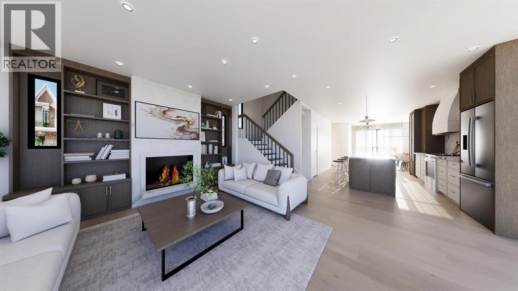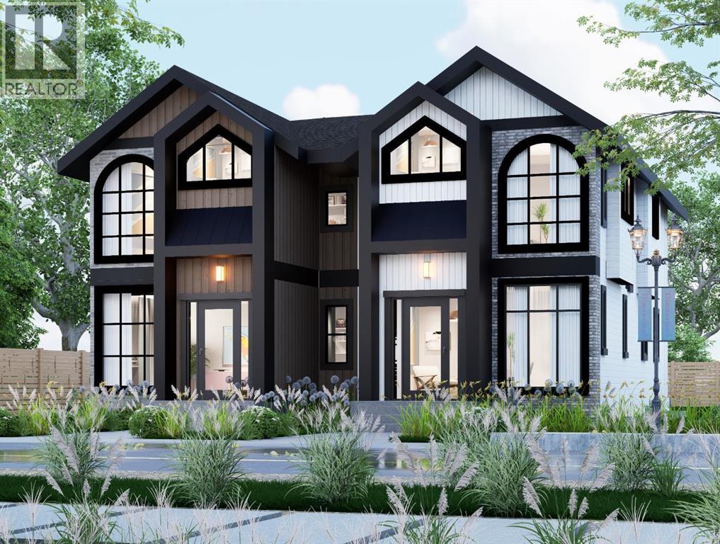 ***SPRING 2026 POSSESSION | WATCH THE VIDEO TOUR AND FALL IN LOVE ***Brand New Luxury Duplex in Killarney by BIRCH HILL CUSTOM HOMES | Over 2,800 SqFt of developed living space | 4 Bedrooms | 3.5 Bathrooms |125FT DEEP LOT ALLOWING FOR LARGE WEST BACKYARD | Step into refined elegance with this stunning brand-new side-by-side duplex. Spanning over 2,800 sq ft of thoughtfully designed living space, this home blends timeless architecture with sophisticated modern finishes to create a truly captivating residence. The striking exterior features board-and-batten Hardie Plank siding in Timber Bark, Hebron Castlewood brick detailing, and sleek black accents, delivering a commanding yet elegant curb appeal. Inside, the main level boasts wide-plank Nouveau Prelude Snow hardwood floors, soaring ceilings, and an abundance of natural light. The open-concept layout is anchored by a chef-inspired kitchen featuring custom cabinetry, a quartz waterfall island, champagne bronze fixtures, full-height designer backsplash, and premium stainless-steel appliances. A warm and inviting living room is highlighted by a floor-to-ceiling fireplace with custom-built-ins and oversized windows framing the landscaped backyard. The designer powder room includes an asymmetrical mirror, a console sink, and terrazzo-inspired flooring. Custom millwork, premium lighting, and modern hardware are thoughtfully incorporated throughout. Upstairs, retreat to the luxurious primary suite complete with a walk-in closet and a spa-like ensuite showcasing large-format porcelain tile, dual vanities, a freestanding soaker tub beneath a statement chandelier, and an oversized glass-enclosed shower. Two additional spacious bedrooms, a designer main bath, and a well-appointed laundry room complete the upper level. The fully developed basement is designed for entertaining and comfort, featuring a spacious family room with a stylish wet bar, a fourth bedroom, and a full bathroom perfect for guests or a private home office. A detached double garage and landscaped yard enhance the exterior living space. Located in the vibrant inner-city community of Killarney, this home offers quick access to downtown, top schools, trendy shops, and parks, all while delivering unmatched style and comfort. Experience elevated living in this exceptional new build crafted for today’s modern family and ready to welcome its first owner. (id:6769