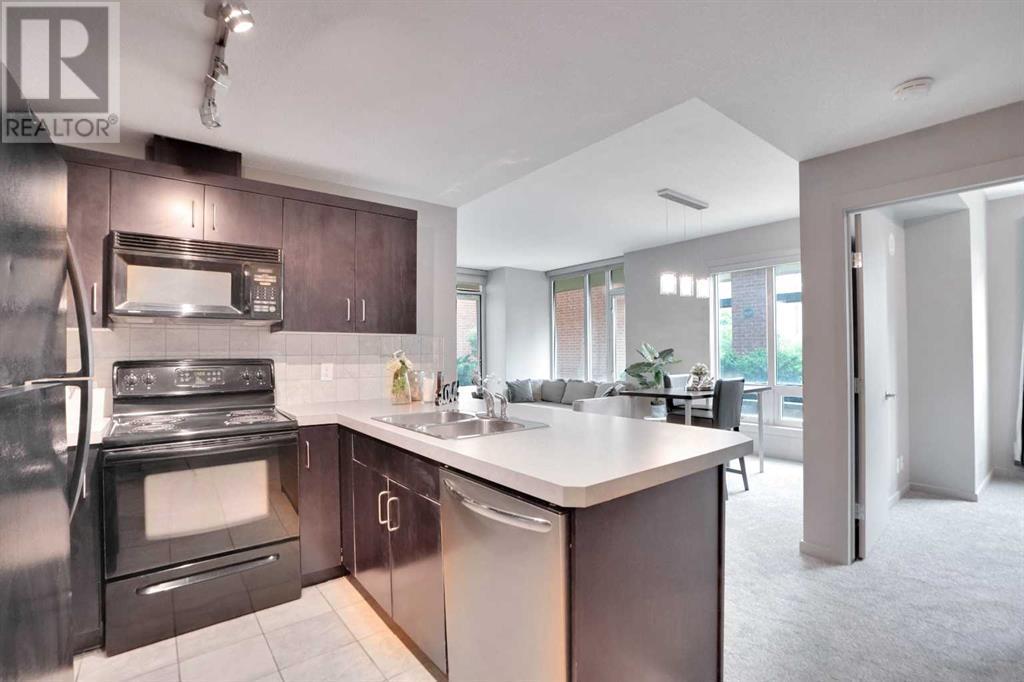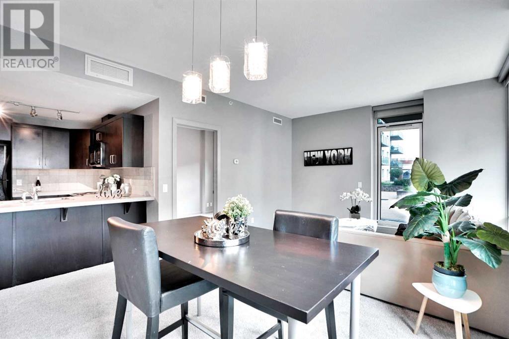 Welcome to " SASSO " an exclusive, LUXURY RESIDENCE ideally located just steps from Calgary’s vibrant DOWNTOWN CORE, Stampede Park, the BMO Centre, and the renowned 17th Avenue, famous for its upscale dining and nightlife. With the VICTORIA PARK LRT Station directly across the street, this prime location offers unparalleled access to the entire city. This prestigious apartment building offers a host of EXCEPTIONAL AMENITIES, including underground parking, FULL CONCIERGE services, a pool table and game room, a private movie theatre, a sauna, steam room, hot tub, and a FULLY EQUIPPED fitness centre, ensuring that every convenience is at your fingertips. This beautifully designed 2-bedroom, 2-bathroom residence boasts a spacious and thoughtfully floor plan. The rare wraparound terrace provides direct access to the second-floor courtyard, offering a tranquil outdoor space – perfect for those who love open-air lounging. KEY FEATURES: include modern finishes, white countertops, a stylish eating bar, and stainless steel appliances complemented by generous kitchen storage. Floor-to-ceiling windows allow natural light to flood the living space, creating an airy, inviting atmosphere. The master bedroom is a retreat in itself, featuring a walk-in closet. Recent upgrades include brand-new carpet and brand new baseboards, further enhancing the comfort and appeal of this exceptional home. Additionally, this unit includes a heated underground parking stall and a dedicated storage locker for added convenience. Property is 18+, does NOT allow dogs and it is currently VACANT. Easy to show. (id:6769