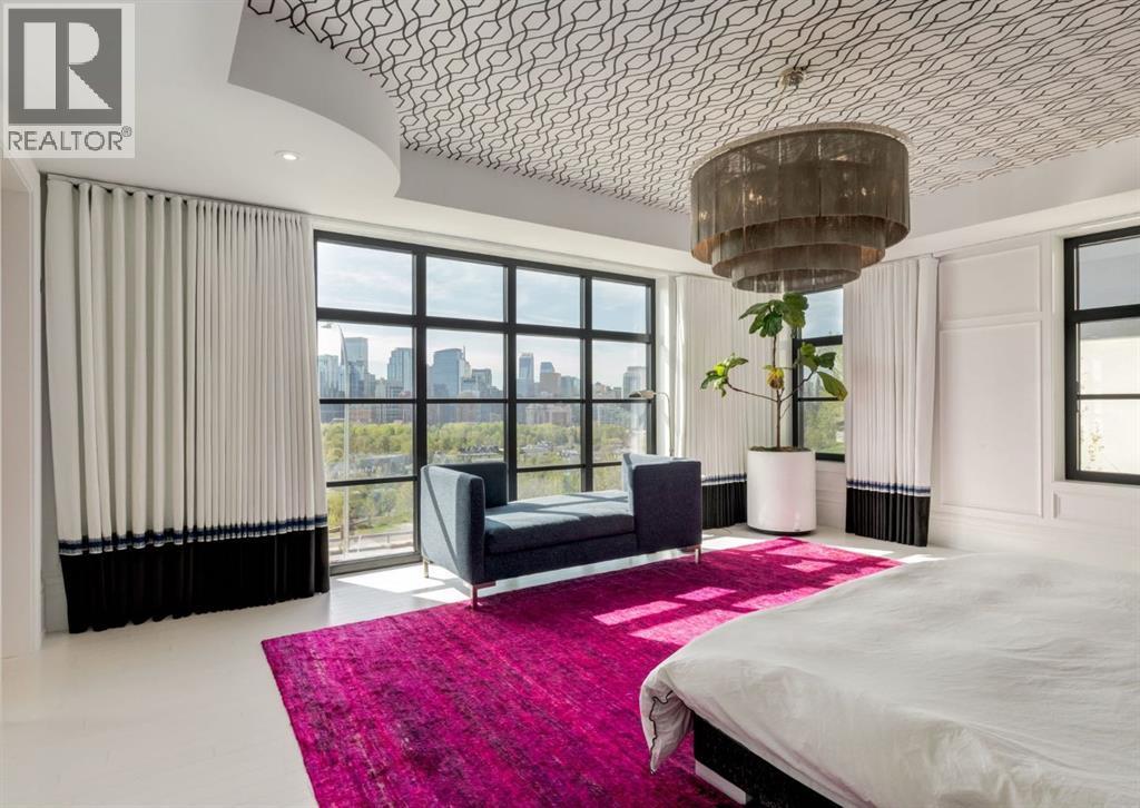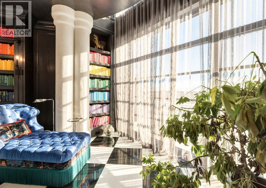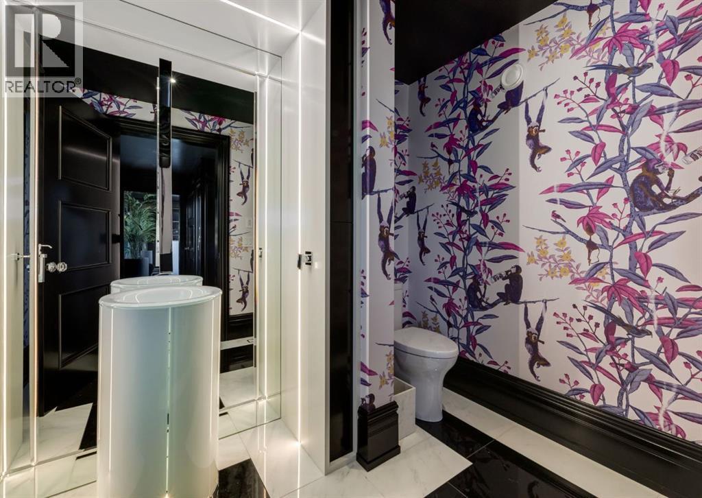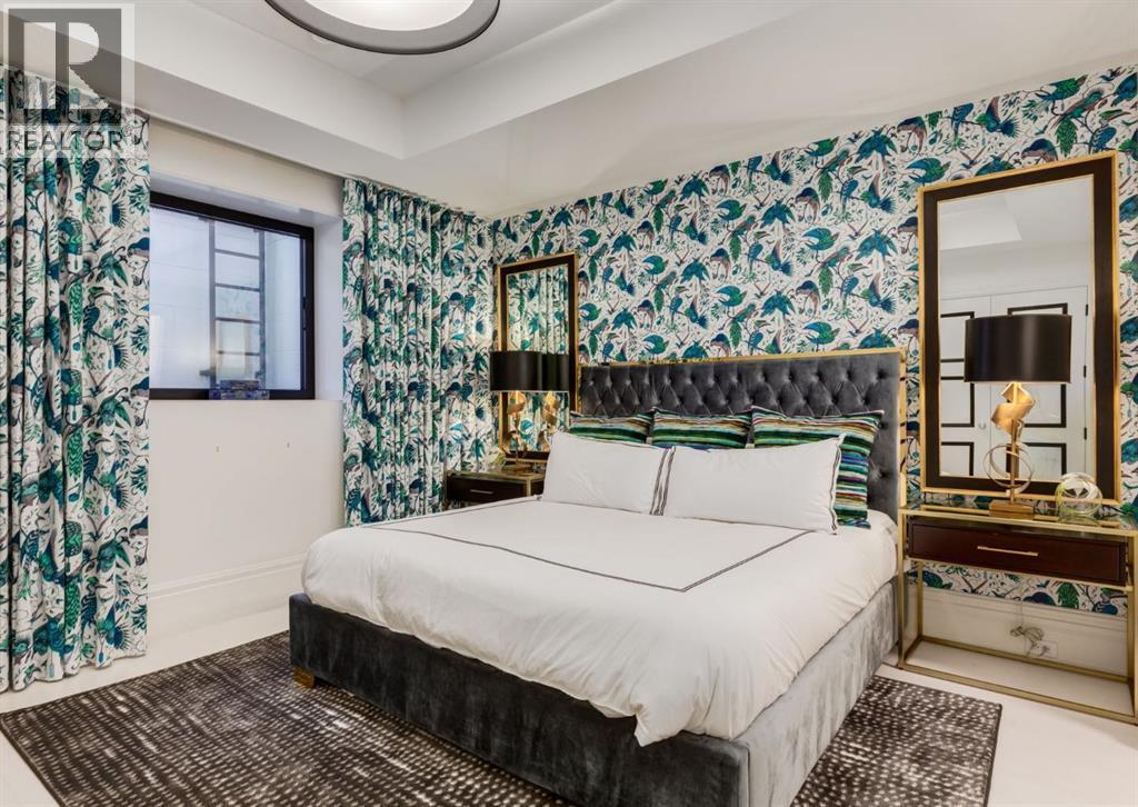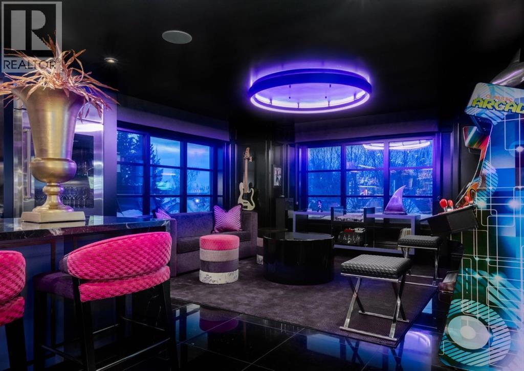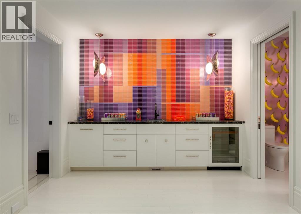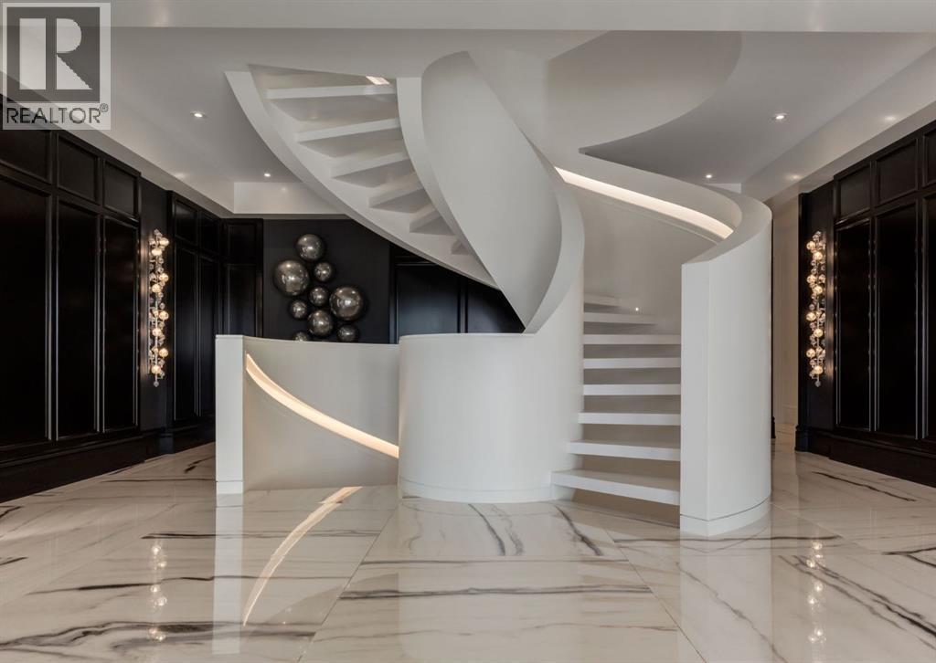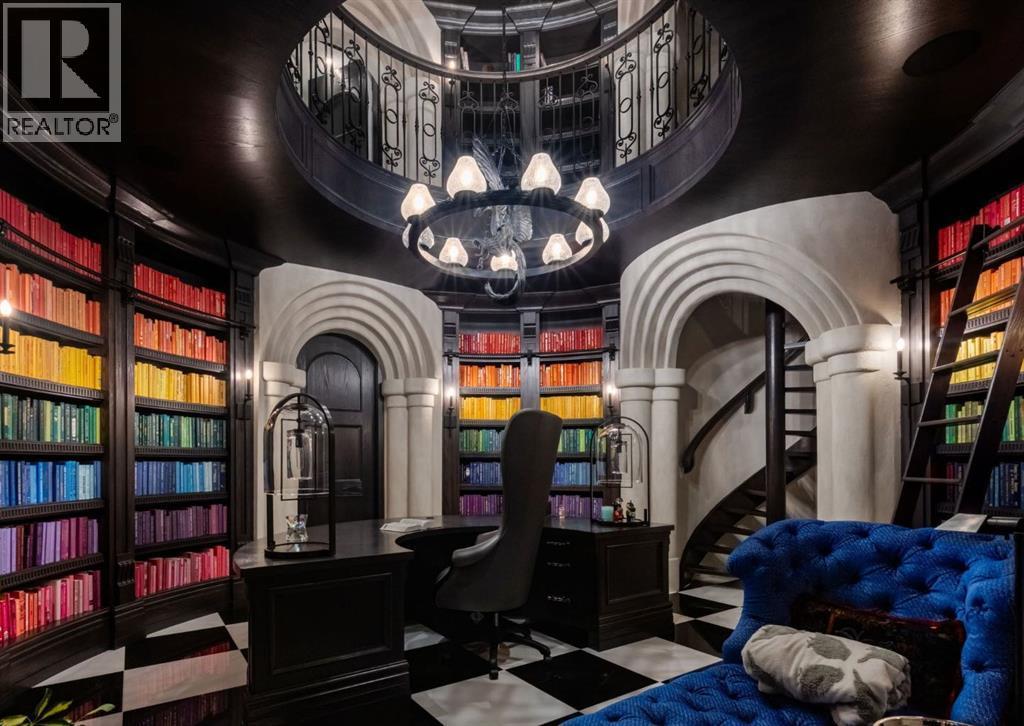 Stunning legacy estate situated on 100 feet of frontage on Calgary’s most coveted street—Crescent Road—offering unparalleled views of the downtown skyline and river valley. This architectural masterpiece boasts over 11,400 sq ft of living space, crafted by boutique luxury builder Maillot Homes in collaboration with Paul Lavoie Interior Design, who drew inspiration from Alice in Wonderland to create a whimsical yet refined family retreat. Built as a forever home and completed in 2022, no expense was spared. The exterior is clad in full-bed Turkish limestone, and the home features high-velocity heating and cooling, an elevator, a roof-mounted solar array, and premium designer finishes throughout. The chef’s kitchen is equipped with a Sub-Zero/Wolf appliance package, steam oven, warming drawers, heated floors, custom millwork with liquid metal finishes, a pot filler, and a fully outfitted butler’s pantry. A highlight of the home is the two-storey library, inspired by Dumbledore’s office in the Harry Potter series—complete with thousands of books, cozy reading nooks, and sweeping city views. The primary retreat features dual private ensuites and walk-in closets, with spa-level features including a steam shower, soaker tub, towel warming drawer, heated floors, custom cabinetry, electronic window coverings, and even a rotating shoe carousel. Additionally, the upper level includes three spacious bedrooms, each with walk-in closets and private ensuites, plus a large laundry room with discreet access from the primary suite. The top floor showcases an elegant lounge with a full bar, wine tasting room, covered patio with gas fireplace, and a designer powder room. Silver-leaf ceilings & a solvable floor maze add to this glamorous space. The lower level mimics a private sports club with an impressive custom gym with soaring ceilings (over 11 feet), nanny quarters, guest suite, recreational room with surround sound, extra laundry, secondary mud room, and ample storage. Outdoors, enjoy the expansive backyard with a retractable-screen patio, gas heaters, fireplace, outdoor dining area, pizza oven, and playhouse. Car enthusiasts will appreciate two heated, attached garages with epoxy floors, custom cabinetry, and a heated front driveway. Ideal for families and grand-scale entertaining, properties of this caliber on the Ridge are extremely rare, this one-of-a-kind estate is a must see. (id:6769