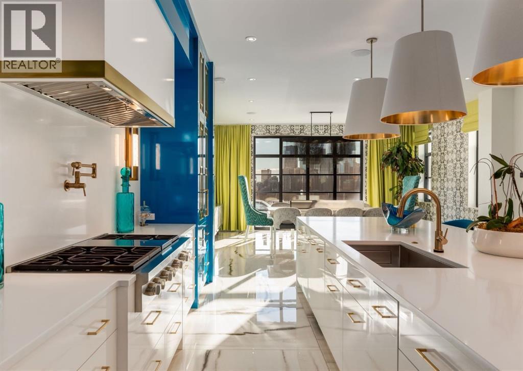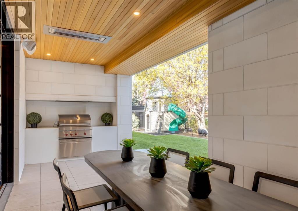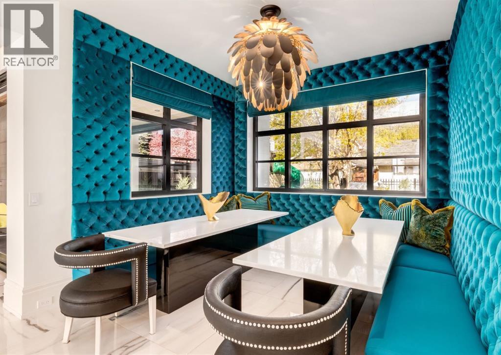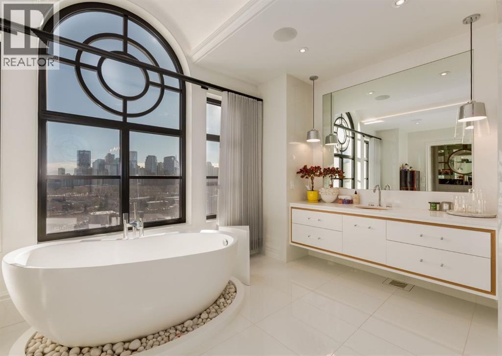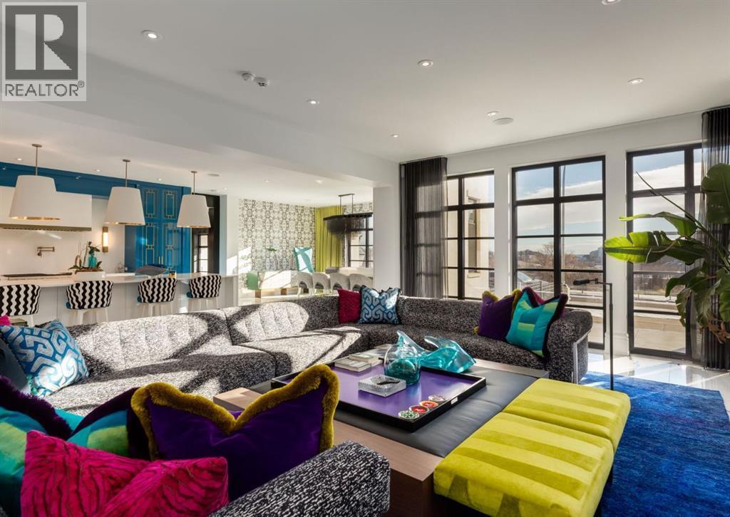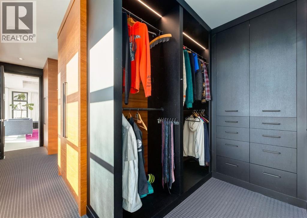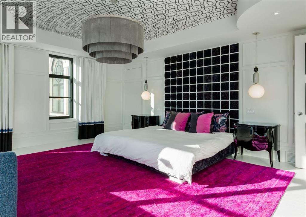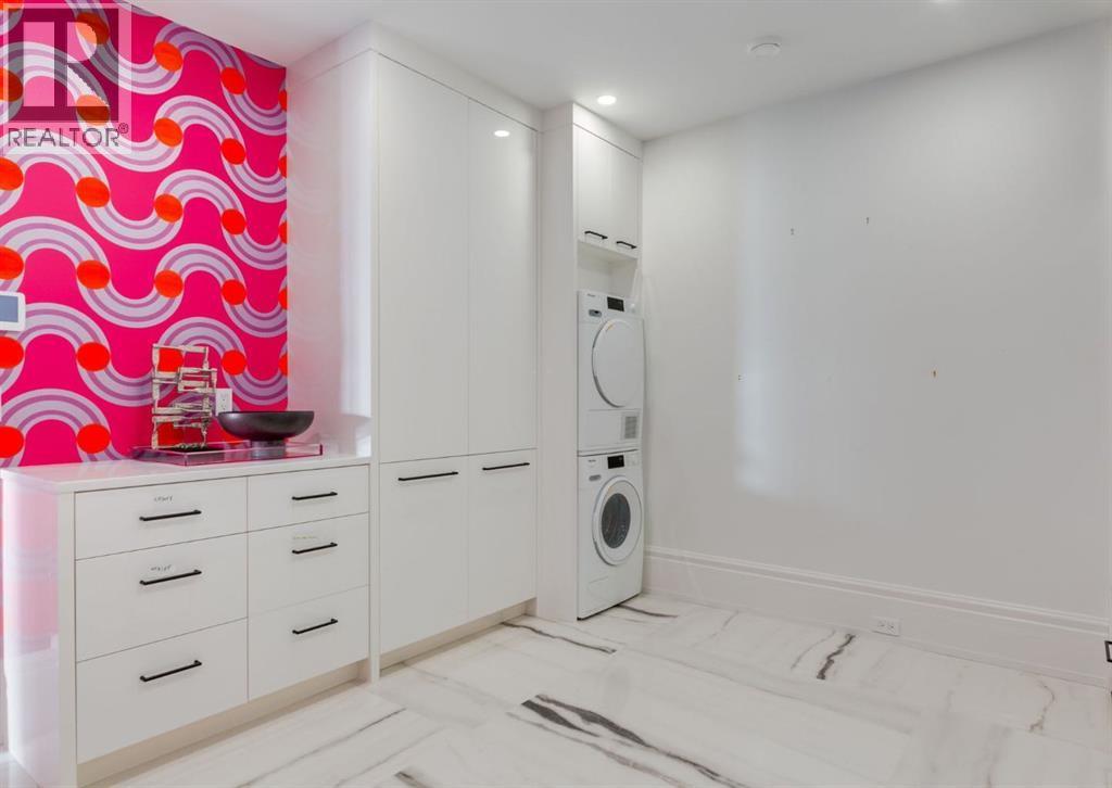 Stunning legacy estate situated on 100 feet of frontage on Calgary’s most coveted street—Crescent Road—offering unparalleled views of the downtown skyline and river valley. This architectural masterpiece boasts over 11,400 sq ft of living space, crafted by boutique luxury builder Maillot Homes in collaboration with Paul Lavoie Interior Design, who drew inspiration from Alice in Wonderland to create a whimsical yet refined family retreat. Built as a forever home and completed in 2022, no expense was spared. The exterior is clad in full-bed Turkish limestone, and the home features high-velocity heating and cooling, an elevator, a roof-mounted solar array, and premium designer finishes throughout. The chef’s kitchen is equipped with a Sub-Zero/Wolf appliance package, steam oven, warming drawers, heated floors, custom millwork with liquid metal finishes, a pot filler, and a fully outfitted butler’s pantry. A highlight of the home is the two-storey library, inspired by Dumbledore’s office in the Harry Potter series—complete with thousands of books, cozy reading nooks, and sweeping city views. The primary retreat features dual private ensuites and walk-in closets, with spa-level features including a steam shower, soaker tub, towel warming drawer, heated floors, custom cabinetry, electronic window coverings, and even a rotating shoe carousel. Additionally, the upper level includes three spacious bedrooms, each with walk-in closets and private ensuites, plus a large laundry room with discreet access from the primary suite. The top floor showcases an elegant lounge with a full bar, wine tasting room, covered patio with gas fireplace, and a designer powder room. Silver-leaf ceilings & a solvable floor maze add to this glamorous space. The lower level mimics a private sports club with an impressive custom gym with soaring ceilings (over 11 feet), nanny quarters, guest suite, recreational room with surround sound, extra laundry, secondary mud room, and ample storage. Outdoors, enjoy the expansive backyard with a retractable-screen patio, gas heaters, fireplace, outdoor dining area, pizza oven, and playhouse. Car enthusiasts will appreciate two heated, attached garages with epoxy floors, custom cabinetry, and a heated front driveway. Ideal for families and grand-scale entertaining, properties of this caliber on the Ridge are extremely rare, this one-of-a-kind estate is a must see. (id:6769