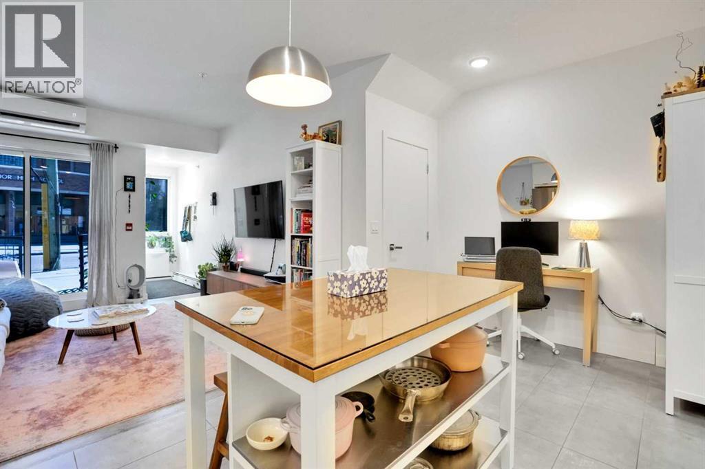 Discover Wonderful Living in this well managed complex in Duke apartments with a townhome vibe, you have your own private entrance, no steep ladder to climb, and no busy elevators, just for you to enjoy. You will be in the center of it all, but nestled on a quiet street and only a few steps away from the excitements. Welcome to this stunning 1-bedroom, 1-full bathroom home, perfectly situated on the ground level overlooking the serene south blue sky. This unit is designed for both comfort and style. Inside, you'll find an open-concept layout that seamlessly blends elegance with functionality, it features a spacious kitchen with modern cabinetry, a kitchen island that serves as a breakfast bar, a free-flowing living area and a dining space with a private front porch and your own exclusive entrance. You might be buying an apartment but has a feel of a townhome living. Every detail has been thoughtfully considered to create a warm and inviting atmosphere. No car, no problem, the building is tactically built within a short distance walk to downtown core, around the corner is a bus stop and a hop, skip and a jump to the stampede c-train station. Don't miss the chance to own this exquisite property. Schedule your private tour today and experience this exceptional home firsthand! (id:6769