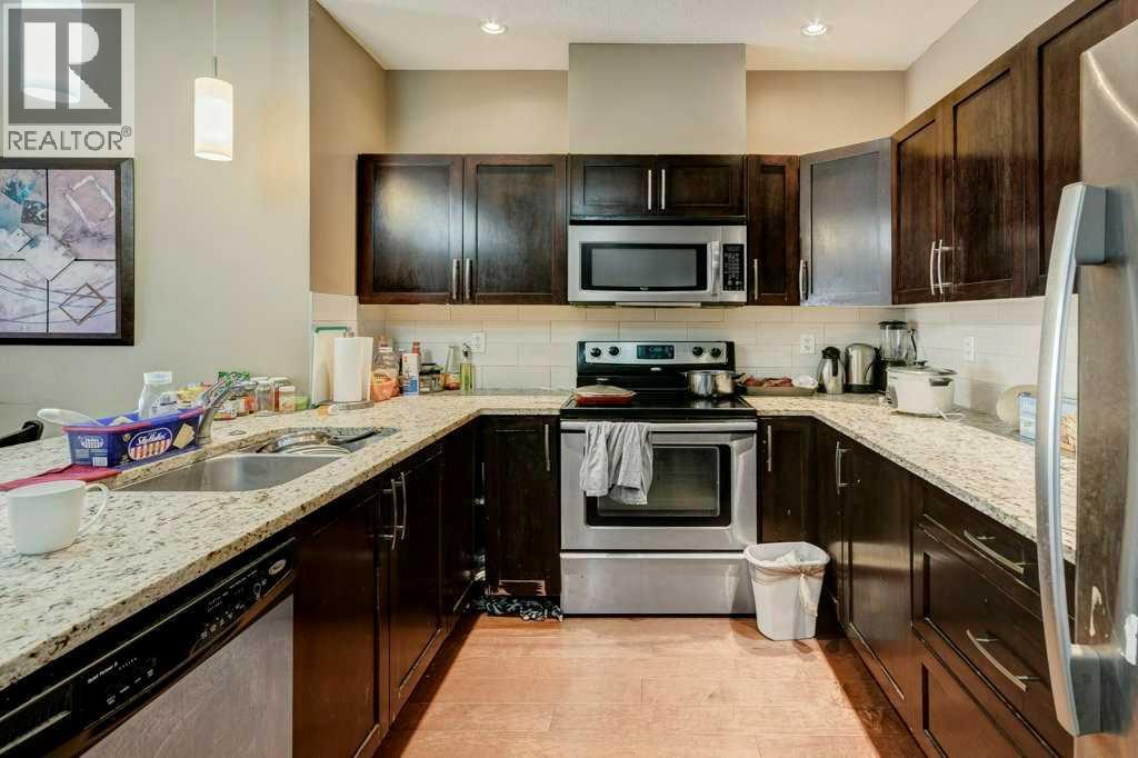 Welcome to Montgomery, one of Calgary’s most vibrant and growing communities, known for its trendy local shops, cozy cafés, scenic walking paths, and quick access to downtown. This rare 2-bedroom plus a den unit in Montgomery Place offers an open-concept layout with hardwood floors, a spacious kitchen featuring stainless steel appliances, granite countertops, and a convenient breakfast bar. The kitchen flows into a bright dining and living area, leading to a massive private balcony—perfect for relaxing or entertaining. The primary bedroom includes a walk-through closet and 4-piece ensuite, while an additional bedroom, a den, a full main bath, and in-suite laundry provide both comfort and functionality. This unit also comes with a titled underground parking stall for added security and convenience. Steps from schools, parks, transit, and everything Montgomery has to offer—this is unbeatable value in a fantastic location. (id:6769