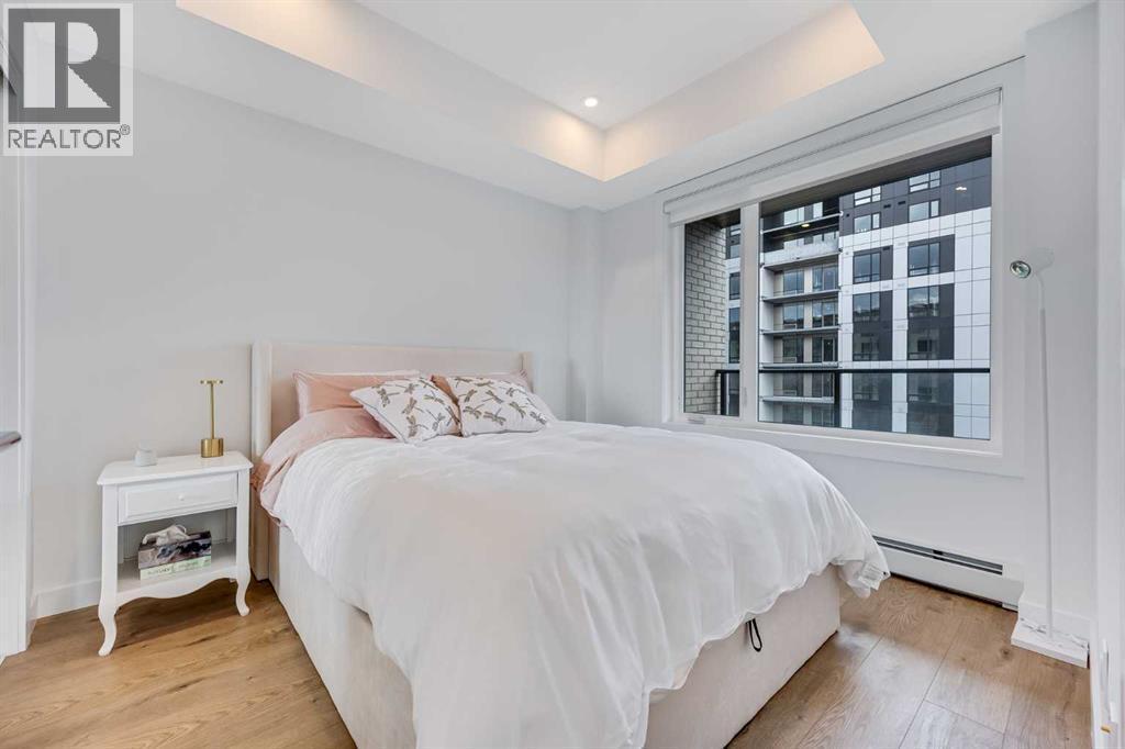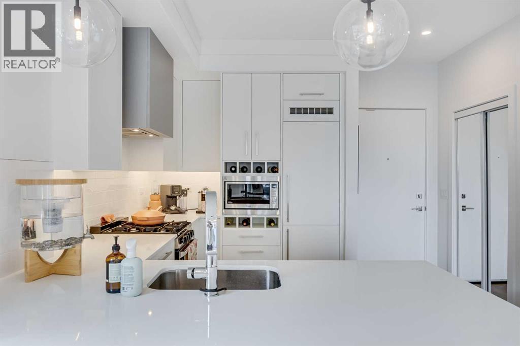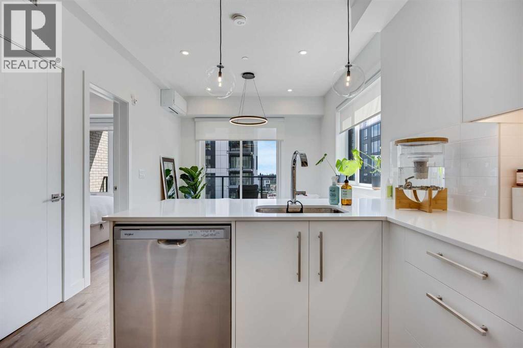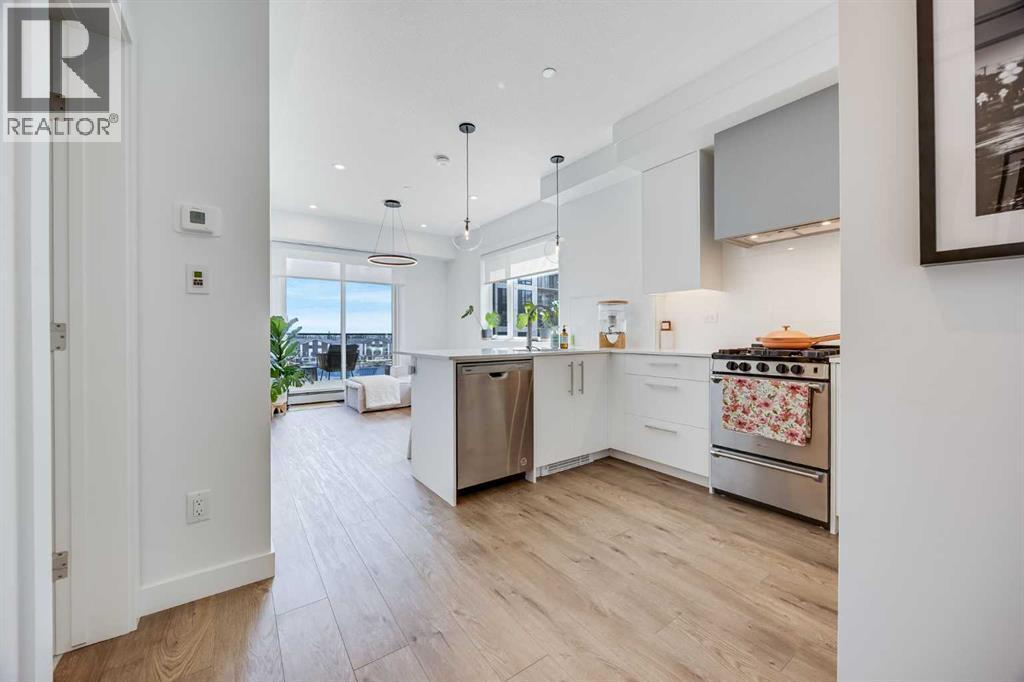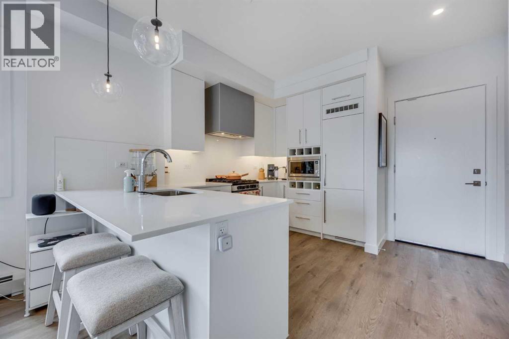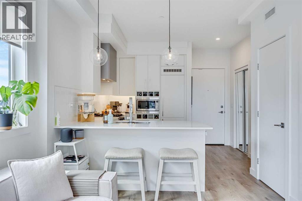 Modern Corner Unit in West District | Tenant in Place – Turnkey Investment Opportunity Welcome to Unit 402 at the Mondrian – a bright, modern corner unit in the award-winning West District community of West Springs. With a tenant already in place for the past two years, this is a perfect turnkey investment opportunity in one of Calgary’s most sought-after urban developments. This 1-bedroom + den, 1-bathroom air-conditioned home features 9’ ceilings, luxury vinyl plank flooring, and expansive NW-facing windows that flood the space with natural light. The open-concept layout is anchored by a chef-inspired kitchen with quartz countertops, upgraded stainless steel appliances (including gas cooktop), and a generous island—ideal for both everyday living and entertaining. Situated steps from boutique shopping, top restaurants, cafes, fitness studios, and green spaces, and just 15 minutes to downtown or a short drive to the mountains, this location balances lifestyle and convenience. Whether you're looking to grow your real estate portfolio or secure a stylish home in a thriving community, this modern corner unit with stable rental income checks all the boxes. Contact us today to schedule a viewing and learn more. (id:6769