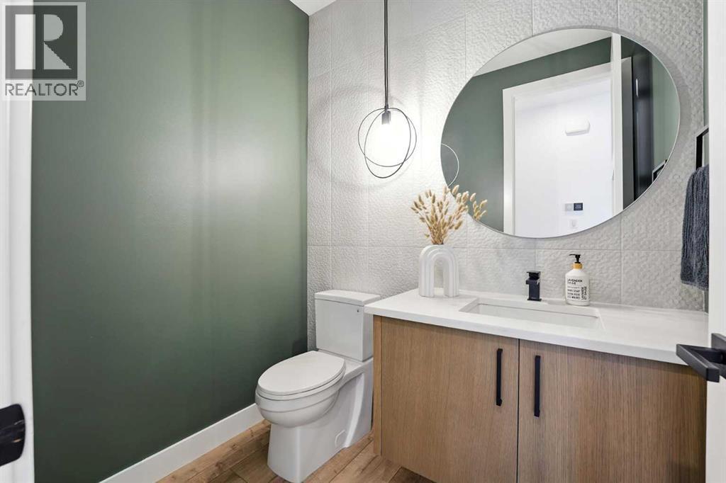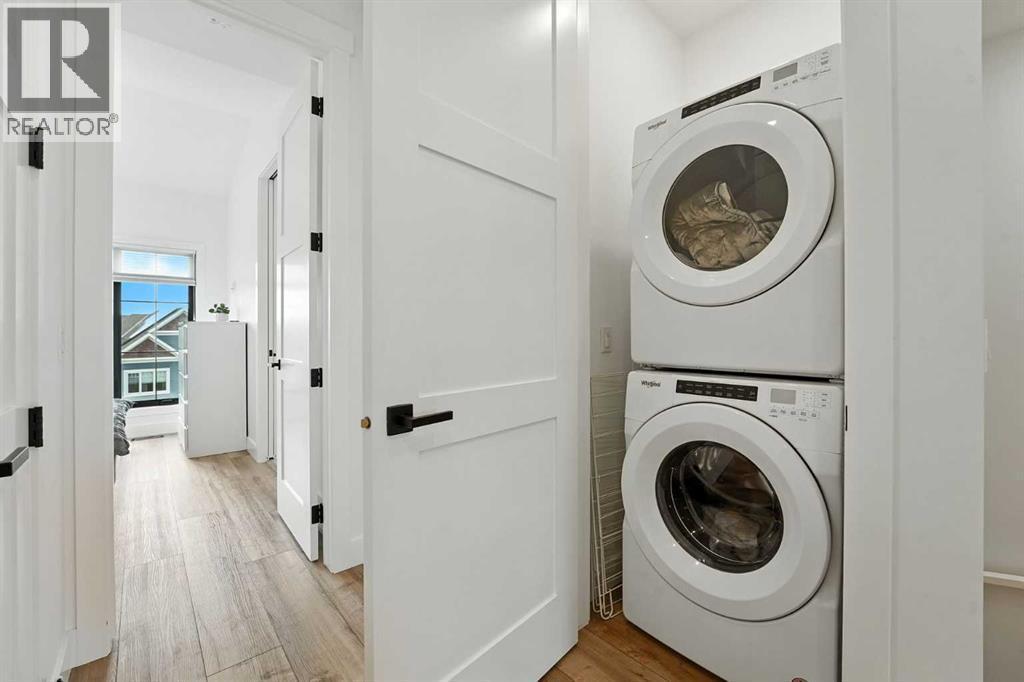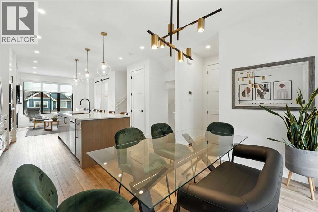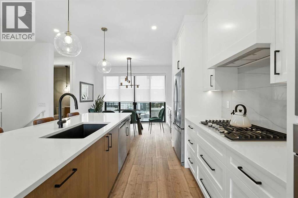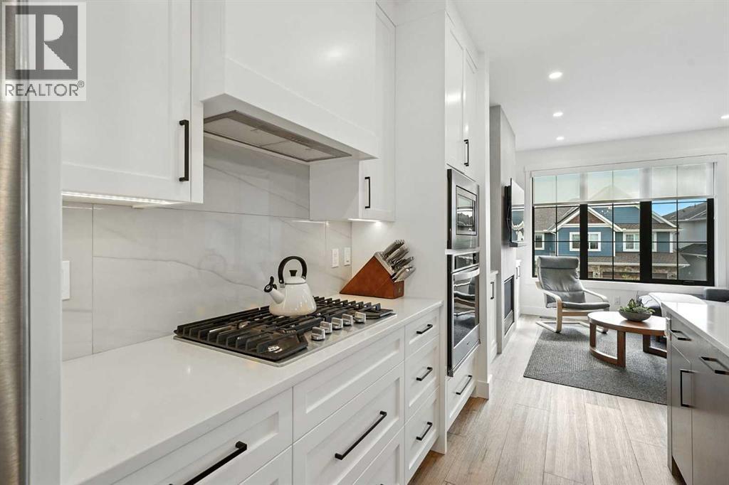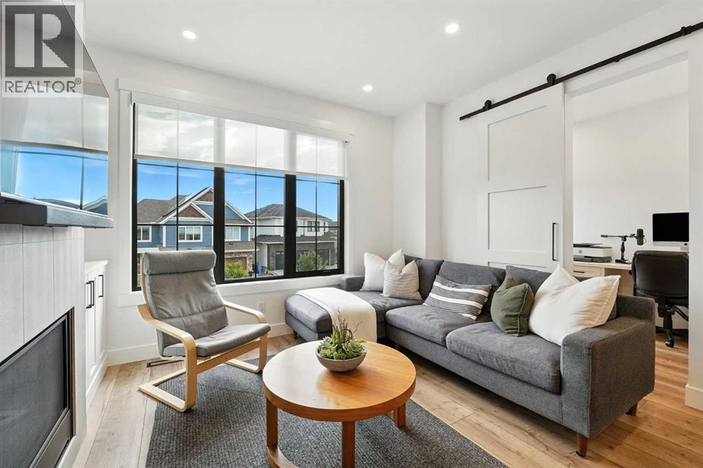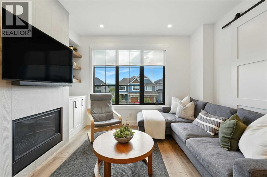 Step into modern elegance with this newly built corner-unit townhouse, perfectly situated in Griffith Pointe at Discovery Ridge. Perfectly positioned just steps from Griffith Woods, you’ll enjoy sweeping valley views and endless kilometres of walking and biking trails. Within a quick 5–10 minute drive, you’ll find quality schools, Westhills shopping, groceries, restaurants, and LRT access.Designed for modern living, this home offers 3 bedrooms and 3 bathrooms with just over 1,700 sqft across a smart, stylish layout. The oversized double attached garage easily accommodates a large SUV and a second vehicle, while the entry level provides a bright, versatile flex space—perfect for a gym, second office, or multipurpose room.The main floor showcases a chef-inspired kitchen with built-in appliances, designer tile backsplash, and a spacious island with breakfast bar. The kitchen flows seamlessly into the living room, anchored by a cozy gas fireplace with custom built-ins, and a dining area enhanced by a custom buffet offering both beauty and storage. A private, door-closing office creates the ideal work-from-home retreat. Expansive sliding doors lead to a large west-facing balcony, where you can enjoy spectacular sunsets and host family and friends. A powder room and cleverly designed storage complete this level.Upstairs, the primary suite feels like a private sanctuary with soaring vaulted ceilings, oversized windows overlooking the ravine, a walk-in closet, and a spa-like 5-piece ensuite featuring dual vanities and a soaker tub. With 2 additional bedrooms a full bathroom, plus an upstairs laundry room, add daily convenience.Over $30,000 in thoughtful upgrades make this home truly stand out: custom living room built-ins, a dining buffet, additional kitchen drawers, a dedicated office with sliding barn door and built-in desk, mirrored gym wall, and professional custom blackout window treatments.Impeccably maintained and beautifully finished, this turn-key proper ty offers an elevated lifestyle of comfort, functionality, and style in one of Calgary’s most sought-after communities. (id:6769
