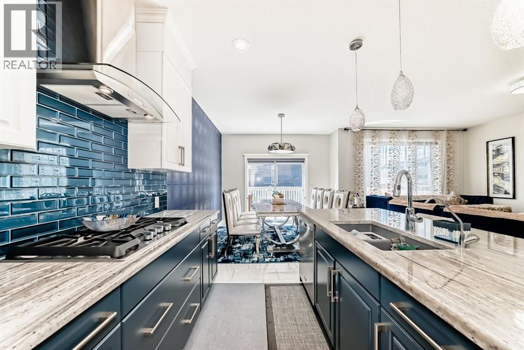 Gorgeously Upgraded 4-Bedroom Home in Redstone!Welcome to this beautifully UPGRADED 4 bedroom, 3.5 bathroom home in the highly sought-after community of Redstone! Thoughtfully designed and fully finished from top to bottom, this property combines style, comfort, and functionality—perfect for growing families.Main Floor Highlights:Bright, open-concept layout with 9ft ceilingsModern kitchen featuring quartz countertops, chimney hood fan, SPICE KITCHEN, custom backsplash, gas stove, built-in oven & microwave, plus a massive central islandSpacious dining area flowing into the inviting living room with an decorative fireplaceAbundant natural light throughout . Upper Level:-3 generously sized bedrooms, including a luxurious primary retreat Versatile central bonus room, ideal for family gatherings or a home officeConveniently located laundry roomFully Developed Basement:-1 additional large bedroom with full bathroomKitchenette, perfect for guests, teens, or extended familyAdded flexibility and value for multi-generational livingExtra Features:-West-facing backyard for sunny eveningsClose to CrossIron Mills, YYC Airport, Deerfoot & Stoney Trail, and future schools (id:6769