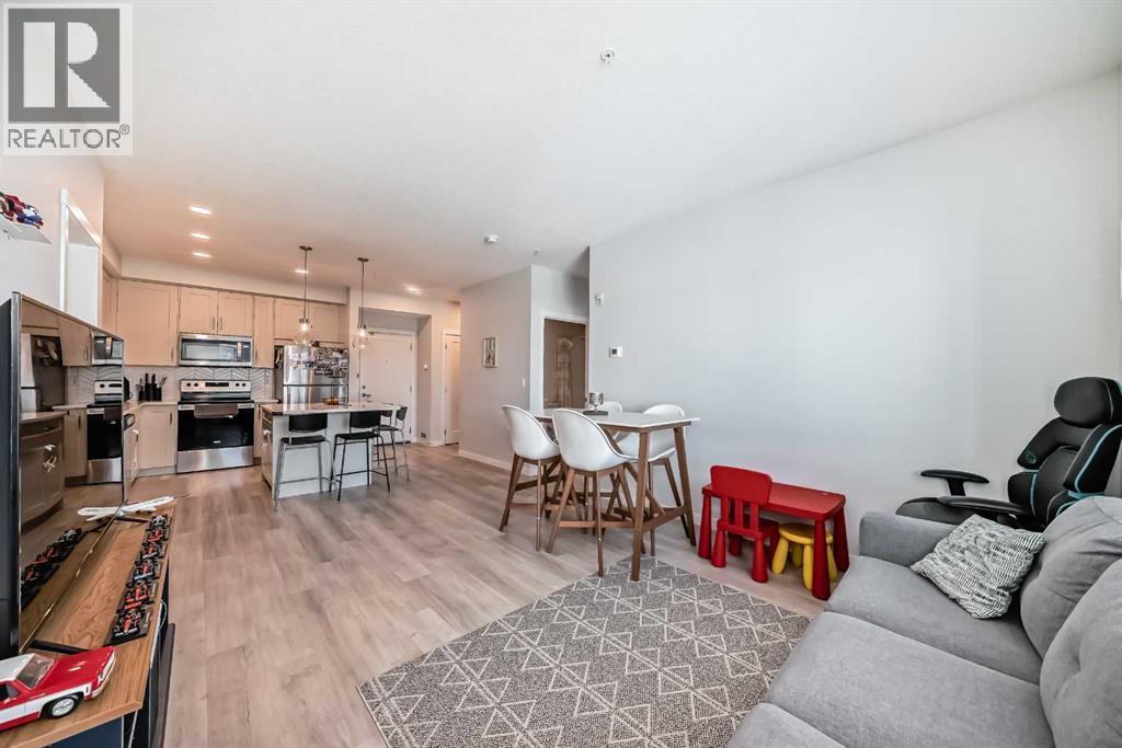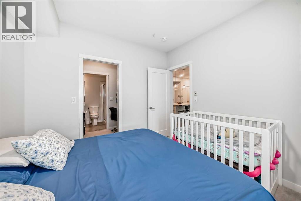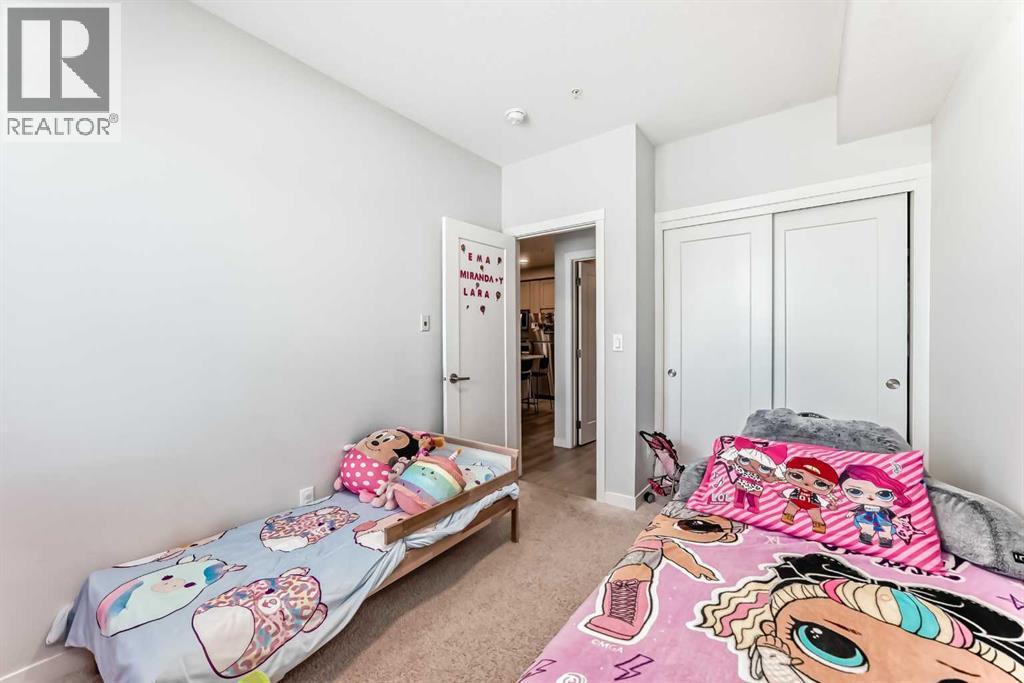 Sought after Shawnee Slopes has a listing just for you! This gorgeous 3rd floor, 2 beds, 2 bath 788 sq. ft. home, features 9' high ceilings and an open floor plan that encompasses the living room and gourmet kitchen. Here you will find a center island with storage, stainless steel appliances, granite countertops and chevron tiled backsplash. This 3rd floor unit has a light-coloured palette, luxury vinyl plank flooring throughout. The balcony has a gas hookup for your BBQing convenience. The primary bedroom offers a large walk-through closet and the second bedroom has a good-sized closet as well. The main bath boasts of a deep tub and tall counter and the laundry machines are full-sized. You'll have access to a titled underground parking stall and storage unit. The condo is close to Fish Creek Provincial Park, C-train station, playgrounds, St. Mary's University, and Shawnessy Shopping Centre. Macleod Trail is easily accessible. It's the perfect place to call home! This is a great first home purchase or a reliable investment property. Currently tenanted until March/26 but this is negotiable. Tenant rights apply. (id:6769