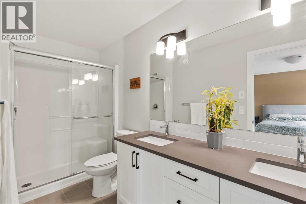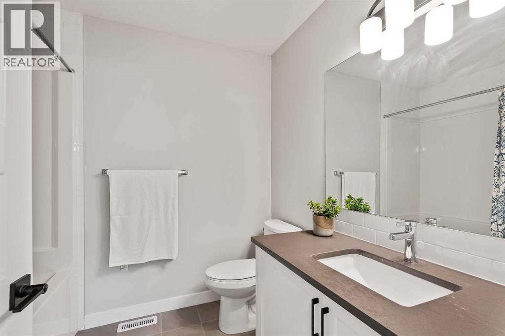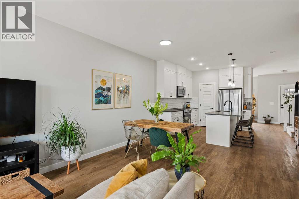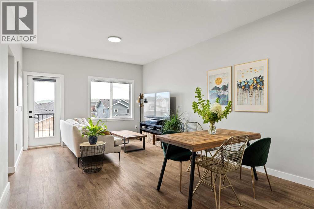 Built in 2022, this contemporary like-new home in River Heights combines stylish design with family-friendly functionality. A sunny south-facing front patio welcomes you with space to enjoy morning coffee or keep an eye on the kids while they play. Inside, 9’ ceilings create an airy atmosphere while durable finishes stand up to everyday life. A bright flex room at the front of the home provides a comfortable space for work, study or a playroom. Flowing through the main level, the open plan layout balances togetherness with defined spaces. The inviting living room offers a relaxed setting that extends easily to the rear deck, ideal for summer barbecues or unwinding outdoors. Anchoring the design, the dining area keeps family meals and gatherings connected, while the modern kitchen blends function and style with quartz countertops, stainless steel appliances, timeless subway backsplash and a central island with seating for casual bites. A pantry ensures everything is within easy reach and a powder room enhances convenience. Upstairs, the hallway landing is generous enough for a cozy reading nook or homework station. The spacious primary retreat features a walk-in closet and a sleek ensuite with dual sinks and an oversized shower for a touch of everyday luxury. Two additional bedrooms share a well-appointed four-piece bathroom and the upper laundry room saves time and steps on busy family mornings. The walkout basement is ready for future development, already offering direct access to the fenced backyard where kids and pets can play safely on the grassy lawn. A rear deck with stairs down provides a seamless indoor-outdoor connection and a parking pad accommodates two vehicles. Living in River Heights means being minutes from schools, playgrounds and shopping, while Cochrane’s trail network and outdoor spaces are always close at hand. This home delivers the style you want with the practicality your family needs. (id:6769