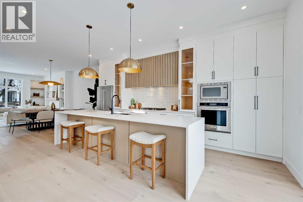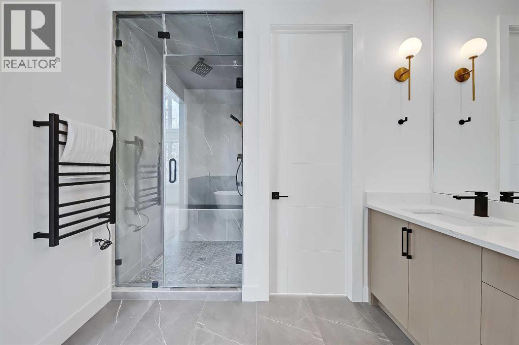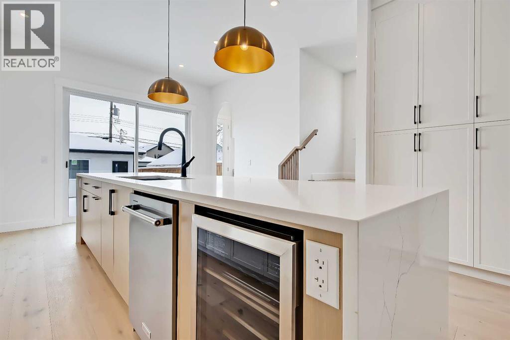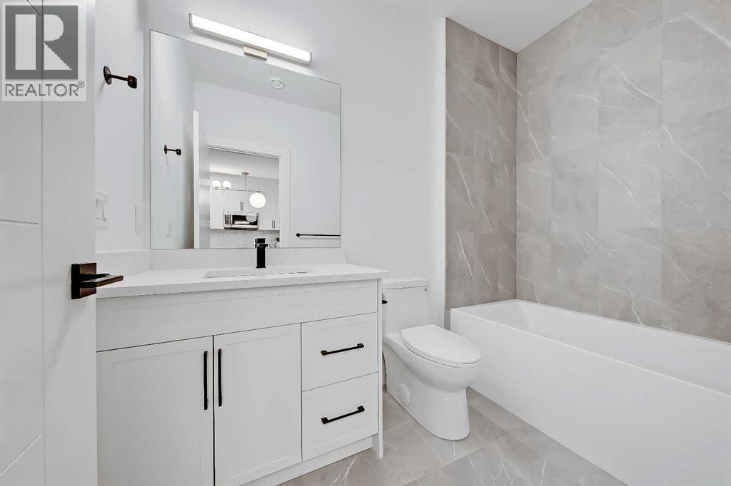 Look at this curb appeal! And that’s only the beginning of this immaculate, highly upgraded designer SEMI-DETACHED infill in Tuxedo Park! Over 2500 sq ft of living space across 5-BEDS, including a fully developed LEGAL 2-BED BASEMENT SUITE (subject to permits & approval by the city) w/ it’s own private entrance & separate laundry! This sought after location offers an ideal location for families, w/ parks, schools, shopping, & amenities all around. The inside of this incredible home showcases engineered hardwood flooring, beginning in a lovely open, spacious front living room w/ an inset gas fireplace w/ tile surround, & large windows overlooking the front yard. A dedicated HOME OFFICE shares an open floorplan w/ the dining room and large, central kitchen, which features extensively upgraded custom cabinetry, an upgraded stainless steel appliance package, an oversized island w/ lots of bar seating, & an oversized built-in pantry! The kitchen is also flooded w/ natural light from the large sliding patio door for quick & seamless access to the SOUTH back deck w/ a gas line for a BBQ. There’s also a mudroom w/ tile flooring, a custom built-in bench w/ hooks, & a walk-in closet that offers an easy transition outdoors & an elegant 2-pc powder room w/ a stylish vanity & undermount sink. Upstairs, the expansive primary suite features a sky-high vaulted ceiling welcoming you into this well-designed retreat, complete w/ PRIVATE BALCONY, a walk-in closet, & an outstanding 5-pc ensuite w/ barn door entrance, modern vanity w/ dual sinks, a free-standing soaker tub, a fully tiled walk-in rain shower w/ bench, & heated tile floors. Two secondary bedrooms have walk-in closets & share access to the main 4-pc modern bath. A large, tiled laundry room features a quartz folding counter, & a linen closet in the hallway adds additional storage. With its own private, secure side entrance, the legal basement suite (subject to permits & approval by the city) is an excellent mortgage helpe r or mother-in-law suite w/ contemporary touches found in the rest of this upscale home. Luxury vinyl plank flooring runs throughout the suite across the spacious open-concept space. The modern kitchen features custom cabinetry, quartz countertops, an elegant backsplash, & a good-sized central island for even more counter space & storage. There’s also a separate laundry, a sizeable 4-pc bathroom, & two bedrooms w/ built-in closets. Dual furnaces allow for a comfortable atmosphere for whoever enjoys this modern space. Don’t miss this fantastic opportunity! *Photos from similar project by the same builder, some finishes may vary* (id:6769
