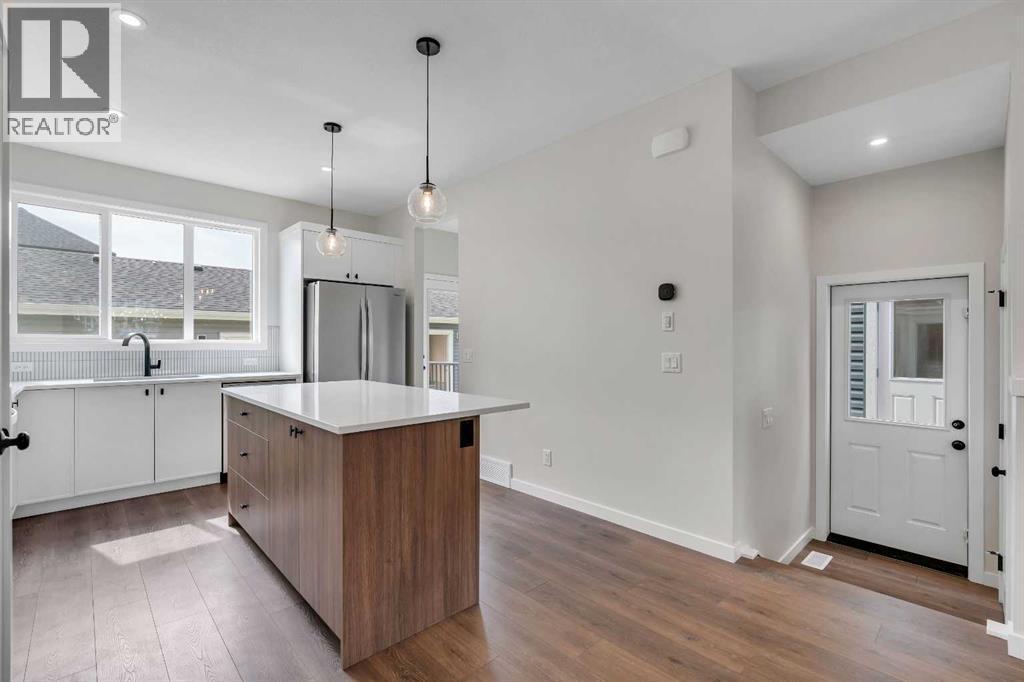 Welcome to 225 Heirloom Way SE, an exciting opportunity to purchase a brand new Heirloom Street townhome by Baywest Homes in the highly sought-after community of Rangeview. Presenting The Viola A model, this home offers a charming farmhouse-inspired exterior and an elegant interior featuring finishes handpicked by a professional interior designer. The layout is designed with the modern family in mind, offering an open concept on the main floor with 9-foot ceilings throughout. The main floor is highlighted by beautiful hardwood-inspired LVP floors, a gallery-style kitchen with quartz countertops, a sleek stainless steel appliance package, abundant cabinetry and counter space, and a spacious island with an eating bar. The living room, situated at the front of the home, is bright and airy with large, sunny windows. Just off the dining room, the mudroom and backdoor lead out to a private backyard and an oversized single detached garage. A half bath completes the main level. Upstairs, you’ll find 3 bedrooms, 2 bathrooms, and convenient laundry. The generously-sized primary bedroom includes its own 3-piece ensuite with a large shower. The remaining two bedrooms are located at the back of the home and share a full bathroom. The home also features an undeveloped basement, offering ample space for future development, including additional bedrooms, a bathroom, family room, or storage. This townhome is an end unit, offering the added benefit of a side door, and boasts a private South-facing backyard. It is ideally located across from the new community greenhouse and fronts onto the future community gardens. You won’t want to miss this one, as it’s one of the final opportunities to own a property directly across from the upcoming greenhouse. Additional inclusions are the front landscaping, designer-curated palette with upgraded finishes at no extra cost. The builder also includes one side of fencing for your private backyard. Rangeview is Calgary’s first Garden-to-Table Communi ty, thoughtfully designed to inspire food-centered living. With walkable streets, open spaces, and vibrant gardens, it’s the perfect environment for neighbors to gather and connect. Residents can enjoy walking, jogging, or cycling through the community’s network of pathways and linear parks. Future plans include over 23 acres of reconstructed wetlands and ponds, creative playgrounds, outdoor classrooms, interpretive areas, and more. The food-producing gardens, orchards, and greenhouse will bring residents together to celebrate food and nature. The heart of Rangeview will be the Market Square, a lively space for community events, food markets, and celebrations, complete with open lawns and playgrounds. Plans for an Urban Village with restaurants, boutiques, and services will enhance the sense of community. **Photos are of the Showhome and may not exactly represent the finished product. (id:6769