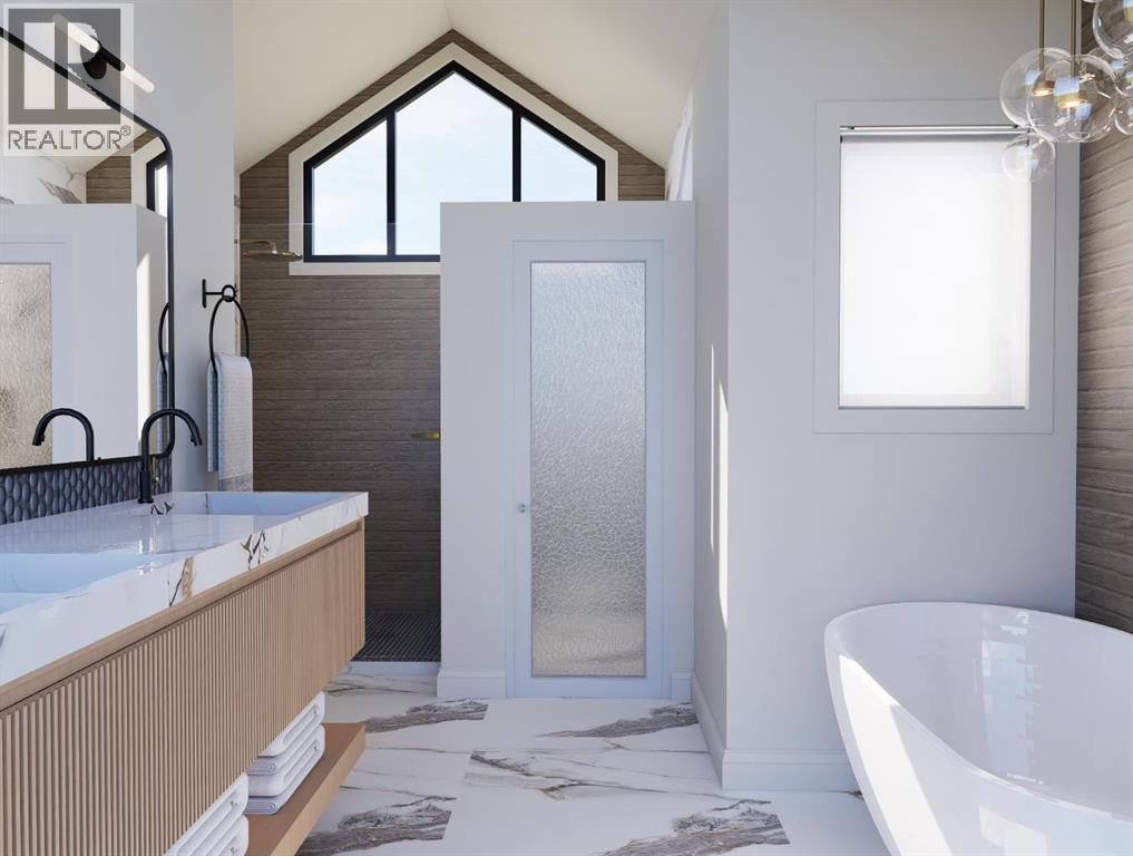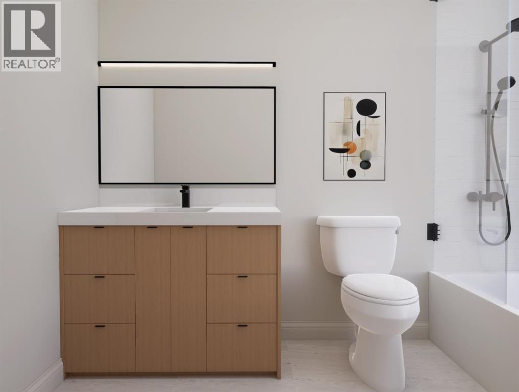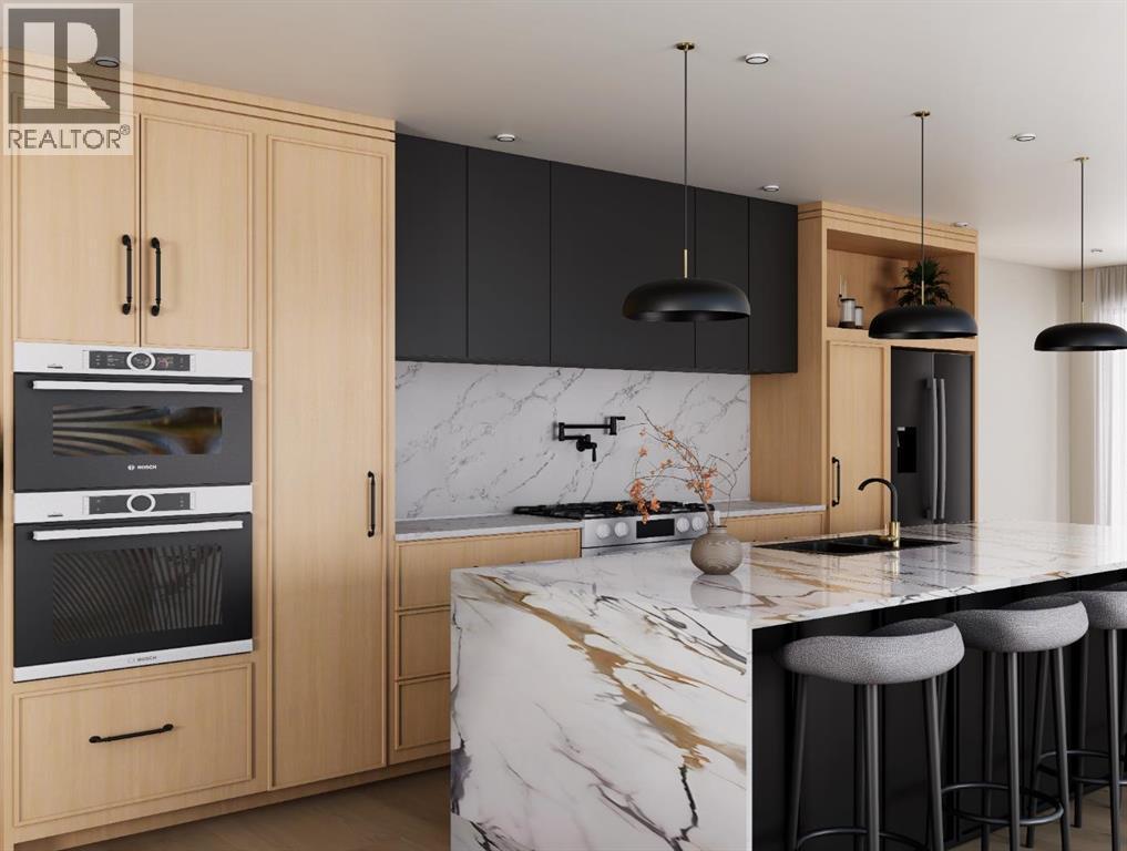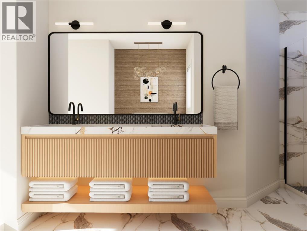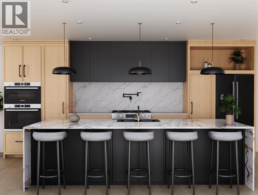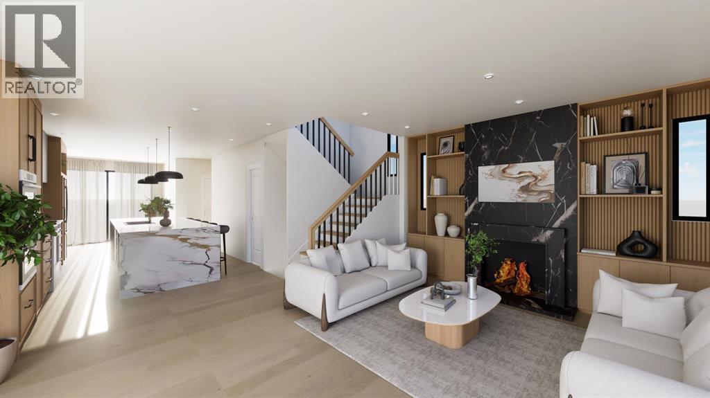 BIRCH HILL CUSTOM HOMES PRESENTS | MODERN LUXURY DUPLEX IN KILLARNEY | SPRING 2026 POSSESSION | 2,800+ SQFT OF DEVELOPED SPACE | 4 BEDROOMS | 3.5 BATHROOMS | EXTRA-DEEP 125’ LOT WITH EXPANSIVE WEST-FACING BACKYARD | Brand New Designer Duplex in Killarney – Modern Elegance Meets Timeless Craftsmanship. Experience the pinnacle of inner-city living with this exquisite, newly constructed side-by-side duplex in the highly sought-after community of Killarney. Spanning over 2,800 sq ft of impeccably designed space, this residence offers 4 spacious bedrooms and 3.5 bathrooms, blending architectural sophistication with a warm, inviting palette inspired by modern luxury design. The exterior makes an unforgettable first impression with its striking board-and-batten Hardie Plank siding in Timber Bark, accented by Castlewood brick and sleek black trim. Designer lighting and rich textural details complete the curb appeal, setting the stage for the elegance that awaits inside. Step into a bright, open-concept main floor where natural light dances across wide-plank Nouveau Prelude Snow hardwood floors. A stunning floor-to-ceiling fireplace with custom millwork anchors the living space, complemented by clean architectural lines and contemporary lighting. The chef’s kitchen is a showpiece, featuring custom cabinetry in soft, neutral tones, a waterfall quartz island adorned with champagne bronze fixtures, designer pendants, and a full-height backsplash that elevates the entire room. Upstairs, retreat to a private primary suite that feels like a boutique hotel, complete with a wall-mounted fireplace, custom walk-in closet, and a spa-inspired ensuite. This serene escape showcases oversized porcelain tile, a freestanding soaker tub illuminated by a chandelier, dual quartz-topped vanities, and a frameless glass shower with luxury fixtures. Secondary bedrooms offer abundant space and style, paired with a beautifully appointed main bathroom. The fully finished basement continues the refined design with a spacious family lounge, a sophisticated wet bar with quartz counters and designer backsplash, an additional bedroom, and a full bathroom perfect for hosting guests or creating a private home office. Every detail has been carefully curated, from the powder room’s console sink with fluted paneling and terrazzo tile flooring to the designer laundry room with custom cabinetry and chic patterned tile. A landscaped west backyard and detached double garage complete the home, offering both beauty and practicality. Located minutes from boutique shops, top-rated schools, lush parks, and Calgary’s downtown core, this home perfectly balances high-end finishes with everyday functionality. Indulge in the artistry of modern living. This brand-new luxury duplex in Killarney is move-in ready and designed to exceed expectations. (id:6769
