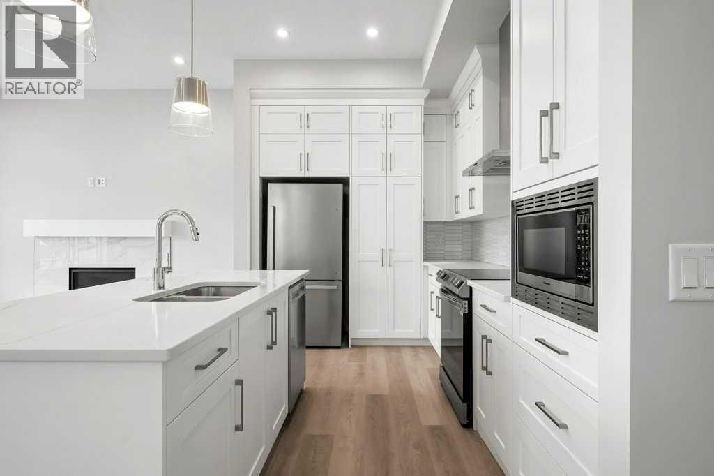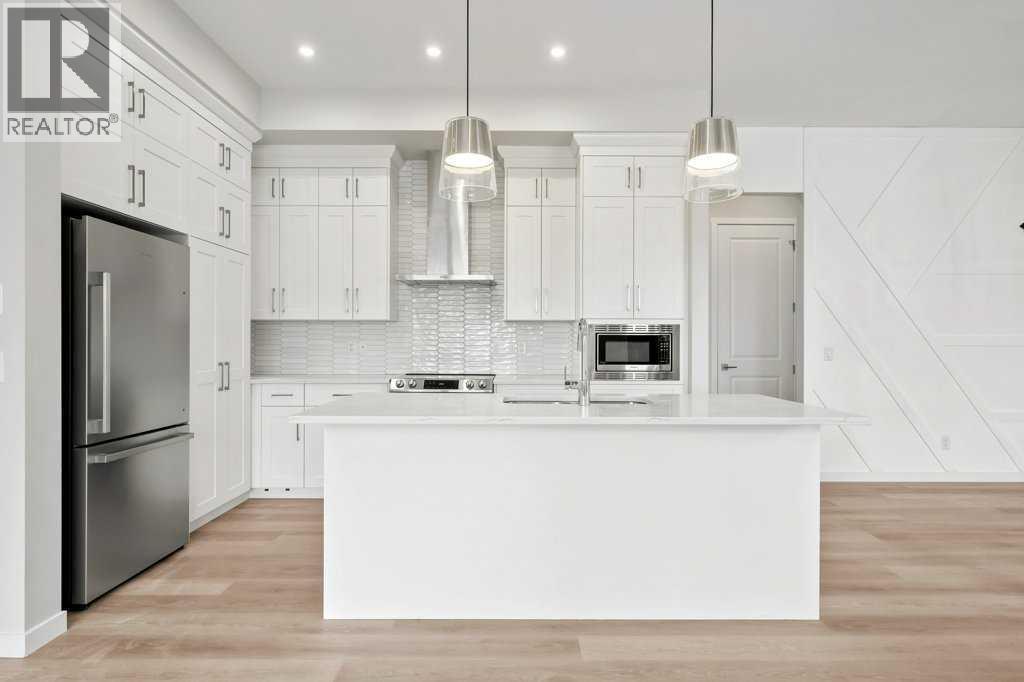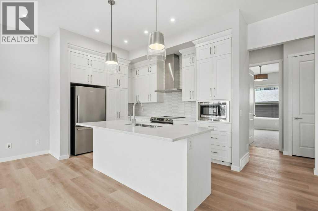 Lakeside living at its finest! Presenting a fully developed bungalow villa with over 1750 square feet of developed space, Gemstone lighting, NO CONDO FEES, located steps to Mahogany's main beach, central park and across from the future historic Ollerenshaw farm. Enter into 10' knock down ceilings, a front lifestyle room with focal gas fireplace, luxury vinyl plank and connects seamlessly to the entertainment size kitchen boasting a plethora of stacked classic white cabinets, quartz counters, built in microwave and soft close mechanics and full stainless steel appliance package Off the kitchen is the family size dining area and access to the fully developed lower level. Convenient main floor laundry with access to the side entry to the private yard and double detached garage. The primary bedroom is set to the back of the plan, quiet and a generous size for all types of furniture placement with your tiled 3 piece en-suite bath designed with storage, quartz counters, and a full size shower. Open rail guides you to the lower level beginning with a media room, 2 added bedrooms a 4 piece tiled bath as well as plenty of storage wrapped in sunshine windows, 9' ceilings and rough in Central air. Experience this awarded winning 4 season community featuring 2 beaches, splash park, tennis, basketball and pickle ball courts, an urban village, parks, playgrounds, 74 acre wetlands, schools, transit, 22km of walking paths, 63 acre lake and year-round activities, both indoors and out. (id:6769