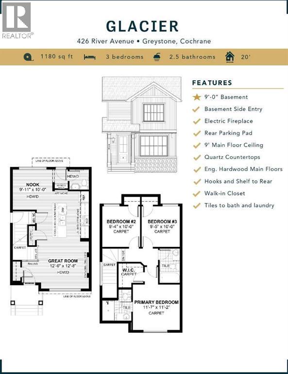 NEW PRICE! IMMEDIATE POSSESSION. BRAND NEW HOME by Douglas Homes, Master Builder in central Greystone, short walking distance to parks, the Bow River, major shopping & interconnected pathway system. Featuring the Glacier with separate side entry on an R-MX zoned home site for POTENTIAL future lower level suite. NOTE: a secondary suite would be subject to approval and permitting by the city/municipality. This gorgeous 3 bedroom, 2 & 1/2 half bath home offers 1180 sq ft of living space. This home is located on a River Avenue which provides immediate access to the interconnective pathway system, perfect for those looking for a outdoor lifestyle. Loads of upgraded, DESIGNER features in this beautiful, open floor plan. The main floor greets you with a grand, glazed 8' front door & side lite, soaring 9' ceilings, oversized windows , & 8' 0" passage doors. Distinctive Engineered Hardwood floors flow through the Foyer, Hall, Great Room, Kitchen & Nook adding a feeling of warmth & style. The Kitchen is completed with an oversized entertainment island & breakfast bar, closet pantry, Quartz Countertops, 42" Cabinet Uppers accented by closed-in, painted bulkhead above, Bank of Pots & Pans Drawers, soft close doors & drawers throughout, new stainless appliance package including Fridge, Microwave/Hood Fan combo over the stove, smooth top electric Range, & built-in Dishwasher. The main floor is completed with an open Great Room & Nook finished with over height windows, full French Door rear entry & 1/2 bath. Great Room is complimented by a Napoleon "Entice" fireplace. Upstairs you'll find a good sized Primary Bedroom with 3 piece Ensuite including undermounted sink & drawer, Quartz vanity, oversized 5'0" x 3'0" shower with tile accented walls & ceramic tile flooring. There is also a nice sized, walk-in closet accessed from the bedroom. The 2nd floor is completed with two additional good sized bedrooms with roomy double door closets. The 2nd & 3rd bedrooms have easy access to th e main the bath with Quartz countertop, undermounted sink with drawer & tile flooring. This is a very popular plan, great for young families, investors or the down sizing crowd. Spacious, Beautiful and Elegant! The perfect place for your perfect home with the Perfect Fit. Call today! Photos are from prior build & are reflective of fit, finish & included features. Note: Front elevation of home & interior photos are for illustration purposes only. Actual elevation style, interior colors/finishes, & upgrades may be different than shown & the Seller is under no obligation to provide them as such. (id:6769