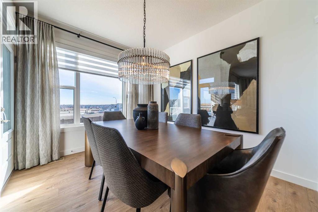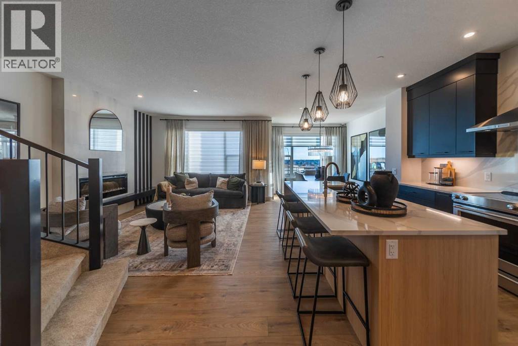 SHOW HOME FOR SALE! The beautiful and thoughtfully designed Robson 24 show home is situated on an oversized conventional pie lot in the desirable community of Livingston and it is now for sale! At nearly 3,000 square feet of space, this home features 3 living areas, 5 bedrooms, 4 bathrooms, and 2 flex spaces - making this the perfect family home and ideal for those wanting a layout designed for multi-generational living. The bright and open main level features an impressive curved staircase that offers a timeless design aesthetic and seamlessly integrates into the design. The expansive kitchen features two-tone cabinetry, a waterfall quartz island and quartz slab backsplash, chimney hood fan, built-in microwave and large pantry. The kitchen overlooks both the living and dining areas - making this the ideal space for entertaining with a wall of windows that flood the main level with natural light all day long. A back entrance leads to the rear deck that overlooks the fully landscaped private backyard. The main level is complete with a bedroom and full bathroom - ideal for those with mobility issues or for multi-generational living. Iron spindle railing leads to the upper level where you're greeted by a central bonus room that separates the primary suite from the secondary bedrooms for added privacy. Vaulted ceilings in the primary bedroom create an open and bright space with an expansive walk-in closet and the 5pc ensuite you've dreamed of! A fully tiled shower with 10mm glass surround, soaker tub with tiled feature wall and dual sinks complete the owner's oasis. Two more bedrooms and a 5pc bathroom with dual sinks and a separate laundry room with built-in cabinetry and quartz countertop complete the upper level. The professionally developed basement has large windows providing natural light and features a large rec room, perfect for a TV area, a flex space that is ideal for children's play area, a home office, bedroom and full bathroom! When purchasing a show home, you don't just get a beautiful home, you get all of the added design touches and upgrades you want including custom window treatments, wallpaper feature walls, central A/C, completed landscaping and more. This brand new home is move-in ready and includes Alberta New Home Warranty - allowing you to purchase with peace of mind. This is your opportunity to purchase a one-of-a-kind home that has been beautifully designed inside and out! (id:6769