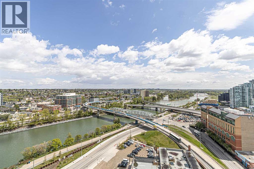 Riverfront Pointe 17th floor sub-penthouse with the largest private roof top terrace in the building, river view and over looking the illuminated Centre Street bridge at night. Million dollar view. Excellent for roof top parties. Make a great executive suite or cooperate accommodation for out of town corporate guests. 2 bedrooms and 2 full bath. Celling to floor windows. Lifestyle choice. Very rare opportunity for this type of unit be available at this price point. Double tandem parking for 2 cars, underground, heated and secure. Reasonable condo fee as you don't pay for the private roof top terrace. Gym and bike storage in the building. Healthy living. Riverwalk, bike path just across the front door. Great investment too (id:6769