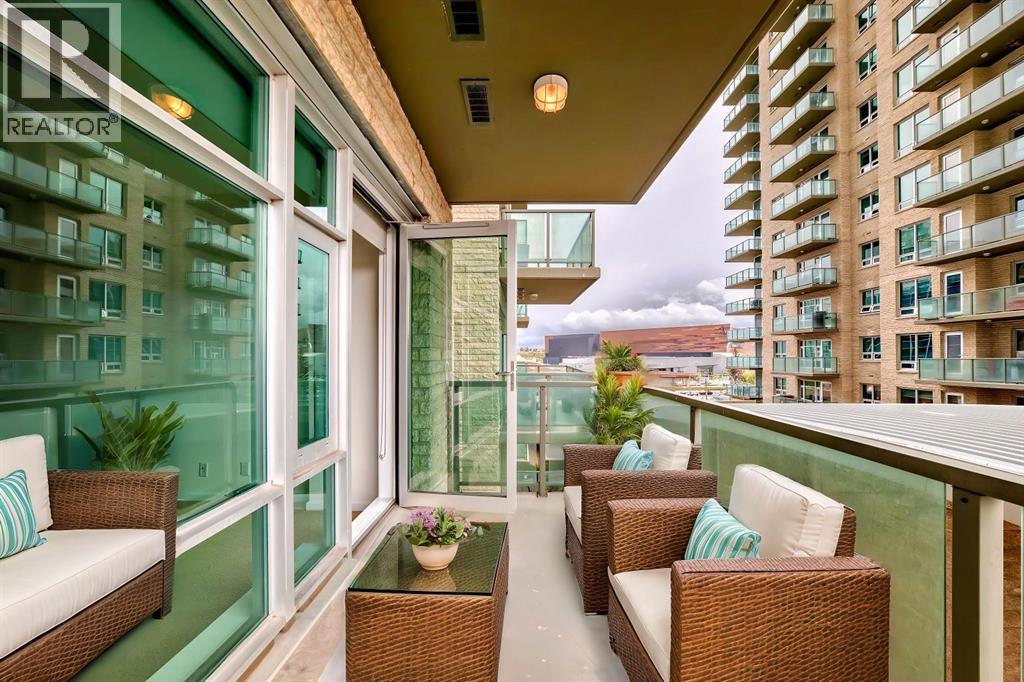 Welcome home to this well-maintained southwest facing one bedroom plus den condo boasting almost 700 square feet of living space nestled in Calgary’s vibrant Beltline district. Sasso is steps away from the Stampede LRT Station and just a short walk to the Stampede Grounds, BMO Centre, Saddledome, Sunterra Market, H-mart and the bustling 17th Avenue SW. Shoppers Drug Mart is conveniently located at the base of the building, while the nearby Bow River pathways, tennis courts, and Theatre District offer ample opportunities for outdoor activities. This condo offers an open-concept layout featuring 9-foot ceilings and floor-to-ceiling windows that flood the space with natural light. Central air conditioning ensures year-round comfort, while the spacious bedroom boasts a walk-through closet leading to a full ensuite bathroom. The kitchen is equipped with ample cabinet storage and a breakfast bar, perfect for casual dining. Adjacent dining and living areas open to a roomy deck with a BBQ gas line, ideal for hosting or simply enjoying the downtown views. Sasso is an 18+ building and offers an amenity-rich lifestyle, including a building concierge, a fully equipped fitness center with cardio and weights, a hot tub, theatre room and a games room with a pool table. This condo has been freshly painted and comes complete with a titled parking stall in the heated underground parkade with visitor parking and an assigned storage locker. Call today for your private showing! (id:6769