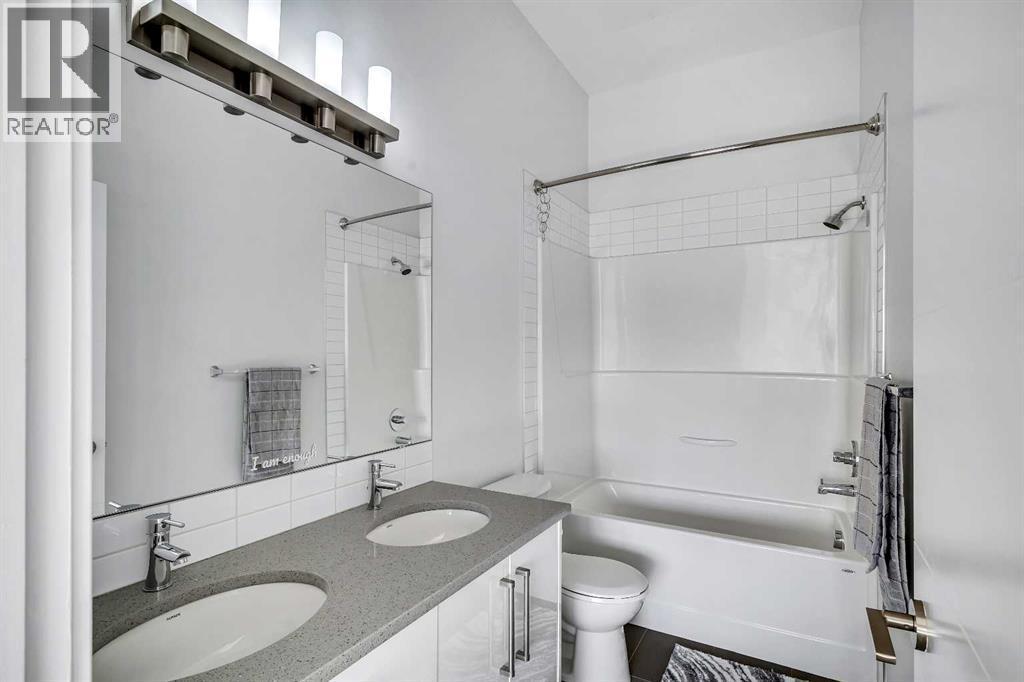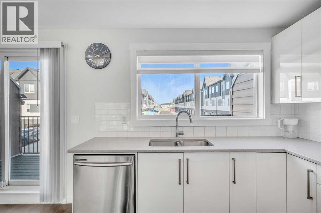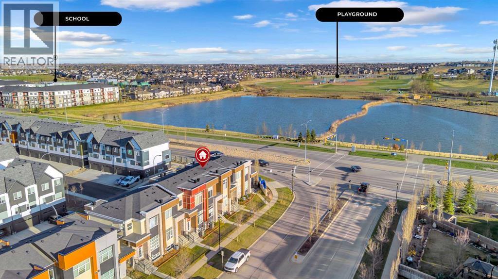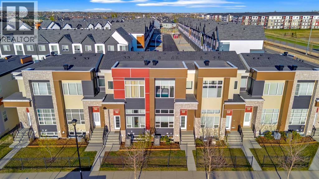 Your Airdrie haven awaits at 404-1530 Bayside Ave SW, a delightful townhouse nestled within the highly desirable Bayside community. Featuring 3 BEDS|2.5 BATHS| DOUBLE ATTACHED GARAGE| AIR CONDITIONER| FENCED FRONT YARD| EXTENDED BALCONY| GLASS RAILINGS| HIGH CEILINGS| OPEN TO ABOVE|, this home offers a wonderful living experience.Step inside to discover a perfectly designed main level, where the living room boasts an impressive open-to-above concept and soaring windows, bathing the space in warm natural light. For those moments of quiet relaxation, an electric fireplace adds a touch of cozy ambiance while you read or watch television.Ascend to the split-level upper floor, thoughtfully designed for all your daily dining needs. The open kitchen, complete with intelligently placed cabinetry offering ample pantry storage, is equipped with sleek stainless steel appliances to inspire your cooking needs. The adjacent dining space provides generous room for hosting large family meals and gatherings.Extend your living space outdoors onto the substantial balcony, enhanced with modern railings and offering a pleasant side view of the lake – a perfect spot to enjoy your afternoon tea with a smile. A convenient powder room completes this level.The upper floor also features a stacked laundry area with a contemporary washer and dryer unit for added convenience. Your primary bedroom serves as a true retreat at the end of the day, boasting an ensuite washroom with double vanity sinks. Two additional well-proportioned bedrooms on this floor can easily accommodate queen-size beds, and a full bathroom caters to the needs of a growing family.Benefit from the convenience of a double attached garage, along with an additional parking pad, providing space for up to four vehicles. The unfinished basement offers exciting potential for customization – envision a home office, a cozy den, or any other space to suit your unique lifestyle.Don't miss the opportunity to truly experience the ch arm of this wonderful townhouse. Book your personal showing today and take the first step towards making 404-1530 Bayside Ave SW your new address.Check 3D tour. (id:6769