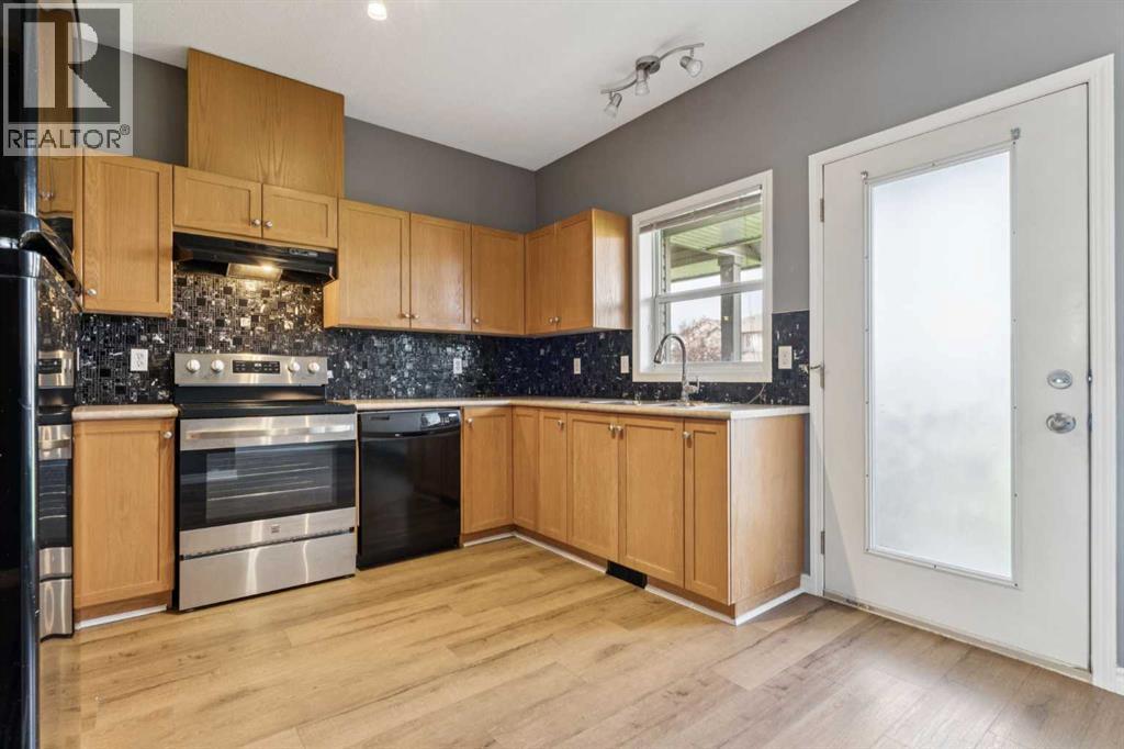 Welcome to #104 2001 Luxstone Blvd SW in Airdrie’s desirable Luxstone community! This well-kept townhouse offers excellent value, with 3 bedrooms, 2.5 bathrooms, and a fully finished basement. The main level features a living room with a bay window, half bathroom, and a kitchen with generous cabinetry. This opens onto a bright dining room, overlooking the backyard and beautiful shared green space. Heading upstairs, you will find a spacious south-facing primary bedroom, two additional bedrooms across the hall, and a convenient centrally located full bathroom.The fully finished basement provides additional living space that would be perfect for a family room, office, guest area, or home gym. In addition, the basement offers an additional room, full bathroom, laundry room, and plenty of storage space. This home features a front porch surrounded by trees as well as a back deck, and a backyard complete with its own private storage shed. Directly out front are two assigned parking stalls. With low condo fees and a prime location near parks, schools, shopping centres, as well as quick highway access, this home delivers unbeatable value, in this vibrant, family-friendly community. Don’t miss your chance to make this beautiful home your own! (id:6769