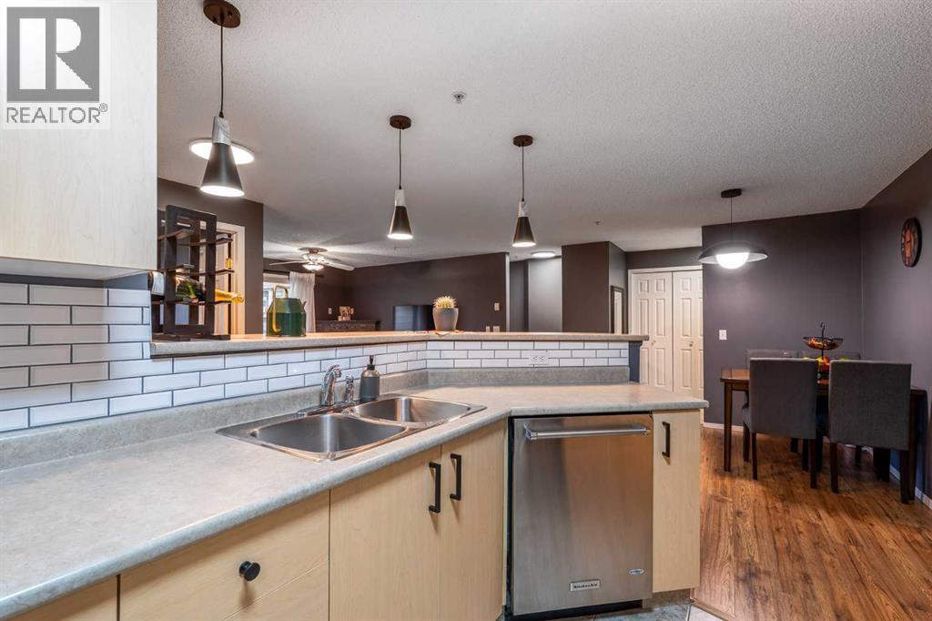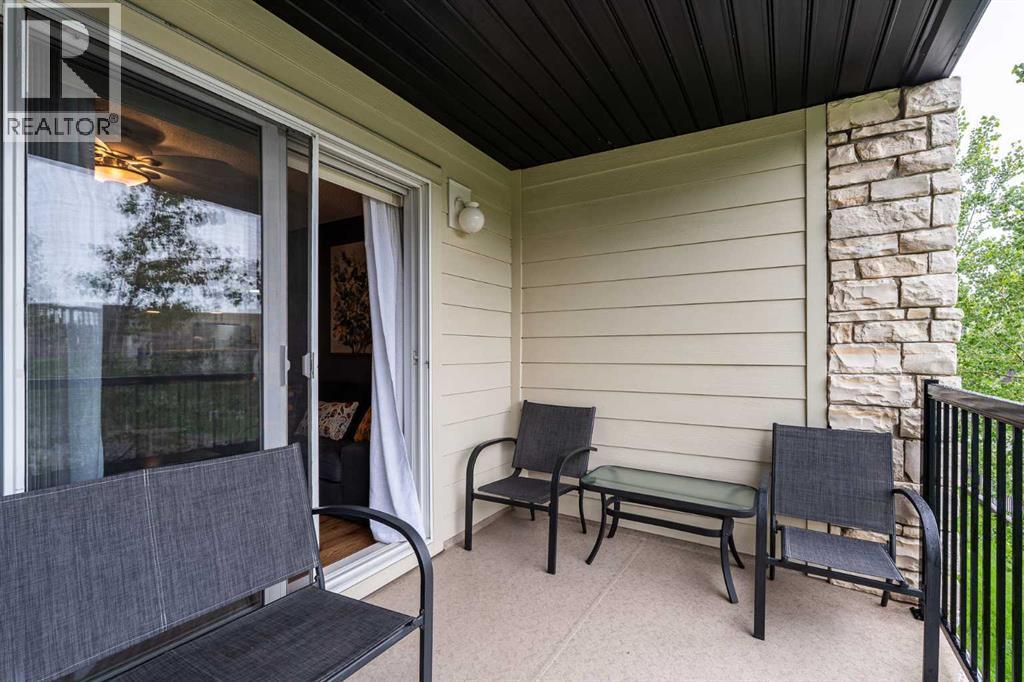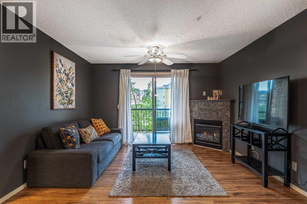Unique chance! Experience the best of Downtown Airdrie living in this exceptional unit! Boasting 1,055 square feet of meticulously renovated space, this 2nd-floor condo offers an incredible opportunity. From the moment you step inside, you'll be captivated by the abundant natural light streaming through the expansive windows, creating an airy, open feel throughout the day. As one of the largest floor-plans in the entire development, this unit provides generous living and dining areas, seamlessly flowing into a stylish, functional kitchen. Home chefs will appreciate the upgraded wood cabinetry, sleek stainless appliances, and a convenient breakfast bar – perfect for entertaining or casual meals. This thoughtfully designed condo features two spacious bedrooms, including a primary suite with a walk-through closet and a private 3-piece ensuite. A second full 4-piece bathroom and a versatile den (ideal for a home office, gym, or quiet retreat) offer ultimate flexibility.The large living room with a gas fireplace leads to the spacious private balcony with gas barbecue hook ups and a fantastic view of the park! Enjoy the comfort of in-suite laundry and storage! The balcony includes a gas hook up for your BBQ and no building behind you for privacy. Adding to the convenience are two parking stalls: one titled, underground and heated, and another surface stall directly in front of the building. Located in a highly sought-after, well-managed complex with ample visitor parking, you'll enjoy quick access to walking paths, schools, shops, public transit, and major routes. This bright, inviting space is truly a must-see! Schedule your private showing today! (id:6769