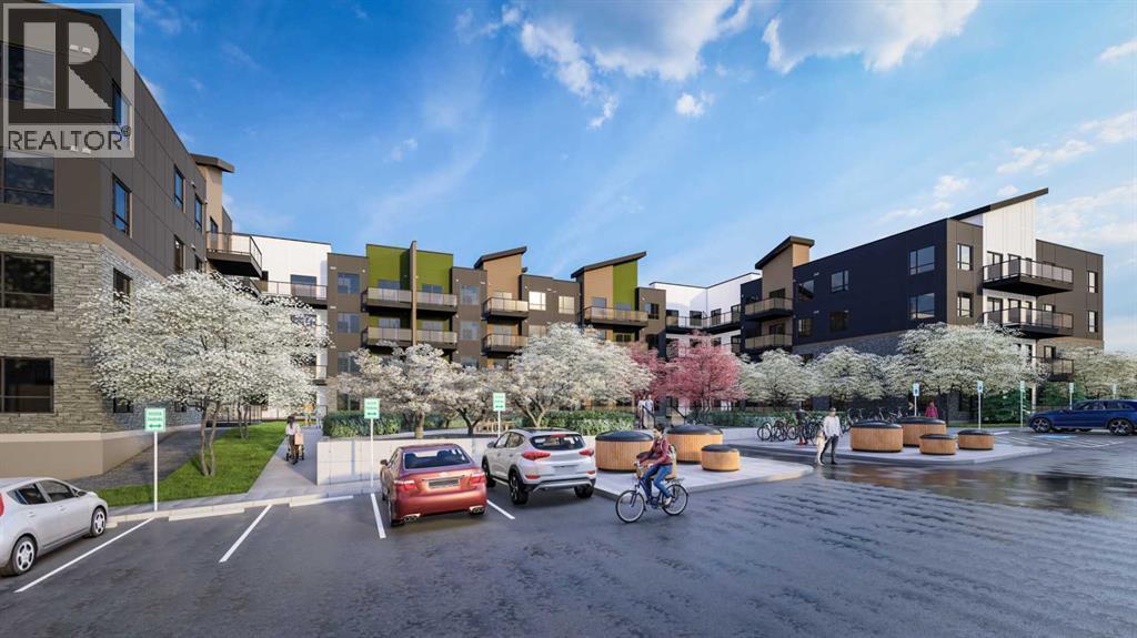 INTRODUCING ALPINE PARK PLACE, IN BEAUTIFUL SOUTHWEST CALGARY. BUILT BY CEDARGLEN LIVING, WINNER OF THE CustomerInsight BUILDER OF CHOICE AWARD, 5 YEARS RUNNING! BRAND NEW "N4" unit with high-spec features. You will feel right at home in this well thought-out, 779.78 RMS sq.ft (833 sq.ft. Builder size). 2 bed, 2 bath home with open plan, 9' ceilings, LVP flooring throughout common areas, carpets in the bedrooms and closets, Low E triple glazed windows, BBQ gas line on the patio, Fresh Air System (ERV), and so much more. The kitchen is spectacular with full height cabinets, quartz counters, undermount sink, rough-in water line to the fridge and S/S appliances. The island is extensive with built in flush breakfast bar, which transitions into the spacious living area, perfect for entertaining. The spacious primary bedroom has a large bright window (triple pane windows), sizeable closet and 4 pc ensuite. Nearby is the second bedroom and 4pc main bath with quartz counters, and undermount sink. The spacious laundry/storage room is a must see (washer & dryer included). Highlights include: Hardie board siding, designer lighting package, sound reducing membrane to reduce sound transmission between floors, clear glass railing to balconies and 1 titled underground parking stall included (storage lockers available for purchase). A once in a lifetime community in Southwest Calgary. PET FRIENDLY COMPLEX, PRE-CONSTRUCTION OPPORTUNITY, PURCHASER CAN CHOOSE SELECTIONS, and PHOTOS ARE OF A DIFFERENT SHOW SUITE FOR REFERENCE ONLY, FINISHING'S/PLAN WILL DIFFER. ESTIMATED COMPLETION RANGE IS JUNE 2026-JUNE 2027. VISIT THE SHOW SUITE TODAY FOR MORE INFO & FALL PROMOTION! (id:6769