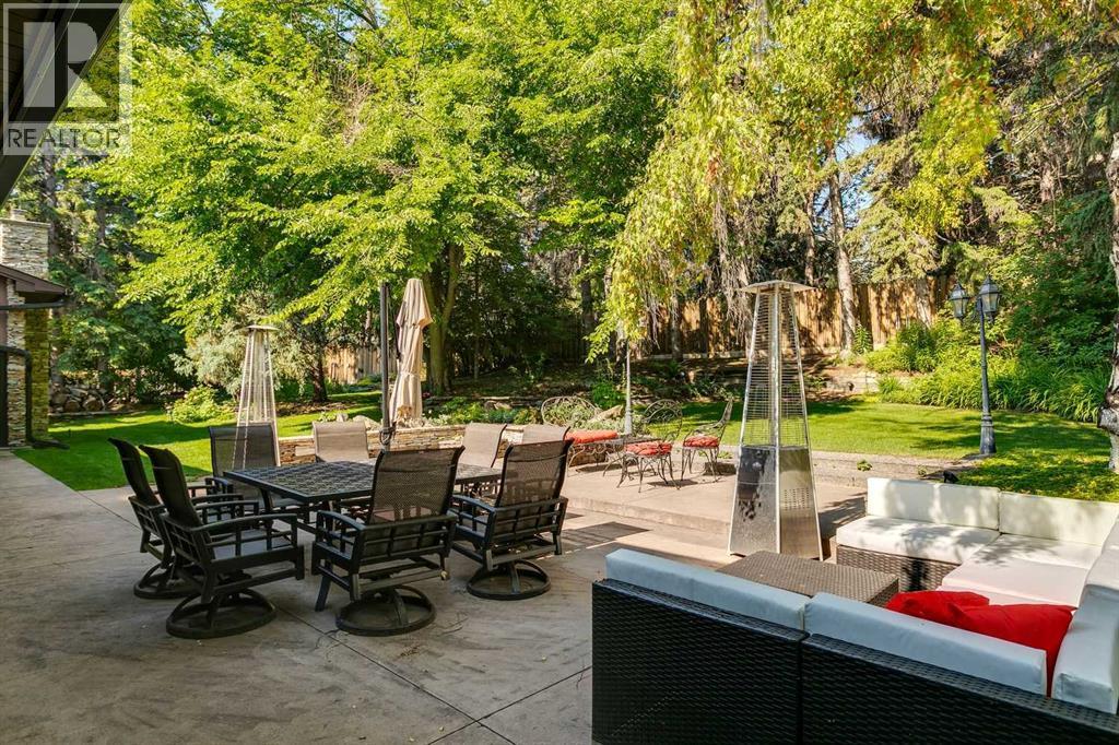 Welcome to the epitome of luxury living in the prestigious community of Eagle Ridge.This exceptional, high-end bungalow rests gracefully on a sprawling double lot, offering an unmatched level of sophistication and elegance. With meticulous attention to detail and no expense spared, this home is a true work of art. As you approach the residence nestled within the curve of the cul-de-sac, the picturesque, park-like setting immediately sets the tone. Step through the hand-chiseled walnut doors into a grand foyer that hints at the splendor beyond. The main rooms are nothing short of magnificent—expansive in scale and exquisite in finish. Rich hardwood with parquet detailing, ledgestone and ornate metal fireplace surrounds, floor-to-ceiling windows framing the lush gardens, and custom recessed lighting all blend seamlessly with smart home technology and advanced security features. At the heart of this extraordinary home lies the chef-inspired kitchen, a perfect balance of function and flair. Designed for the most discerning culinary enthusiast, it features a walk-in cooler, gas cooktop, double ovens, and commercial-grade appliances. Whether hosting an elegant soirée or preparing an intimate dinner, this kitchen delivers both performance and beauty. A variety of inviting spaces allow for relaxation or entertainment: a sun-drenched family room, a sumptuous den complete with hotel-style bar and brass foot rail, a theatre room with 108” screen, and a home gym with shower and sauna. The sleeping quarters are equally impressive. Each of the five generous bedrooms offers the ultimate in comfort and privacy. The primary suite is a sanctuary, featuring a sunken lounge area, cozy fireplace, walk-in closet, and spa-inspired ensuite. Every detail contributes to a sense of calm sophistication. Outside, the meticulously manicured grounds create a private outdoor haven. Stroll along enchanting garden pathways or simply enjoy the serenity of the landscaped oasis that surrounds you—a pe rfect backdrop for entertaining or quiet reflection. Future Development Potential - This extraordinary property sits on two full lots, offering exceptional flexibility for the future. While the existing home is an architectural gem and not a teardown, the unique double-lot configuration provides the rare opportunity to divide the land should one choose to explore redevelopment potential down the road. It’s the best of both worlds: a timeless estate today, and an investment in tomorrow. Located in the exclusive enclave of Eagle Ridge, surrounded by other distinguished residences, this property stands as a symbol of achievement and refined taste. With its extraordinary features, unparalleled craftsmanship, and prestigious setting, it represents a once-in-a-lifetime opportunity to own one of Calgary’s most exceptional homes. (id:6769