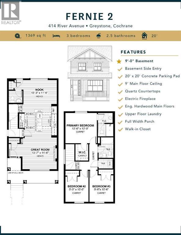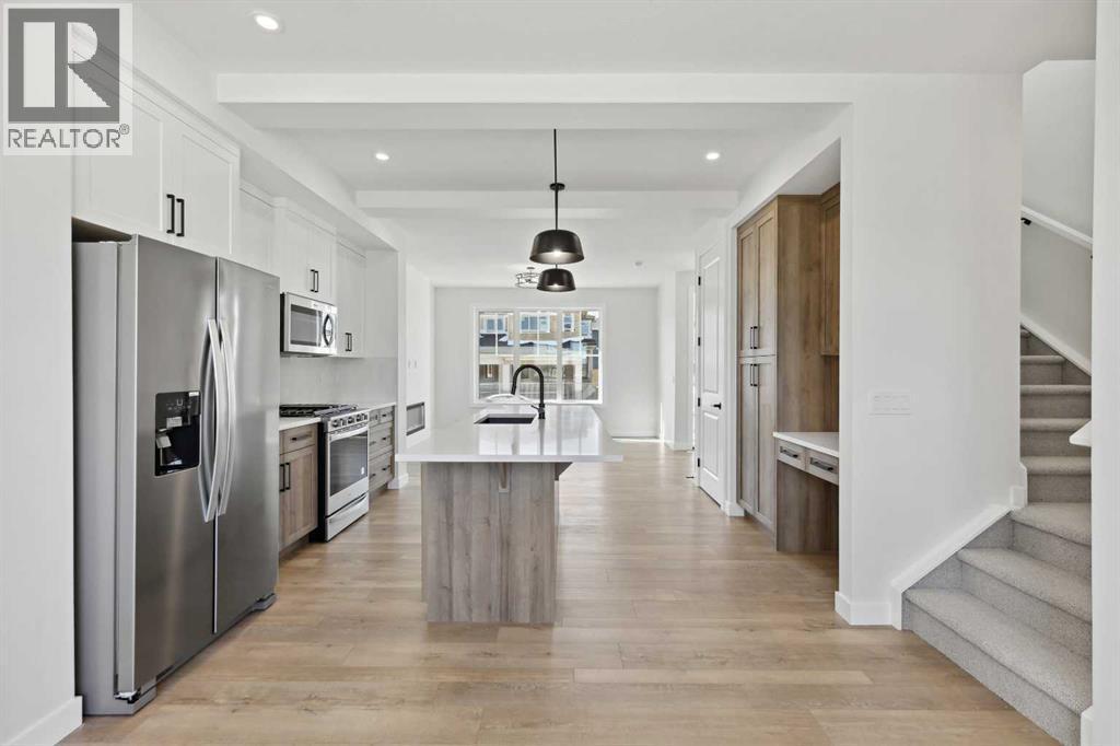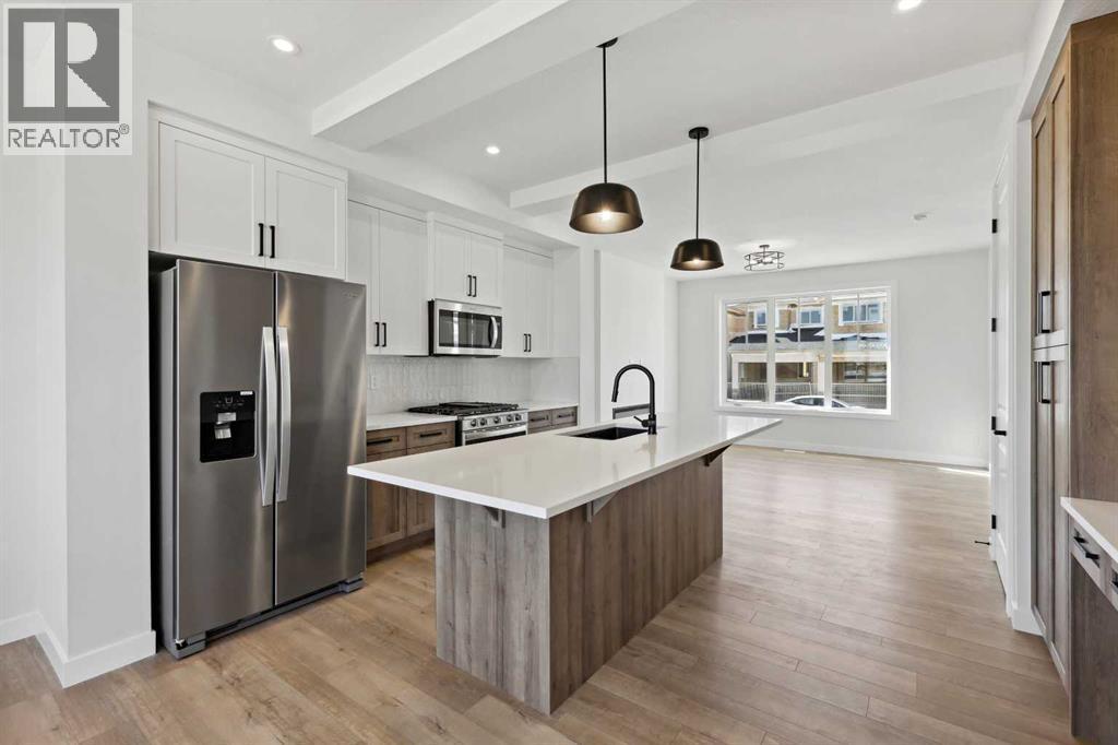NEW PRICE! IMMEDIATE POSSESSION. BRAND NEW HOME by Douglas Homes, Master Builder in central Greystone, short walking distance to parks, the Bow River, major shopping & interconnected pathway system. Featuring the Fernie 2 with separate side entry on an R-MX zoned home site for POTENTIAL future lower level suite. NOTE: a secondary suite would be subject to approval and permitting by the city/municipality. This gorgeous 3 bedroom, 2 & 1/2 half bath home offers over 1360 sq ft of living space. This home is located on a River Avenue which provides immediate access to the interconnective pathway system, perfect for those looking for a outdoor lifestyle. Loads of Designer & upgraded features in this beautiful, open floor plan. The main floor greets you with 8' front door, soaring 9' ceilings, oversized windows, built-in niches & fireplace. Gleaming Hardwood floors flow through the kitchen, hall & nook adding a feeling of warmth & style. The two sided Kitchen is completed with Quartz Countertops, 42" Kitchen Cabinet uppers with decorative enclosed bulkhead, plenty of drawers including Pots & Pan drawers, twin accented beam ceiling detail, soft close doors & drawers, convenient tech space/desk with twin drawers & new stainless steel Kitchen appliance package. Upstairs you'll find a generous Primary Bedroom with Ensuite - Quartz Counter with undermounted sink & drawer, 5' shower with Designer tiled walls, private water closet all completed with ceramic tile flooring & large walk-in closet. The 2nd floor is completed by two good size additional bedrooms, main bath tub/shower combination with tiled walls, Quartz countertop, undermounted sink, drawer & ceramic tile flooring. You will love the convenience of 2nd Floor Laundry completed with ceramic floor tile. This is a very popular plan, great for young families, investors or the down sizers. Spacious, Beautiful and Elegant! The perfect place for your perfect home. Call today! Interior photos are from prior build & are reflec tive of fit, finish & included features. Note: Interior photos are for illustration purposes only. Actual interior colors/finishes, & upgrades may be different than shown & the Seller is under no obligation to provide them as such.Come to the Show Home first located at 500 River Avenue. Showings only during Show Home hours & days. THIS HOME IS UNDER CONSTRUCTION. (id:6769