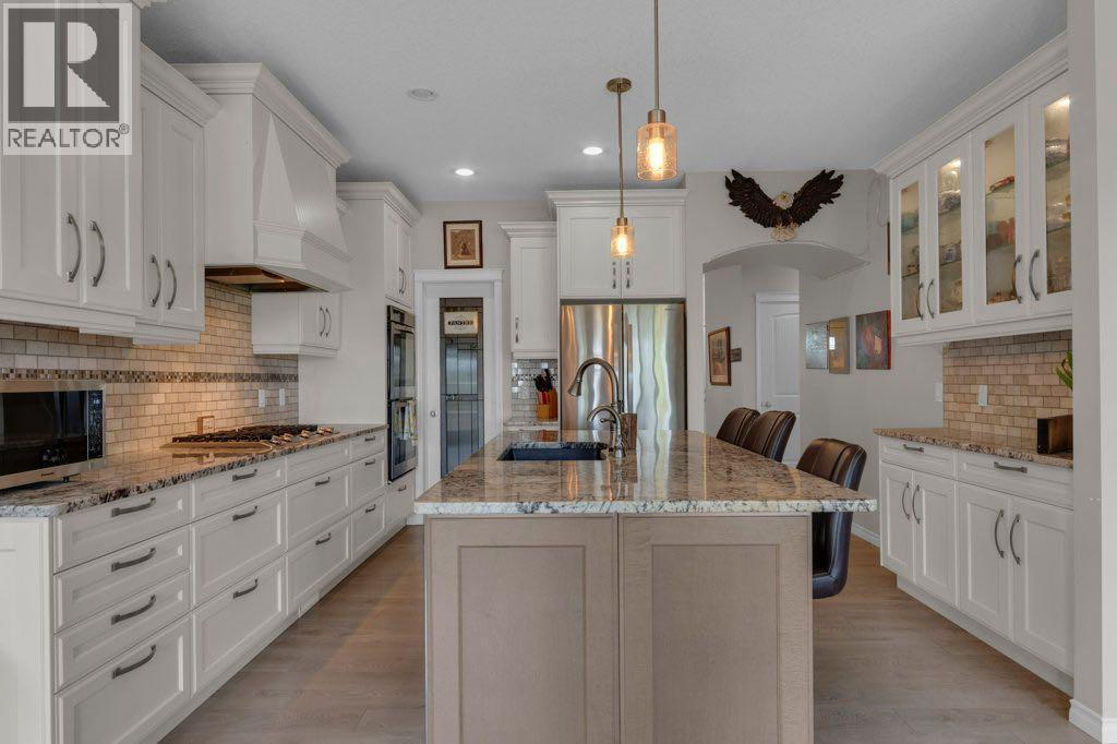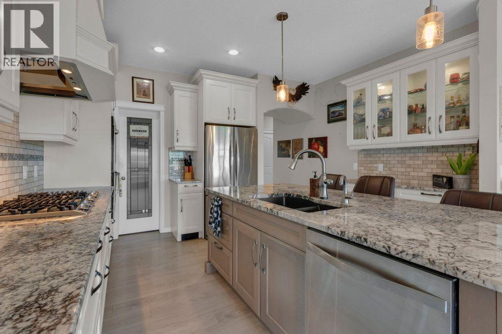 This stunning 4-bedroom bungalow built by McKee Homes showcases quality craftsmanship and thoughtful design, offering over 2,400 sq. ft. of beautifully finished living space backing onto the pond with serene views, walking paths, and easy access to schools and playgrounds. Perfect Family Or Retirement Home.The charming covered front porch welcomes you inside, where you’ll be greeted with 9’ ceilings, engineered hardwood floors, and an abundance of natural light. The open-concept main level features a chef-inspired kitchen with granite counters, stainless steel appliances including a gas stove & double oven, a large island, and a walk-in pantry—perfect for family gatherings. The main floor also hosts a spacious master retreat with a 5-piece ensuite (jet tub, oversized shower, dual sinks, walk-through closet), a second bedroom, and convenient main floor laundry.Downstairs, you’ll find a bright and inviting family room with a gas fireplace, a wet bar, two oversized bedrooms, a full bathroom, and extra comfort with electric baseboard heating. Plenty of storage is available throughout.Step outside and enjoy the fully landscaped, fenced backyard with a deck, patio, two sheds, and lush perennial gardens that bloom beautifully through the seasons—an outdoor oasis overlooking the pond. Additional highlights include R50 attic insulation, triple-pane windows, HRV system, and 50-gallon HWT.Built by McKee Homes, known for their exceptional quality and attention to detail.Don’t miss the opportunity to make this beautiful home yours—schedule your private showing today! (id:6769