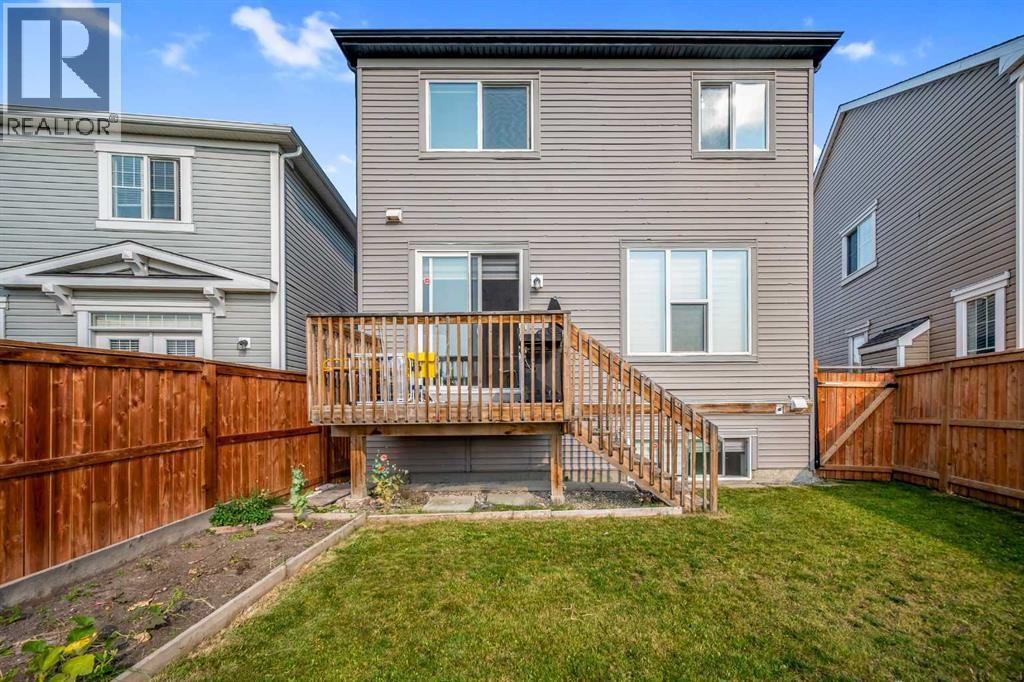 This beautifully maintained 2-storey home with a double attached garage is perfectly situated on a quiet cul-de-sac in the heart of Cityscape NE, backing directly onto a large playground and green space for ultimate privacy and a safe, open area for children to play. The main floor boasts a bright, open-concept layout anchored by a gourmet kitchen featuring a built-in oven, built-in microwave, sleek upgraded appliances, and modern cabinetry, flowing seamlessly into the dining and living areas with direct access to a spacious back deck. Upstairs offers a generous bonus room, a serene primary suite with walk-in closet and ensuite, two additional bedrooms, a full bathroom, and a convenient laundry room. The fully developed basement includes a recreation area, second kitchen, additional bedroom, and full bathroom—ideal for extended family or guests. With a front balcony for morning coffee, a backyard perfect for entertaining and quick access to Country Hills Drive, Metis Trail, and nearby amenities, this home delivers the perfect blend of style, comfort, and location. (id:6769