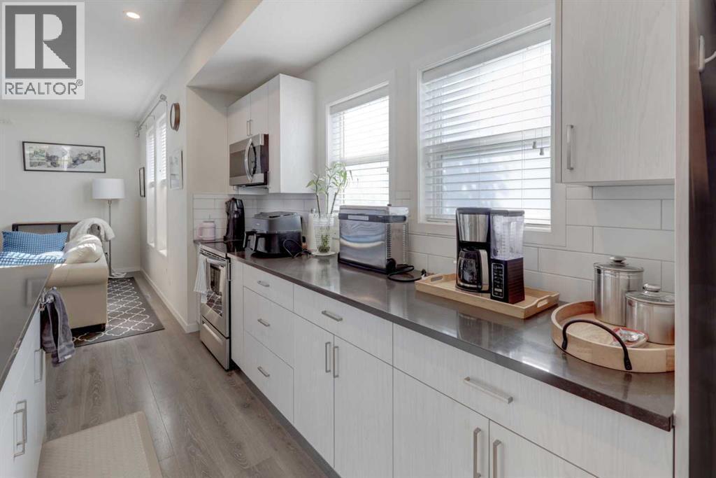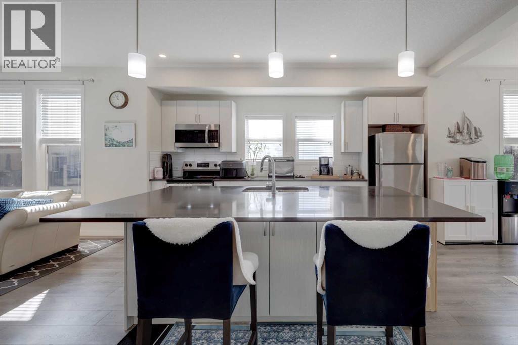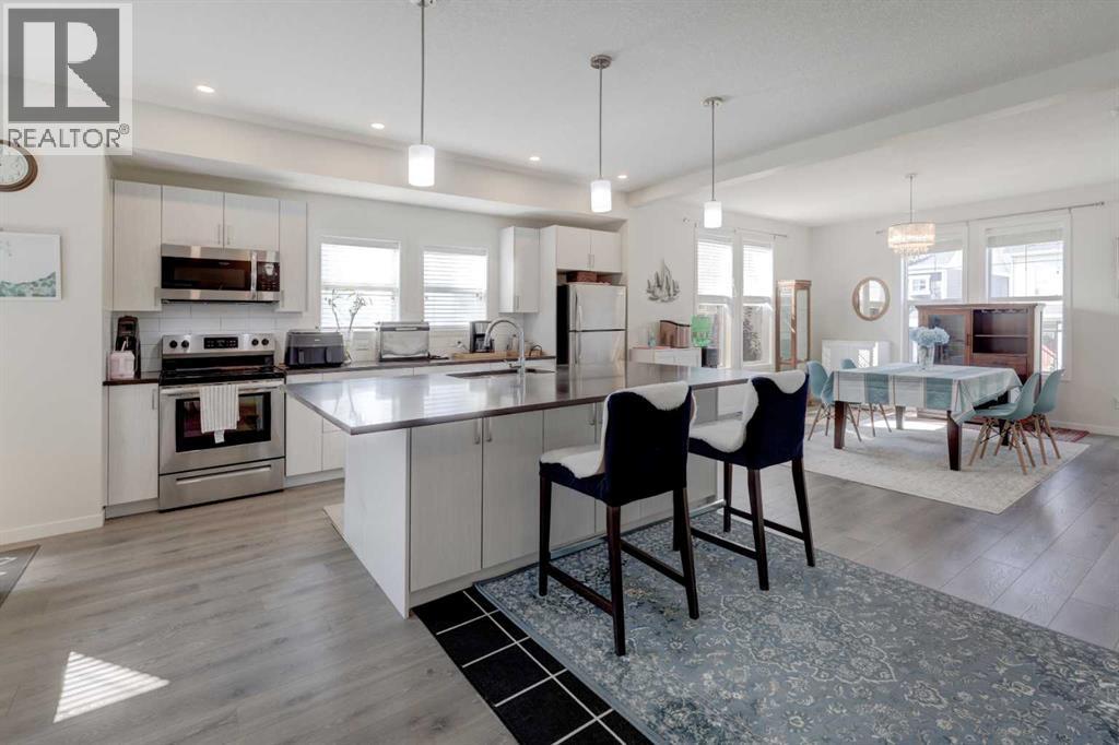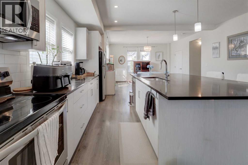 EXCEPTIONAL END UNIT in Airdrie's sought after community of South Point. This stunning 3-level townhouse offers over 2000 sq. ft. of contemporary living with a floorplan designed for both comfort and functionality. The main level features a spacious flex room, perfect for a home office, gym or rec room. Upstairs, the heart of the home is a chef inspired kitchen, showcasing a large island, quartz countertops, and plenty of cabinetry to meet all your storage needs. The open- concept layout flows seamlessly into the dining room and living areas, ideal for entertaining. The primary bedroom is a private retreat with dual sinks in the spa-like ensuite. Laundry is conveniently located on the upper level, making daily living effortless. Situated in an amenity-rich neighbourhood, this home is close to schools and everyday essentials-providing the perfect balance of lifestyle and location. (id:6769