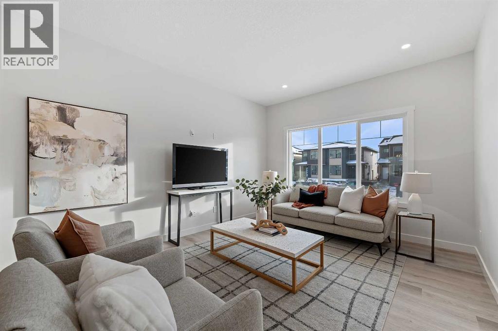 Welcome to 344 Fireside Drive in the family-friendly community of Fireside, Cochrane. This thoughtfully designed two-story duplex offers bright open-concept living and modern finishes throughout. The main floor features 9’ ceilings, luxury vinyl plank flooring, and a spacious kitchen with quartz countertops, full-height cabinetry, stainless steel appliances, a built-in microwave, and a large island with seating and ample storage. The living room is located at the front of the home with large windows that bring in natural light, creating a welcoming space for everyday living and entertaining. A half bath and stylish entryway complete this level.Upstairs offers three bedrooms, two full bathrooms and a convenient laundry space. The primary suite includes a walk-in closet and a private ensuite with a double vanity. Two additional bedrooms and a full bath provide space for family or guests, and a hallway linen closet adds extra storage.The basement includes rough-ins and plenty of open space. This home also features a side entry, 9’ foundation, upgraded railing, a gas line to the kitchen range and a gas line for BBQ.Exterior details include a Craftsman-inspired elevation with stone accents, a concrete front landing and a double parking pad out back. Fireside is a vibrant community with two schools, extensive parks and pathways, and local shops and services. It also offers quick access to the Rocky Mountains, downtown Cochrane and an easy commute into Calgary. Area size was calculated by applying the RMS to the blueprints provided by the builder. (id:6769