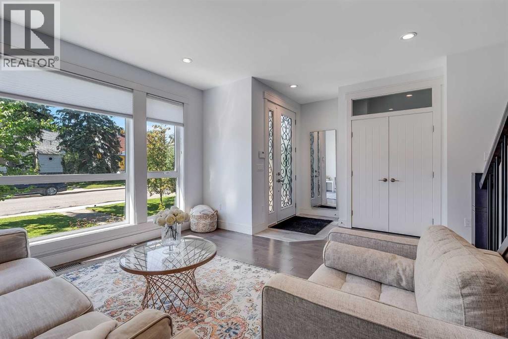Welcome to this modern home in Mount Pleasant, just steps from Confederation Park and minutes to DOWNTOWN, U of C, and SAIT. With OVER 2,800 SQ. FT. of beautifully designed living space, this property blends style, comfort, and functionality.The main level is bright and open, showcasing WIDE PLANK HARDWOOD floors, a dramatic OPEN-RISER STAIRCASE, and a stone-accented fireplace. The chef’s kitchen is equipped with sleek cabinetry, QUARTZ counters, a 6-burner GAS COOKTOP, built-in wall oven, and a large island with wine storage, perfect for everyday living and entertaining.Upstairs, the VAULTED primary retreat offers a PRIVATE BALCONY, custom walk-in closet, and SPA-INSPIRED ENSUITE with dual vanities, a JETTED TUB, oversized rain shower, and skylights. Two additional bedrooms share a full bath, while an OPEN DEN WITH CUSTOM BUILT-IN CABINETRY creates an ideal home office or study space. A convenient LAUNDRY ROOM WITH SINK completes this level.The FULLY DEVELOPED BASEMENT extends your living space with a second fireplace, BUILT-IN MEDIA SHELVING, a WET BAR with beverage fridge, a fourth bedroom, and a luxurious STEAM SHOWER.Outside, the sunny, LANDSCAPED BACKYARD offers the best of inner-city living with enough outdoor space to relax, entertain, and garden, a rare combination of privacy and space so close to it all. The detached DOUBLE GARAGE is insulated and drywalled, while CENTRAL AIR CONDITIONING ensures year-round comfort.This coveted location provides access to TOP SCHOOLS, the winter club, golf, shops, cafes, and an easy commute to DOWNTOWN. Do not miss your chance to enjoy the perfect balance of high-end design and everyday practicality. Book your private showing today. (id:6769