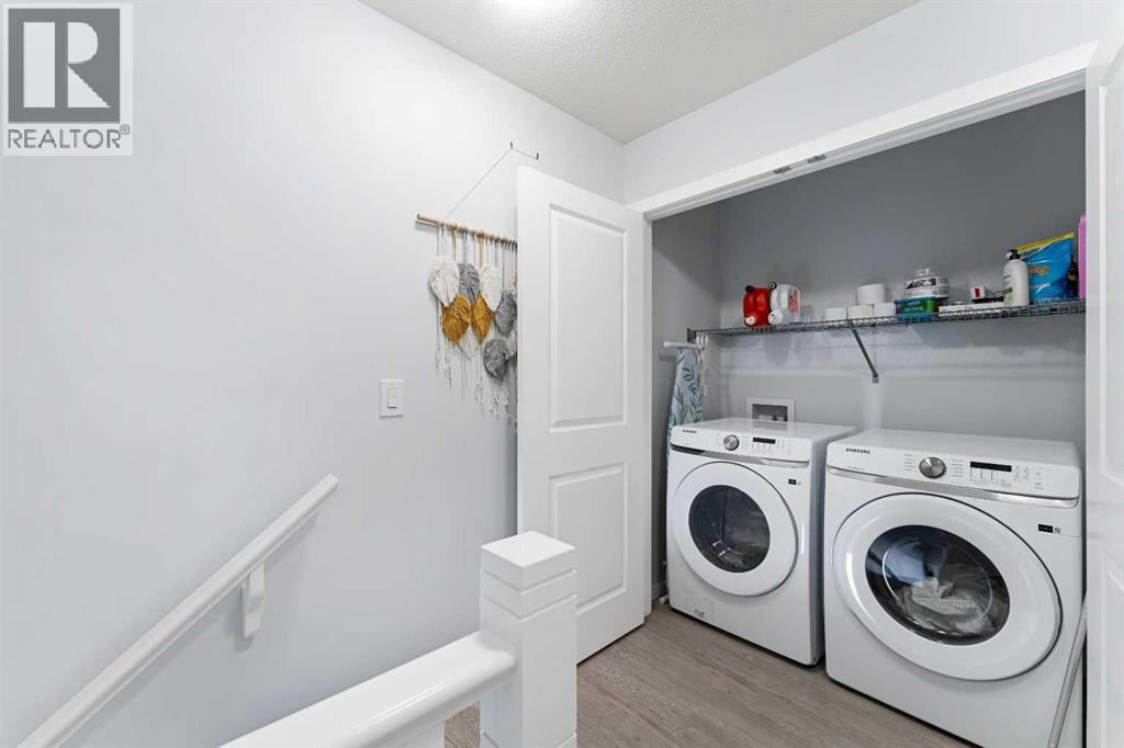 NO CONDO FEES - PLENTY OF UPGRADES FROM BUILDER STAGE - FULL HEIGHT CABINETS IN KITCHEN - 10MM GLASS SURROUND SHOWER IN PRIMARY SUITE - AIR CONDITIONING - STEPS FROM BRAND NEW SCHOOL AND TOT LOT. Welcome to the home you've been dreaming of! This stunning, custom-designed 2-story townhome is perfectly situated kitty corner from a brand-new school currently being constructed and taking applications soon, just a stone’s throw from Osborne Park and surrounded by everything you need in one of Airdrie’s most coveted family-friendly neighborhoods. Picture yourself sipping coffee on your covered front veranda, watching your kids stroll to school. Step inside to an open-concept layout flooded with natural light, sleek premium vinyl plank floors, and a stunning upgraded lighting package throughout. The kitchen is a chef’s dream with stainless steel appliances, pot lighting, full-height cabinetry, a large pantry with an embossed glass door, and a massive island—perfect for meal prep or gathering with friends. The living room invites you to relax and unwind while you enjoy your air conditioning on those hot days, with a cozy vibe that’s perfect for family nights. Off the living room, you’ll find a convenient 2-piece powder room and access to your oversized double garage, which is ideal for winter parking or your dream workshop. Upstairs, retreat to the spacious primary bedroom with peaceful neighborhood views, a walk-in closet, and a private en-suite featuring a gorgeous floor-to-ceiling tiled glass shower and quartz countertops. Two more generously sized bedrooms and another upgraded 4-piece bathroom give you endless options for family or home office space. Plus, the laundry room is conveniently located upstairs, and your rear-facing deck is the perfect spot to catch some fresh air. The basement is a blank slate with a bathroom rough-in and large window—ready for you to add your personal touch, whether that’s a gym, home office, or more living space. With all these incredible upgrades and an unbeatable location, this home won’t last long. Book your private viewing today! (id:6769