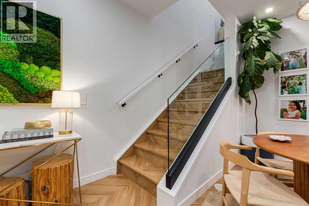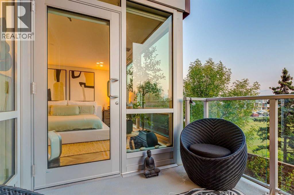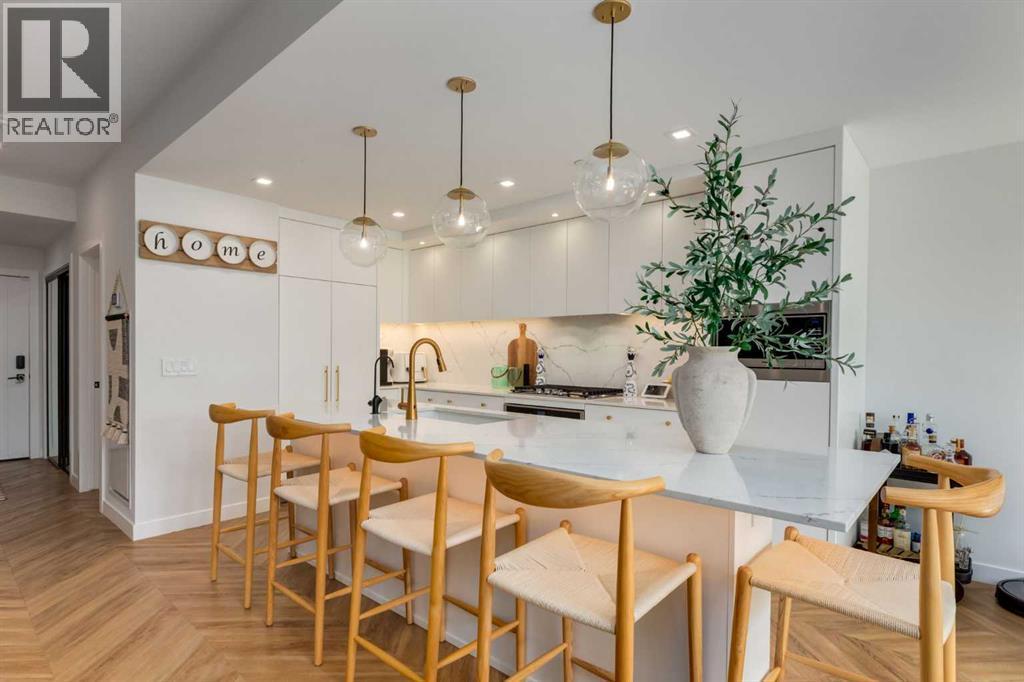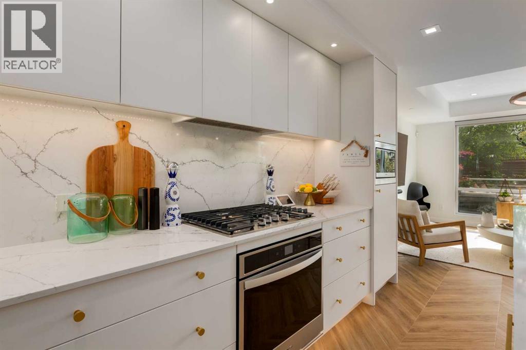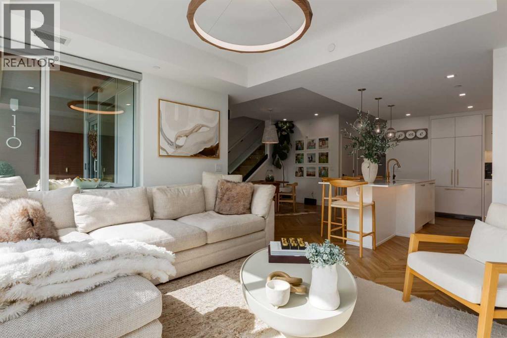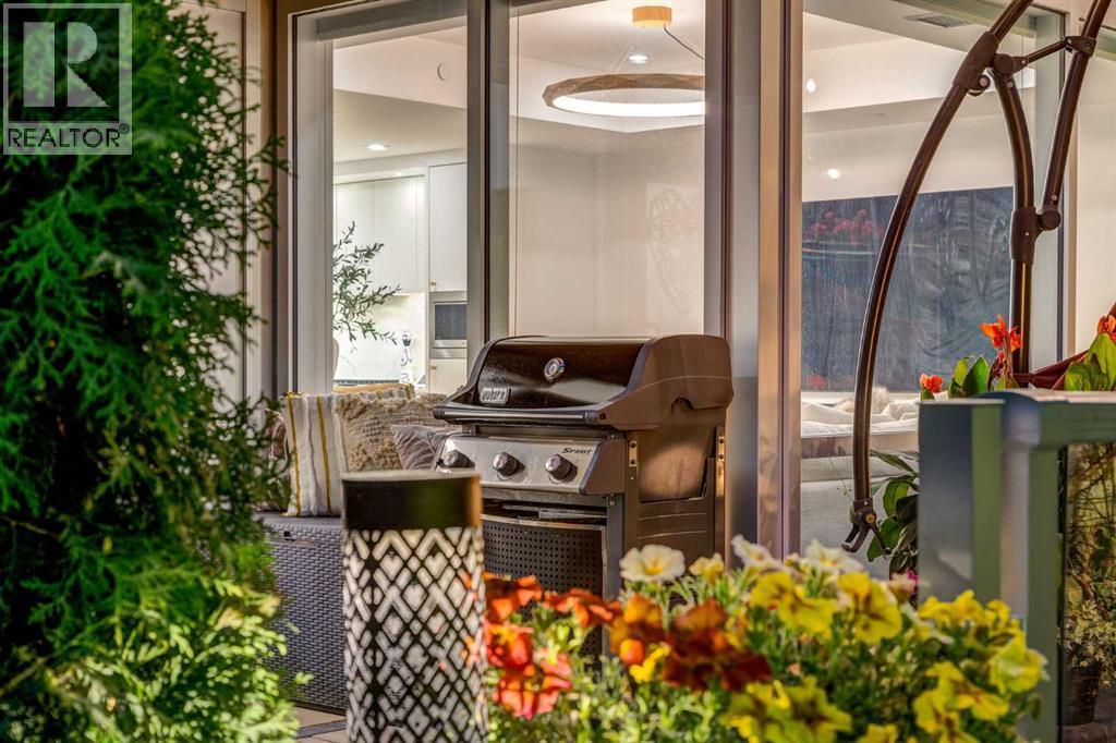 Experience luxury living in a sophisticated THREE BEDROOM Brownstone residence with over 2000 SF of interior living space and over 500SF of outdoor garden terrace space. Designed with both privacy and entertaining in mind, the home boasts upper-level south-facing bedrooms with large mature trees set behind, a dedicated gym area, a south-facing patio with room for an outdoor living room and an upper level deck, perfect for relaxation or gatherings. The chef-inspired kitchen is a true centerpiece, featuring Supermatte slate white cabinetry with brushed-gold hardware, a high-end gas cooktop and wall oven, an integrated 36" Fisher & Paykel fridge, integrated dishwasher, soft-close drawers, under-cabinet lighting, and stunning quartz countertops and backsplash. The dining room is open to the kitchen and cozy living room area. The interior design is spectacular featuring a Nordic-inspired floating fireplace, Chevron flooring, a bespoke granite waterwall feature, and designer lighting. A spacious walk-in pantry ensures ample storage for all your culinary needs. Modern upgrades include Japanese-style toilets, high-flow rain shower heads, and under-cabinet lighting throughout the kitchen and bathrooms, bringing contemporary elegance to every space. Sunlight fills the home through large windows, complemented by roller shades for privacy. Additional features include a full-size washer and dryer, custom built-in cabinetry, and a patio gas line for effortless outdoor cooking. This exceptional home includes two titled parking stalls in a heated, secured underground parkade, offering convenience and peace of mind. Located just steps from the award-winning eight-acre Radio Park, residents can enjoy a vibrant lakeside destination complete with fountains, boardwalks, scenic overlooks, dog parks, an amphitheatre and lush landscaping. The park is designed to offer year-round activities including a performance venue, winter ice rink, and dining experiences. Residents also benefit from a rooftop patio on the 8th floor, a second floor private owner’s lounge, underground visitor parking, bike storage, EV charging stations, and concierge services. The West District community continues to expand with retail shops, pedestrian-friendly sidewalks, bike paths, a central park, outdoor amphitheater, skatepark, seasonal markets, a transit hub, supermarket, and sports courts. Ideally situated, the home is just 15 minutes to downtown Calgary, one hour to the mountains, and 5 minutes to Winsport Canada Olympic Park, offering an unbeatable combination of lifestyle and convenience. (id:6769