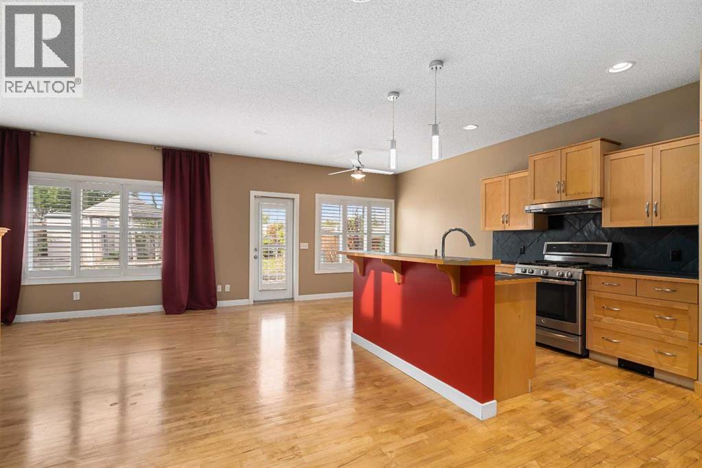 Discover this impeccably cared-for detached residence nestled in the desirable neighbourhood of New Brighton. Offering plenty of space and flexibility, this home features 4 bedrooms and 3.5 bathrooms, making it ideal for families of all sizes or those needing room for guests or extended family.As you enter, you'll be greeted by a welcoming main floor that showcases rich hardwood flooring, a carpeted front flex room perfect for a study or home office, and a handy guest bathroom. The kitchen is both stylish and practical, outfitted with stainless steel appliances and seamlessly connected to the open-concept living area, where a fireplace creates a cozy atmosphere for unwinding or hosting friends.Upstairs, you’ll find three well-sized bedrooms, including a tranquil primary suite with a walk-in closet and a spa-inspired ensuite bathroom. A second full bathroom provides comfort and convenience for the remaining bedrooms.The fully finished basement expands your living space, featuring a large rec room with a custom-built entertainment center, included AV setup, and integrated speaker wiring — a dream setup for movie lovers or game nights. You'll also find a fourth bedroom, another full bathroom, and a laundry room equipped with a brand-new washer and dryer.Other updates and upgrades include a central vacuum system and a recently replaced hot water tank. Step outside to a private, landscaped backyard complete with a spacious deck, stone patio, pergola, and a storage shed — a perfect space to enjoy Calgary’s beautiful summers.This home truly offers a blend of comfort, style, and practicality — all in a welcoming, family-oriented community. An excellent opportunity you won’t want to miss! (id:6769
