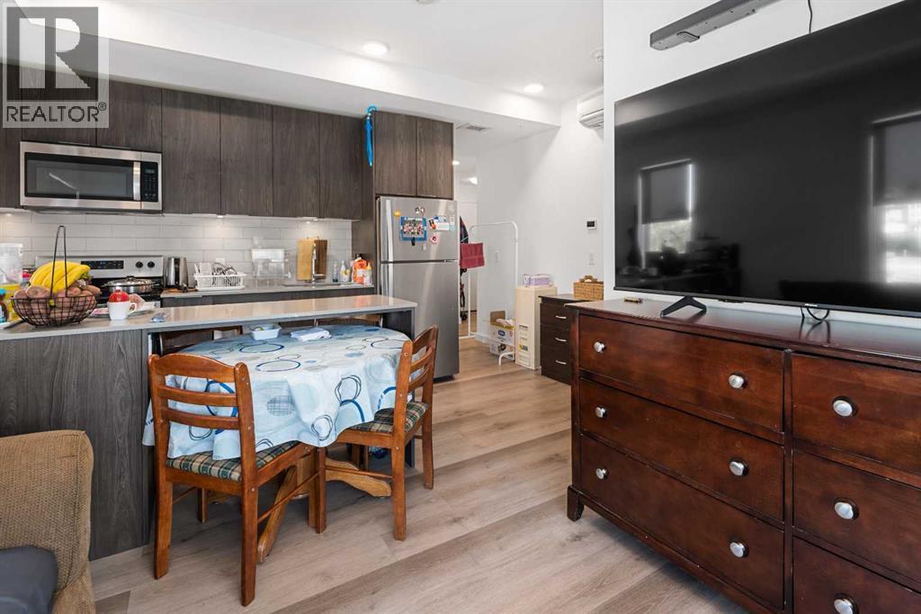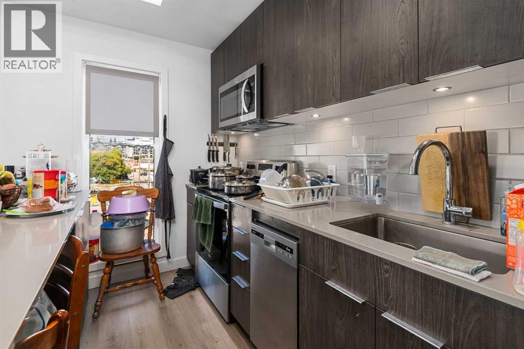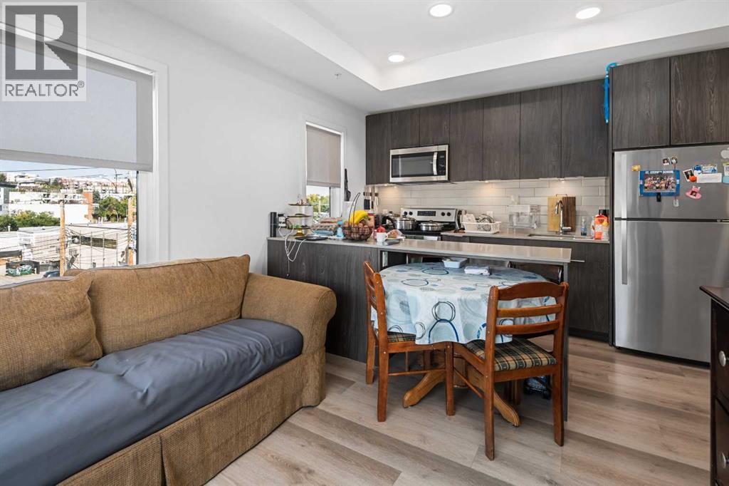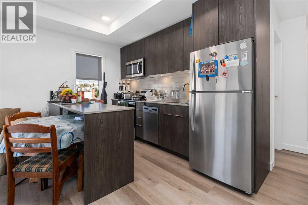 This stunning top-floor Northwest corner condo in the sought-after Era building offers 640 sq. ft. of stylish living with 2 bedrooms, 2 bathrooms, and sweeping downtown views. Flooded with afternoon light, it’s an ideal space for contemporary urban living in the heart of Bridgeland. The bright, open layout seamlessly connects the kitchen, dining, and living areas, creating a space that’s perfect for entertaining or enjoying a cozy night in. Large windows frame the skyline and fill the home with natural light, enhancing its airy feel. The kitchen blends style and function with sleek quartz countertops, stainless steel appliances, ample cabinetry, and a versatile island that provides extra prep space and casual seating. Whether you’re hosting or grabbing a quick bite, this kitchen delivers. Both bedrooms are generously sized for comfort and flexibility. The primary retreat features a private ensuite with modern fixtures, while the second bedroom can serve as a guest room, home office, or additional living space. The second full bathroom is equally well appointed with contemporary finishes and quality details. Residents of Era enjoy premium amenities including a rooftop terrace with skyline views, secure underground parking, and a pet-friendly environment. Located in the vibrant community of Bridgeland, this home offers unmatched walkability. Step outside to find trendy cafés, acclaimed restaurants, boutique shops, and the Bow River pathway system. Downtown Calgary is just minutes away, making this location as convenient as it is exciting. Whether you’re looking for a sun-filled urban home or a smart investment in one of Calgary’s most desirable neighbourhoods, this condo offers the perfect balance of comfort, design, and location. Don’t miss your chance to make it yours. (id:6769