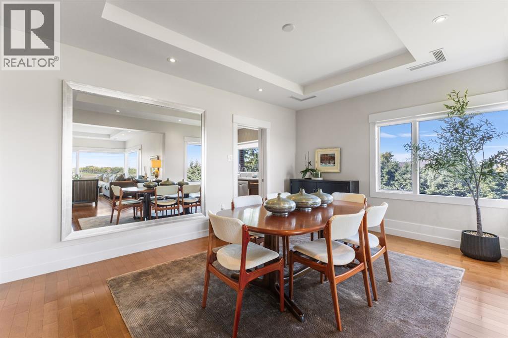 Enjoy unrivalled panoramic mountain & reservoir views from this expansive 2-bedroom plus den, 2-bath condo, offering over 2,000 sq. ft. of thoughtfully designed living space in an intimate 10-unit building in coveted Eagle Ridge! This spacious & airy home features hardwood floors & an abundance of natural light, highlighting the living room’s triple-pane picture windows, tray ceiling & feature fireplace. The living room seamlessly connects to the dining area that provides ample space for family gatherings or elegant dinner parties. Just steps away, the well-appointed kitchen boasts granite countertops, ample storage, stainless steel appliances, & cozy breakfast nook. A walk-in laundry area with countertop space adds convenience. A private den/family room with balcony access is tucked away just off the living room—an ideal work-from-home space with more breathtaking reservoir views. The primary retreat features a walk-in closet & luxurious 5-piece ensuite with dual sinks, separate vanity, tranquil soaker tub & walk-in shower. A generously sized second bedroom and 3-piece bath provide comfortable accommodations for guests. Additional highlights include a custom-made unit entry door, TWO UNDERGROUND PARKING STALLS, an assigned storage room, self-contained guest suite & an ultra-convenient elevator that takes you directly to your front door. The prime location can’t be beat with Heritage Park & Glenmore Reservoir pathways minutes away, plus amenities such as shopping at Glenmore Landing, schools, public transit & Rockyview Hospital. Enjoy easy access to 14th St, Heritage Drive & Glenmore Trail. (id:6769