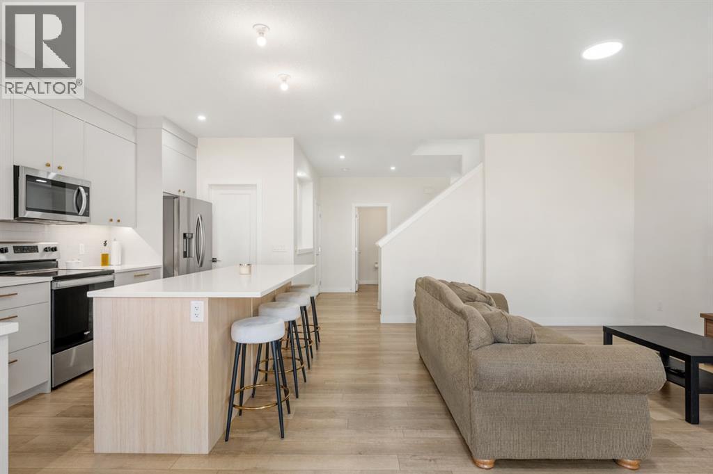 Welcome to this spacious and modern home located in the highly sought after NW community of Carrington. Boasting over 2,000sqft of developed living space, this home is designed for modern living with a smart, functional layout and impressive upgrades throughout. From the moment you enter, you’re welcomed by a bright foyer area that opens up into a bright and inviting open concept layout main floor with vinyl plank flooring throughout.The show stopping kitchen is complete with an oversized island, sleek stainless steel appliances, endless cabinets & counter space, under cabinet lighting, and a walk-through pantry perfect for keeping life organized. The kitchen flows into your spacious living and dining area, creating the ultimate hub for entertaining and family gatherings. Off to the side of the dining room is a door that leads you to your fully fenced backyard. Upstairs, the central bonus room steals the spotlight—an ideal space for movie nights, playtime, or relaxation while creating a natural separation between the primary retreat and the two additional bedrooms. The primary suite is a true retreat featuring a spa like 4 piece ensuite with a soaker tub, glass shower, and walk-in closet. Two more generous sized bedrooms, a 4 piece bath, and convenient upper floor laundry complete this level. The unfinished basement offers incredible potential with a separate side entrance, bathroom rough-in, and open layout ready for your future development—whether it’s a home gym, rec room, bedroom and additional living space. Located just steps from scenic ponds, walking paths, parks, and everyday amenities, with quick access to major routes for an easy commute—this home perfectly blends comfort, style, and convenience. Move in and start enjoying Carrington right away! (id:6769