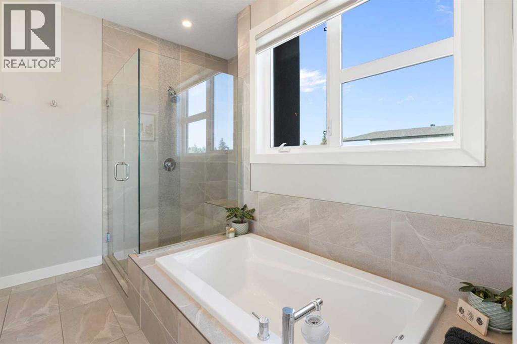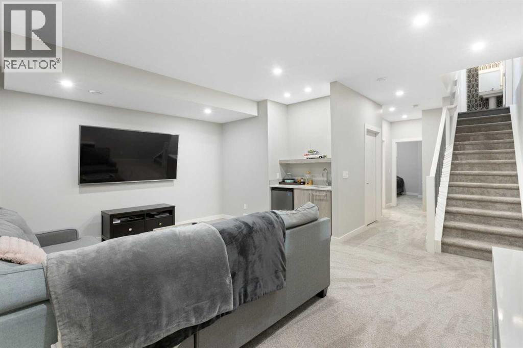 Nestled on an extra-wide, quiet street in the heart of Bowness, this semi-detached family home offers a sanctuary of modern luxury and thoughtful design. As you approach, its contemporary facade hints at the elegance within, a perfect blend of style and functionality. Step inside and be greeted by an open, airy main floor bathed in natural light from expansive west-facing windows. Wide-plank luxury vinyl flooring guides you through a seamless, open-concept layout, where every detail has been meticulously crafted. The gourmet kitchen is the true heart of the home, designed for both culinary artistry and casual gatherings. A stunning, oversized center island with chic pendant lighting and seating for five beckons you, while gorgeous quartz countertops and abundant cabinetry provide an effortless and elegant workspace. The dining area, illuminated by designer lighting, flows effortlessly into the inviting living room, where custom built-ins provide storage and a sophisticated focal point, drawing your eye to the cozy gas fireplace with its elegant wood mantle. Tucked away discreetly is a convenient two-piece powder room for guests, and a dedicated rear mudroom with built-in storage. The journey continues upstairs to a private haven. The generous primary suite is a true retreat, featuring a spacious walk-in closet and a five-piece ensuite that feels like a personal spa. Indulge in the soothing soaker tub or the separate glass-enclosed walk-in shower with a bench, all complemented by dual vanities. Two additional well-sized bedrooms, each with a closet, share a five-piece bathroom with dual vanities. For ultimate convenience, the upper-level laundry room is a dream, complete with ample storage, a sink, and hanging racks. The fully finished basement adds even more living space, with high ceilings that create an open and welcoming feel. Here, you’ll find a spacious family room with a wet bar, perfect for movie nights or entertaining. A fourth bedroom with a walk-in closet and a full four-piece bathroom provide ideal space for guests or a growing family, with an additional storage/utility room. Step outside to your sunny, southwest-facing backyard—an entertainer’s paradise. The patio area is the perfect spot for summer barbecues, while the included playset ensures hours of fun for the kids. After a long day, you can unwind in the relaxing sauna. Parking is a breeze with a detached rear garage and additional parking available out front. This custom-built home is more than just a house; it’s a lifestyle. Its prime location places you moments away from Bow River pathways, Bowmont Park, Market Mall, and Winsport, with quick access to the mountains and downtown. This home offers the perfect blend of peaceful surroundings and urban convenience. Don’t miss your chance to call this move-in-ready gem your own -book your Showing today! (id:6769