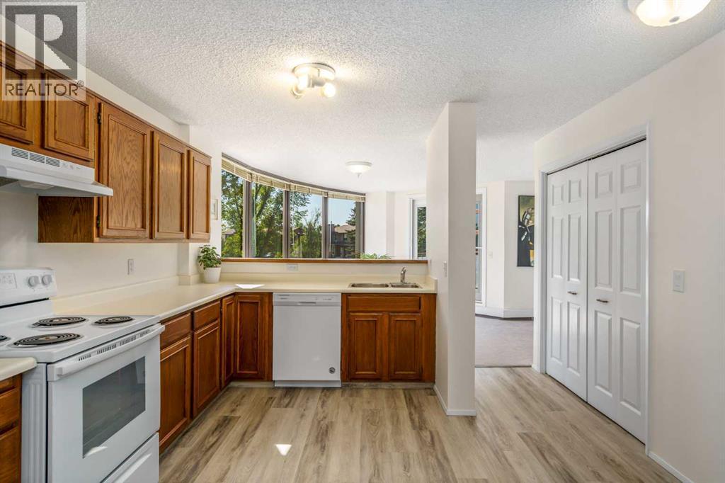 Welcome to this incredible over 1300 sq.ft. apartment in the sought-after Odyssey complex. This bright and spacious 2-bedroom, 2-bathroom home impresses with its functional layout, massive size, and twelve floor-to-ceiling windows that flood the space with natural light. The living and dining areas are open and inviting, and the large kitchen features a new stove and dishwasher and luxury vinyl plank flooring. Nearly every room has been freshly painted, making this home move-in ready.Both bedrooms are generously sized, with the primary suite offering a walk-in closet and private ensuite. There are also two convenient storage closets for all your essentials. Step outside to the large balcony and take in lovely views of the beautifully manicured flower gardens below. This property includes two parking stalls — one indoor and one outdoor — providing excellent flexibility.Odyssey Towers is one of Calgary’s premier 18+ adult living communities, offering a quiet and well-managed environment with extensive amenities. Residents enjoy a personalized building manager, guest suite in each building, sauna and steam room, resident’s club, indoor garden space, ample visitor parking, and lush green spaces. The location is unbeatable — just steps from bus stops with direct service to the West Side LRT, close to Ambrose University, Rundle College, Westside Recreation Centre, shopping, restaurants, parks, and pathways — and less than twenty minutes to downtown or a quick escape west to the mountains. This is maintenance-free living at its finest! (id:6769