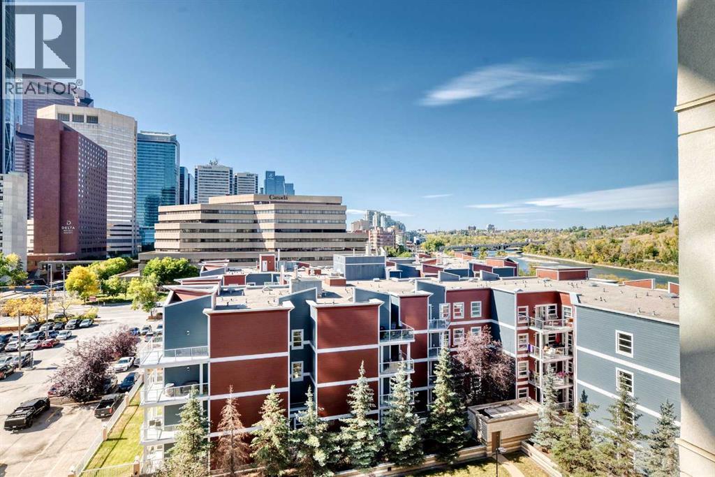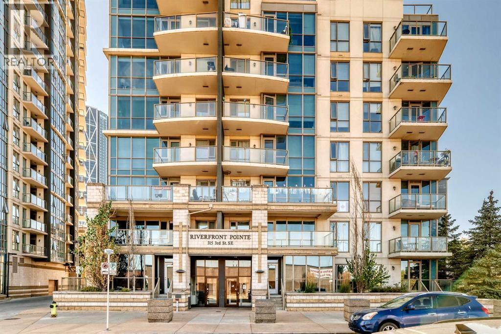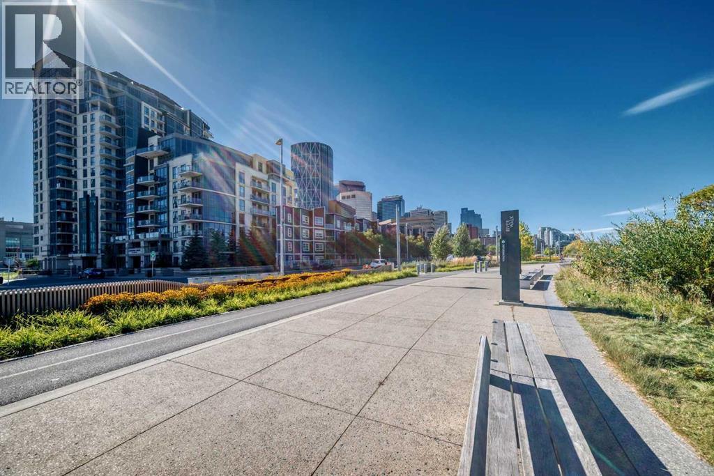 Welcome to Riverfront Pointe! This bright 7th floor west corner suite offers 2 bedrooms, 2 bathrooms + a flex/office area with unobstructed views of the Bow River and Downtown skyline. The open-concept layout features granite counters, designer tile backsplash, black appliances, eating bar, laminate flooring, and floor-to-ceiling windows that flood the home with natural light. The primary bedroom includes a 4-piece ensuite, while the second bedroom and full bath add flexibility for guests or a home office. In-suite laundry adds everyday conveniencBuilding amenities include a fitness centre, landscaped courtyard, concierge service, keyless entry, bike storage, and a titled underground parking stall located just steps from the elevator. Enjoy the ultimate urban lifestyle—walk to the Calgary Zoo in 10 minutes, City Hall LRT in 2 blocks. Enjoy being steps away from river pathways, parks, Chinatown, Eau Claire, and the best of downtown dining and entertainment.An excellent investment opportunity—previous tenant paid $2,500/month. Pet-friendly (with board approval). (id:6769