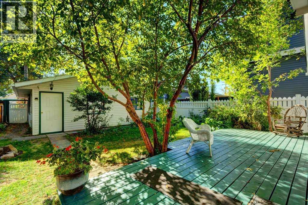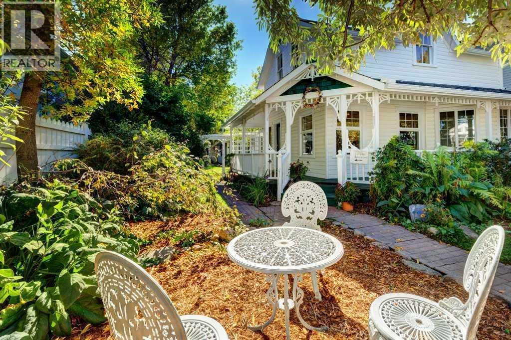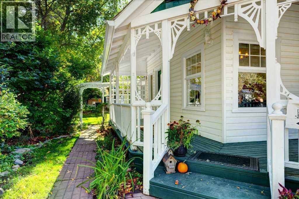 OPEN HOUSE SAT NOV 22nd 1-4PM and ART SALE SAT NOV 22nd 2-4PM. Embrace a lifestyle immersed in heritage! This most charming and authentic registered heritage home in High River can now be yours! Featuring a wraparound porch and detailed ornamentation true to the early 20th century, the home retains many original design elements that have stood the test of time—offering both historical charm and the warmth of a well-loved Alberta home.Inside, you’ll find three bedrooms and one and a half bathrooms, a graceful spindle staircase with ornamental wainscoting, and a stunning antique light fixture in the living room. The dining room, highlighted by a stone fireplace and vaulted ceiling, overlooks the beautiful south-facing backyard and deck. The antique buffet in the dining room can be included for additional cabinetry and other antiques could be negotiated also. The main floor includes a washer and dryer, quality kitchen appliances, and a butcher-block countertop. Natural light streams throughout the home from every direction, even through skylights in the stairwell and bathroom—so the stars can shine through at night.Situated on a double lot, the property features mature trees and native Southern Alberta shrubs and perennial flowers, some of which have thrived as long as the house itself. The rhubarb, for instance, has been growing in this very spot for over 100 years!The double garage, currently used as an art studio, is insulated with R22 in the walls and could easily be converted back into a garage, with the rough-in for the double door still in place. A charming playhouse and a vegetable garden plot add to the appeal, ready for your family’s enjoyment and green thumb. Upgrades include exterior paint on clapboard siding, railings and decks, new eavestroughs, new rough shingles on south roof (and only 10-12 years on rest of house), freshly painted inside, and upgrades in bathrooms. Furnace, hot water tank, and electric panel replaced in 2013. Possible grant s available for registered heritage properties also. See the historical bylaw on title in the supplements.The location is excellent—just a short walk to shopping, parks, restaurants, historic downtown, and more.Move in soon and embrace a creative lifestyle in a home and setting that truly transcend time! (id:6769