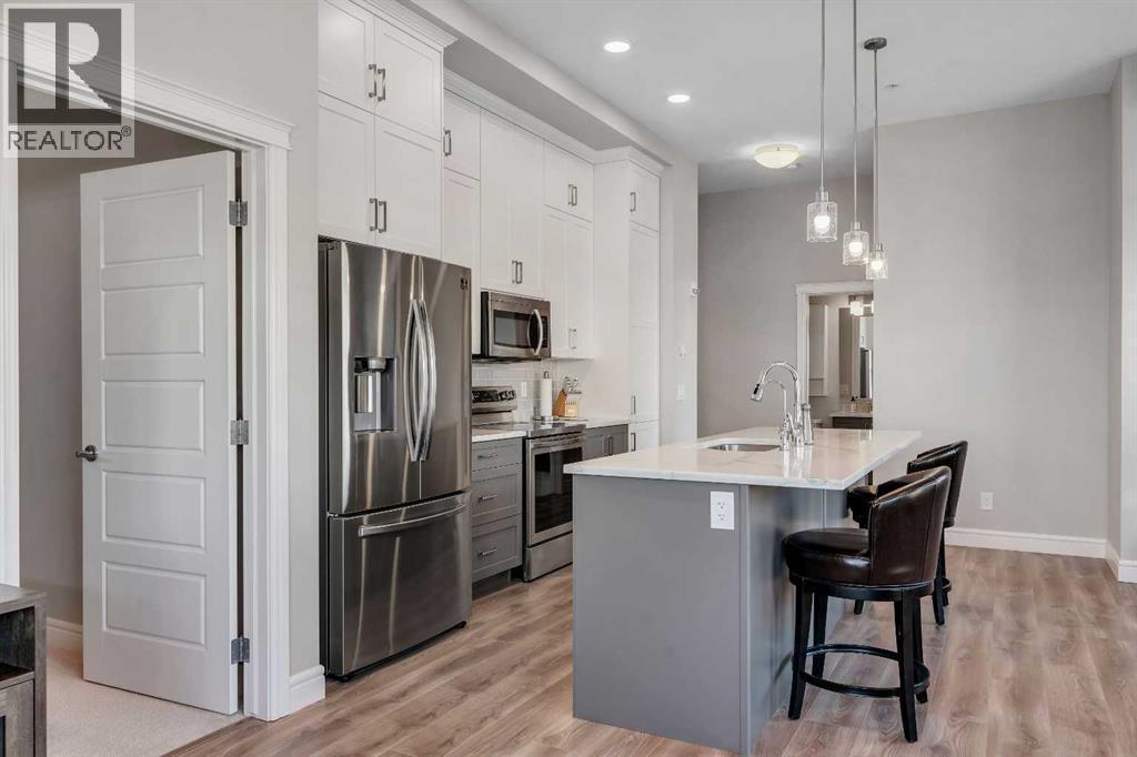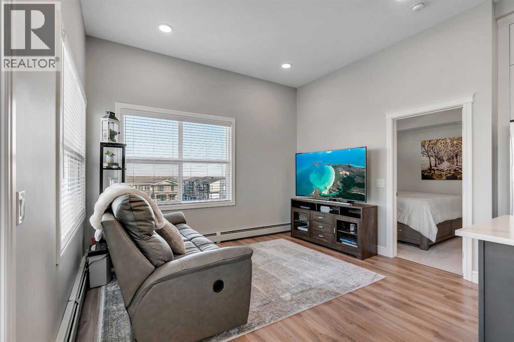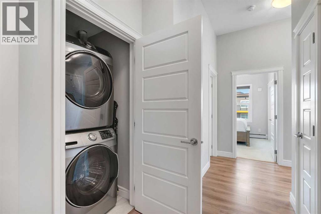 Move-in ready with immediate possession, if desired. Experience upscale living in this exceptional 2-bedroom, 2-bathroom top-floor corner unit in Seton. Featuring soaring 11-ft ceilings and an open layout, this condo offers an inviting atmosphere and expansive city and mountain views from a large balcony with a gas line for grilling. The modern kitchen is a showpiece with quartz countertops, ceiling-height cabinets & pantry offer ample storage, a large island perfect for entertaining, stainless steel upgraded appliances, and an in-sink water filtration system. The spacious primary bedroom offers a tranquil retreat with Hunter-Douglas blackout blinds, a spa-like ensuite with double vanities, walk-in shower, soaker tub, and a custom California walk-in closet. The second bedroom features its own custom built-ins by California closet, Hunter-Douglas blinds, and connects to a full bathroom. Extras include: entryway and hallway closets and a laundry closet with full-size washer & dryer, two parking stalls: one underground with storage, one surface stall steps from the stairs, central location near the South Health Campus, YMCA, high school, Superstore, Cineplex and more. This is luxury condo living at its finest—a rare find in Seton. Book your showing today! (id:6769