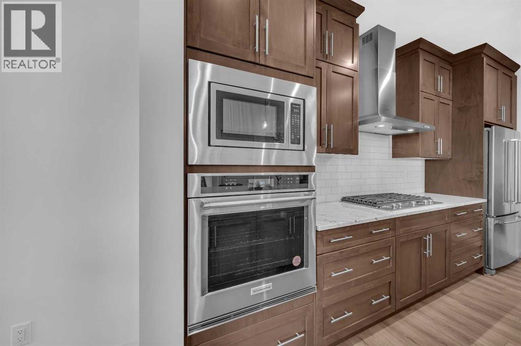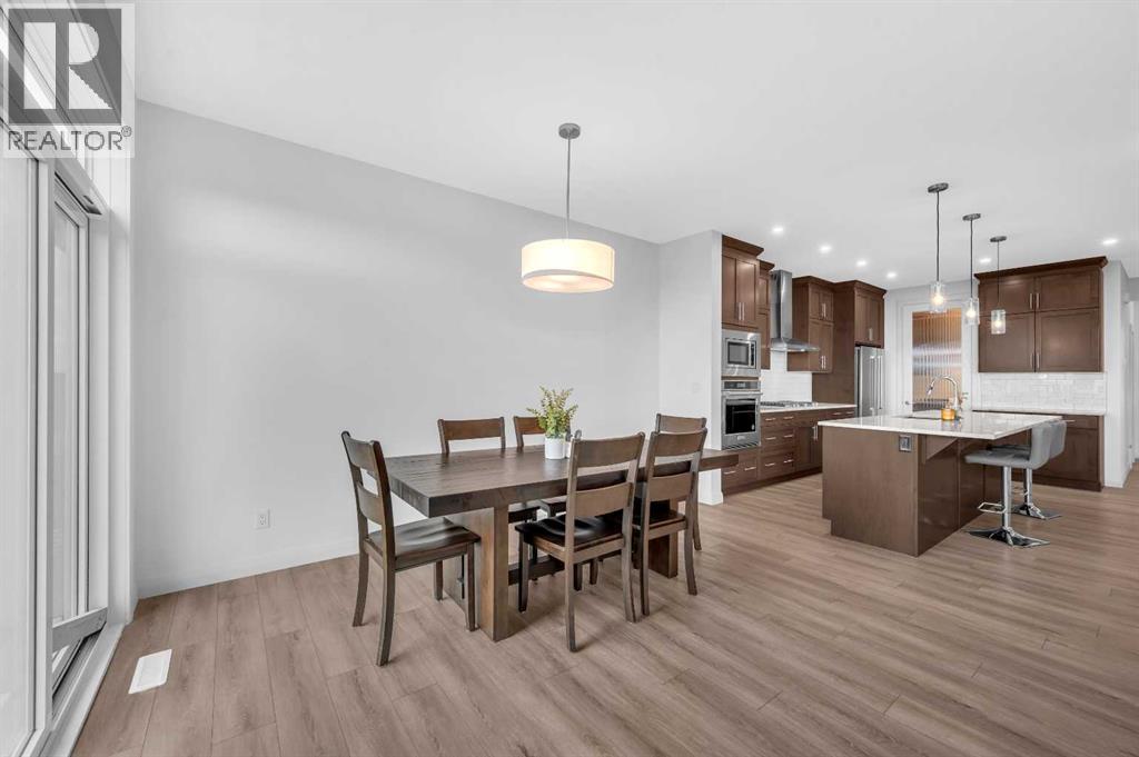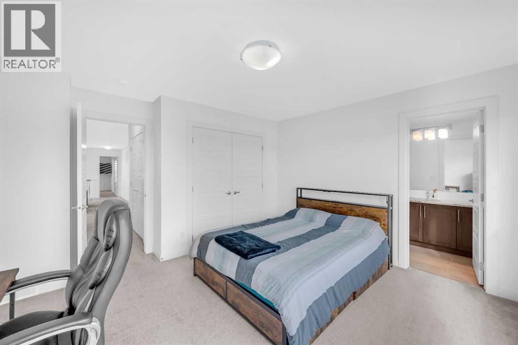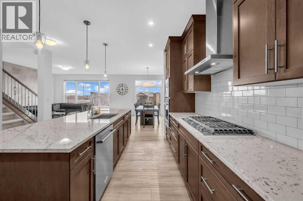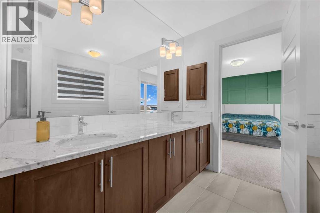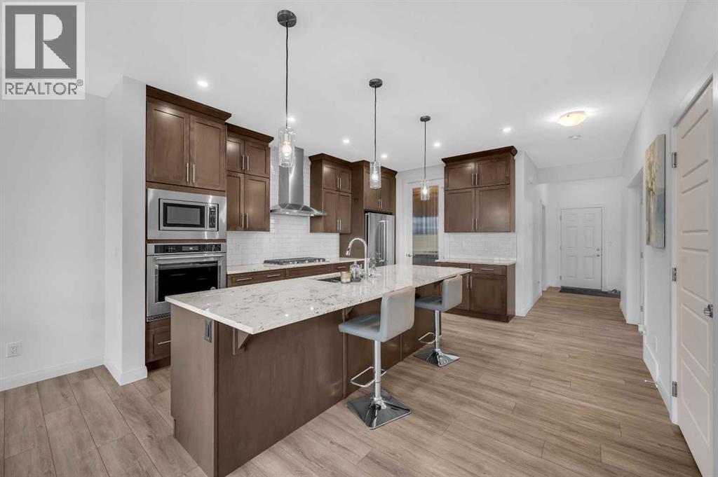 CORNER LOT NEXT TO KID'S PARK | NO NEIGHBOURS AT THE BACK | 2 BEDROOM LEGAL BASEMENT SUITE | MAIN LEVEL FLEX ROOM(Could be used as another bedroom) & FULL BATH | CHEF & SPICE KITCHEN | MARBLED QUARTZ COUNTERTOPS | FULL HEIGHT CABINETRY | ELECTRIC FIREPLACE | 4 UPPER LEVEL BEDROOMS (INCLUDING TWO MASTER BEDROOMS)| UPPER FAMILY ROOM | FULL LAUNDRY ROOM | SEPARATE SIDE ENTRY TO BASEMENT | . Discover this stunning two-storey CORNER HOUSE , offering over 3,500 SqFt of elegantly designed living space in the highly desirable REDSTONE community. Situated on a quiet street, —with NO NEIGHBOURS BEHIND and has adjacent park, providing an unmatched sense of privacy and tranquility.As you enter, you’re greeted by a grand open foyer that sets the tone for the home’s airy, open-concept layout. The main level is highlighted by 9-ft ceilings, a versatile den (perfect for a home office or easily converted into a 5th bedroom), Full Bath, and an expansive living room with Electric FIREPLACE.The chef’s kitchen on the Main Floor is truly the heart of the home, designed for both culinary passion and entertaining. Rich espresso cabinetry is paired with a sophisticated elegant backsplash and upgraded stainless steel appliances, built-in microwave and oven, and refrigerator. The oversized center island with seating is perfect for casual meals or gathering with friends and family. Adding a special touch is the SPICE KITCHEN, located just off the main kitchen, complete with a full-functioning Gas Range, Chimney Hood Fan, Sink and additional storage, providing a space to keep the aromas of your cooking contained while still offering all the amenities of a fully equipped kitchen.Head up the plush carpet stairs to unparalleled comfort awaits; a spacious family room, 4 bedrooms, 3 bathrooms and a walk-in laundry room, the spacious BONUS ROOM offers a flexible space for relaxation or play. The second floor includes TWO MASTER BEDROOMS, each with its OWN PRIVATE ENSUITE. The MAIN PRIMARY B EDROOM is a private retreat, with luxurious 5-piece ensuite, and a generous walk-in closet. The second primary bedroom also enjoys a private 4-piece ensuite for ultimate convenience and comfort. Additionally, two well-sized bedrooms and a shared 4-piece bathroom complete the upper floor. The upper walk-in laundry room holds a front loading washer/dryer, shelving for detergent.For added versatility, THE FULLY FINISHED LEGAL BASEMENT SUITE provides 2 bedrooms, 1 bathroom and Kitchen perfect for extended family or as a potential rental income opportunity. The Basement also includes its own laundry and a storage area.Located next the to kid's park, moments away from playgrounds, walking paths, shopping plazas, CrossIron Mall, and with convenient access to public transit, Metis Trail, and Stoney Trail, this home offers the perfect blend of privacy, convenience, and luxury.Don’t miss the opportunity to call this rare gem your own—schedule your private showing today! (id:6769