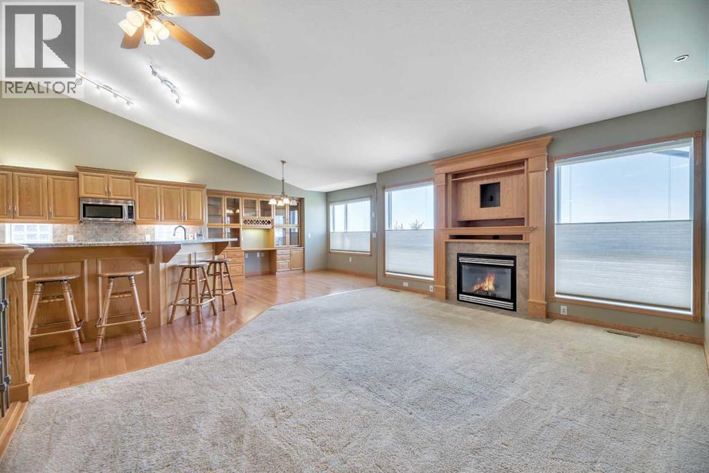 This beautifully designed walkout bungalow combines comfort, style, and an unbeatable setting. Enjoy peaceful mornings on the inviting front porch and take in the serene views of the green space behind, all with low-maintenance landscaping to keep life simple. Step inside to a spacious main floor with vaulted ceilings and gleaming hardwood floors. A French door leads to the den, perfect for a home office. The living room features a cozy gas fireplace, while the bright kitchen offers a breakfast bar, granite countertops, pantry, and flows seamlessly to the dining area with custom built-ins. The primary suite includes a walk-in closet and a spa-like ensuite with a corner soaker tub. Main floor laundry is a bonus, complete with sink and cabinets for added convenience. The fully developed walkout basement expands your living space with a wet bar, built-ins, large rec room, additional bedroom, and a 4-piece bath—ideal for entertaining or family gatherings. Stay cool year-round with air conditioning, and enjoy the practicality of a double attached garage. This home offers the perfect blend of elegance and easy living in a prime location. (id:6769