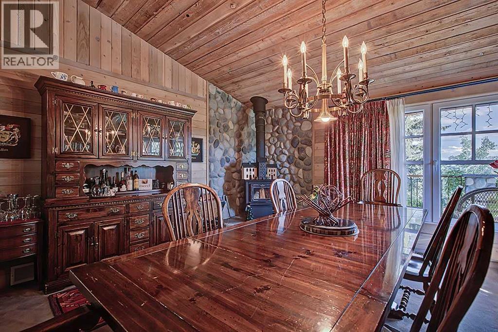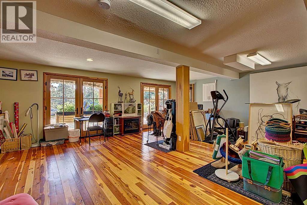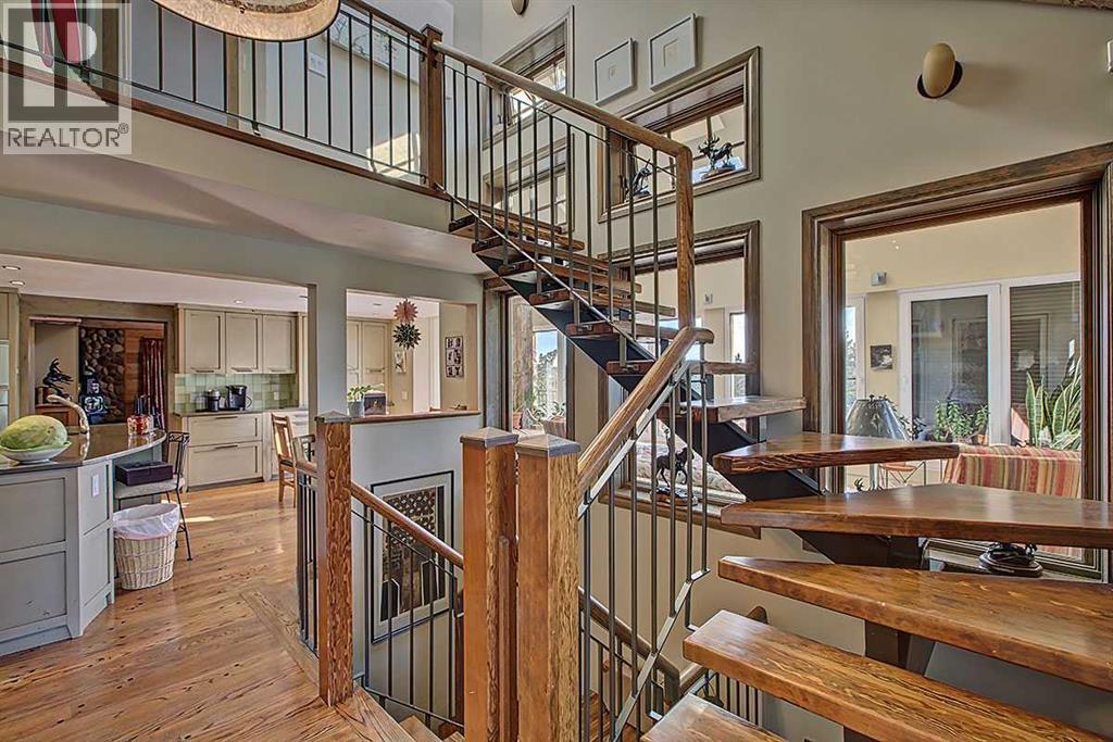 Welcome to Rancho Relaxo less than 20 mins from the edge of Calgary, this one-of-a-kind property is nestled atop a hill withbreathtaking 360 degrees views of the rolling foothills of southern Alberta. This 23-acre paradise could be the perfect haven for any horse lovers, boasting miles of fencing allowing your livestock free to roam the property. With over 5,000 square feet of developed living space, this homeoffers plenty of room for you to live and grow and to come home from a busy day to the peace and comfort of a one-of-a-kind property. Inside,you’ll find three spacious bedrooms, with the option to convert the entire lower level into a place to hangout, games room or an additional fourthbedroom. The home features five well-appointed bathrooms, ensuring convenience for family and guests. Once you have stepped foot into theproperty take note of the high ceilings and the long hallway which leads you towards the massive and inviting family room, with its large windowsto make it light and bright, perfect to showcase the original wide plank hardwood floors, and cozy up to the wood-burning stove, it’s a perfectgathering spot during those Christmas holidays and could you just imagine in the corner a 15-foot-tall Christmas tree. The charming kitchenoffers ample storage and custom cabinetry, opening to a bright sunroom perfect for morning coffee or evening glasses of wine. Just off thekitchen is a quaint living room, complete with a gas fireplace, makes this space inviting, comfortable and forces you to relax and unwind at theend of each day. Adjacent to the kitchen across the hallway is the large dining room which is built for hosting and entertaining and features anadditional wood-burning stove for warmth and ambiance. Step outside in any direction onto one of the several decks, each positioned to capturestunning views of the surrounding property. Down the wooden walkway it leads you to the oversized three-car garage which includes acraftsman’s workshop, a dream space f or any aspiring finishing carpenter. In addition to the main residence, and the HIDDEN JEM of this theproperty, features a hidden dream cabin, offering the ultimate escape for relaxation and perfect place to unplug. Two additional outbuildings anda large shed provide ample storage and utility for caring for horses or other creative adventures. Rancho Relaxo is a meticulously maintainedsanctuary ready for you to call home. Whether you’re seeking tranquility or an active rural lifestyle, this extraordinary property delivers the bestof both worlds. (id:6769