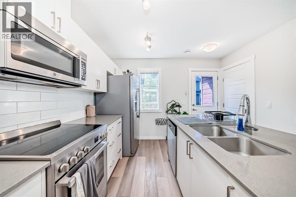 Welcome to this beautifully designed townhome in the desirable community of Cranston SE Calgary – offering modern finishes, thoughtful design, and incredible outdoor living spaces.The main floor features an inviting open-concept layout with a bright living room, spacious dining area, and a well-appointed kitchen with ample cabinetry and counter space. A convenient half bathroom completes the main level.Upstairs, you’ll find a large primary suite with its own private ensuite bathroom. The second bedroom is generously sized and served by a separate full bathroom, making it perfect for family, guests, or a home office.On the third level, discover a large flex space that can be used as a family room, entertainment area, or home office. From here, step out onto the impressive rooftop balcony – the ideal spot to relax, entertain, and enjoy Calgary’s summer evenings.Additional highlights include in-unit laundry, a private backyard for BBQs or gardening, and a dedicated parking stall conveniently located near the unit.All of this in the sought-after community of Cranston, with easy access to schools, parks, shopping, pathways, and major roadways like Deerfoot and Stoney Trail.This home combines style, comfort, and functionality – perfect for first-time buyers, downsizers, or investors. Book your showing today! (id:6769