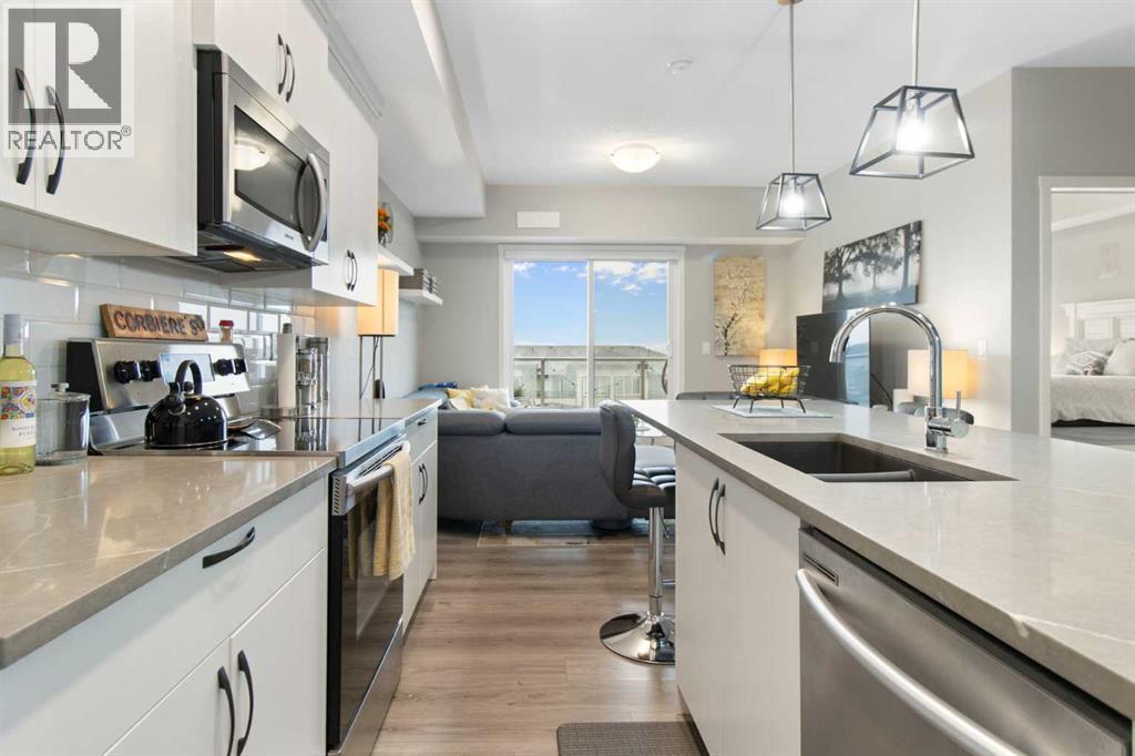 Experience the best of Seton living in this stylish 2-bedroom, 1-bathroom home designed for comfort and convenience. A contemporary open-concept layout welcomes you inside, where natural light pours through oversized windows and highlights the clean lines of plank-style flooring. The kitchen anchors the space with quartz counters, an oversized island that doubles as a gathering hub, stainless steel appliances, full-height cabinetry and a timeless subway-tile backsplash. Soft-close drawers, abundant storage and a deep under-mount sink ensure both elegance and everyday function. The living and dining areas connect seamlessly to a private balcony with gas line, an ideal extension for morning coffee, fresh air breaks or evening barbecues. Two well-sized bedrooms offer versatility, whether as restful retreats, a home office or guest accommodation. The bathroom is thoughtfully finished with modern fixtures, quartz vanity and a subway-tile tub surround that blends durability with spa-like style. In-suite laundry with a full stacking washer and dryer adds practical ease, while a titled underground parking stall and storage locker provide security and seasonal space. Residents benefit from energy-conscious design features such as low-emissivity windows and LED lighting, paired with controlled-access entry and professionally maintained common areas. A/C is roughed-in, giving you the ability to add cooling comfort in the future. Location is a highlight with Seton Market’s shops and dining options within walking distance, the South Health Campus close at hand and the world-class Brookfield YMCA nearby offering fitness, swimming and community programs. Outdoor enthusiasts can enjoy pathways, parks and green spaces woven throughout the community, while quick access to transit routes streamlines commutes to downtown and beyond. This home combines urban convenience with modern finishes, offering a balanced lifestyle in one of Calgary’s most dynamic neighbourhoods. (id:6769
